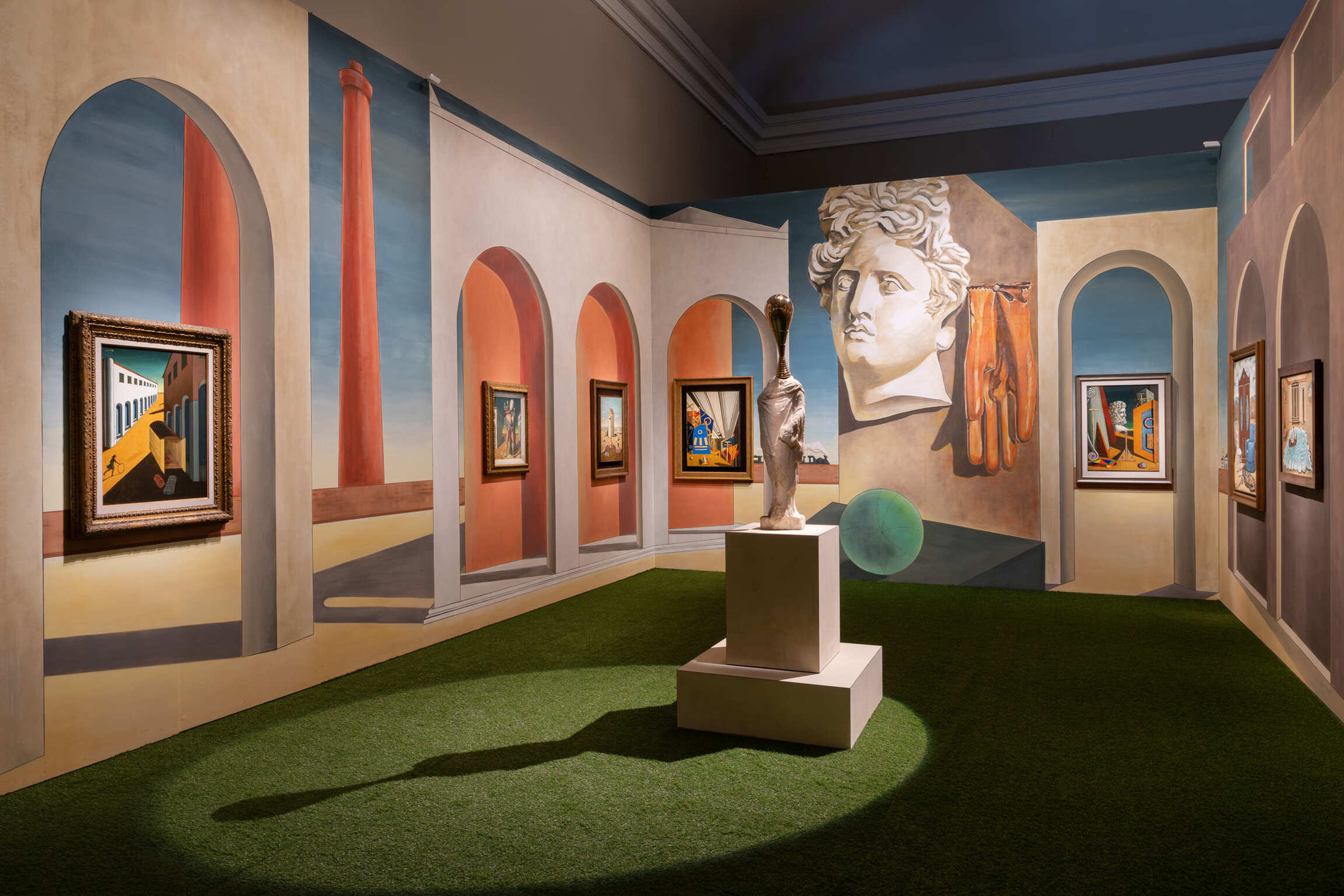 From the protagonists of the historic group founded in Ferrara in 1917—Giorgio de Chirico, Alberto Savinio, Carlo Carrà, Filippo de Pisis and Giorgio Morandi—to the artists in Europe and America who absorbed the movement’s atmospheres and formal solutions, and on to contemporary echoes in the works of various authors inspired by Metaphysical poetics across the fields of art, photography, architecture, cinema, theatre, design, fashion, literature, graphic novels and music. From Mario Sironi to Felice Casorati, from René Magritte to Max Ernst, from Salvador Dalí to Andy Warhol. And further still, from Mimmo Paladino to Giulio Paolini, from Jannis Kounellis to Francesco Vezzoli, from Aldo Rossi to Gio Ponti, from Paolo Portoghesi to Frank Gehry, from Mimmo Jodice to Gabriele Basilico, from Giorgio Armani to Fendi, from Paolo Sorrentino to Tim Burton, through to David Bowie and many others besides.