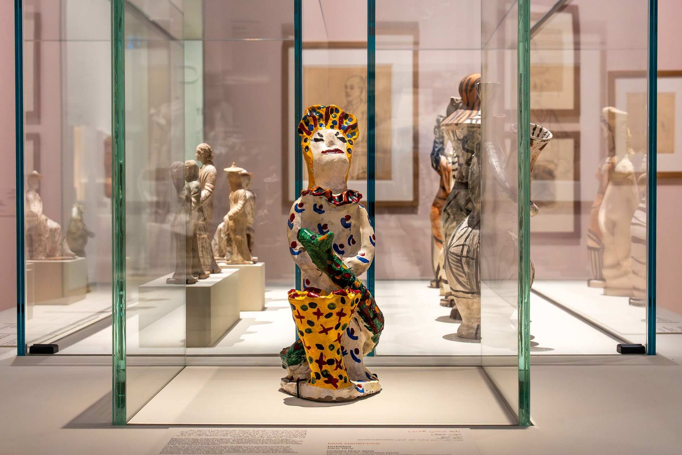 Key works by six Arab artists are also featured throughout the exhibition, highlighting the Picasso’s impact on modern art in the Arab world and its resonance beyond Europe. Among them are paintings by Iraqi artists Dia al-Azzawi, Jewad Selim, and Shakir Hassan Al Said, in addition to Egyptian artist Ramses Younan. A painted ceramic work by the Algerian painter and ceramicist Baya Mahieddine will also be showcased. Mahieddine’s 1947 exhibition at Galerie Maeght in Paris drew the attention of Surrealists and of Picasso himself, illustrating a reciprocal artistic exchange.