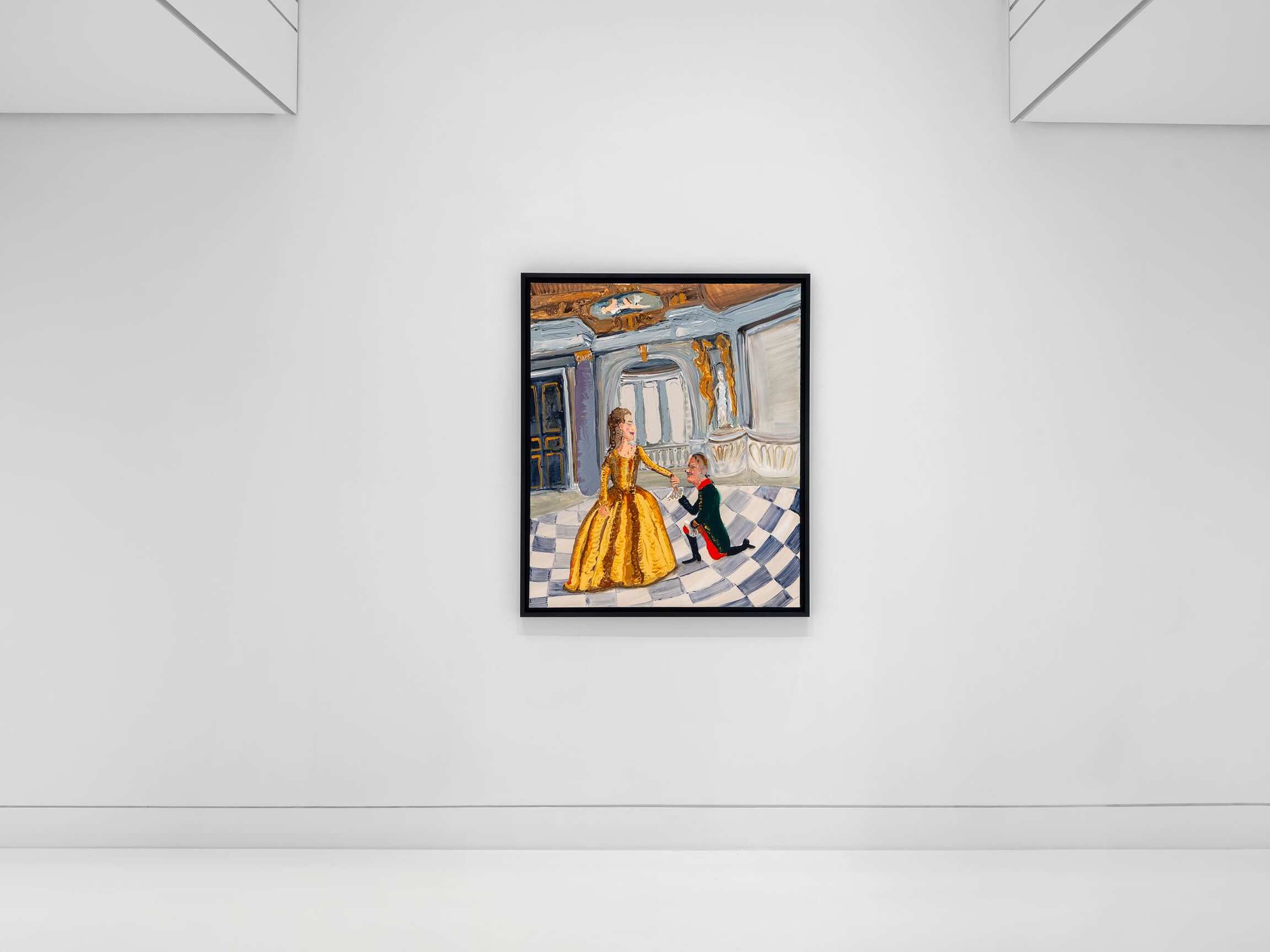 The artist has a longstanding fascination with the eighteenth century—the age of absolutism holds both aesthetic and thematic allure for Figgis, who notes: “I like the costumes, the history and the paintings that were made in this period because they are theatrical. I use painting as a way of exploring different periods of history.”