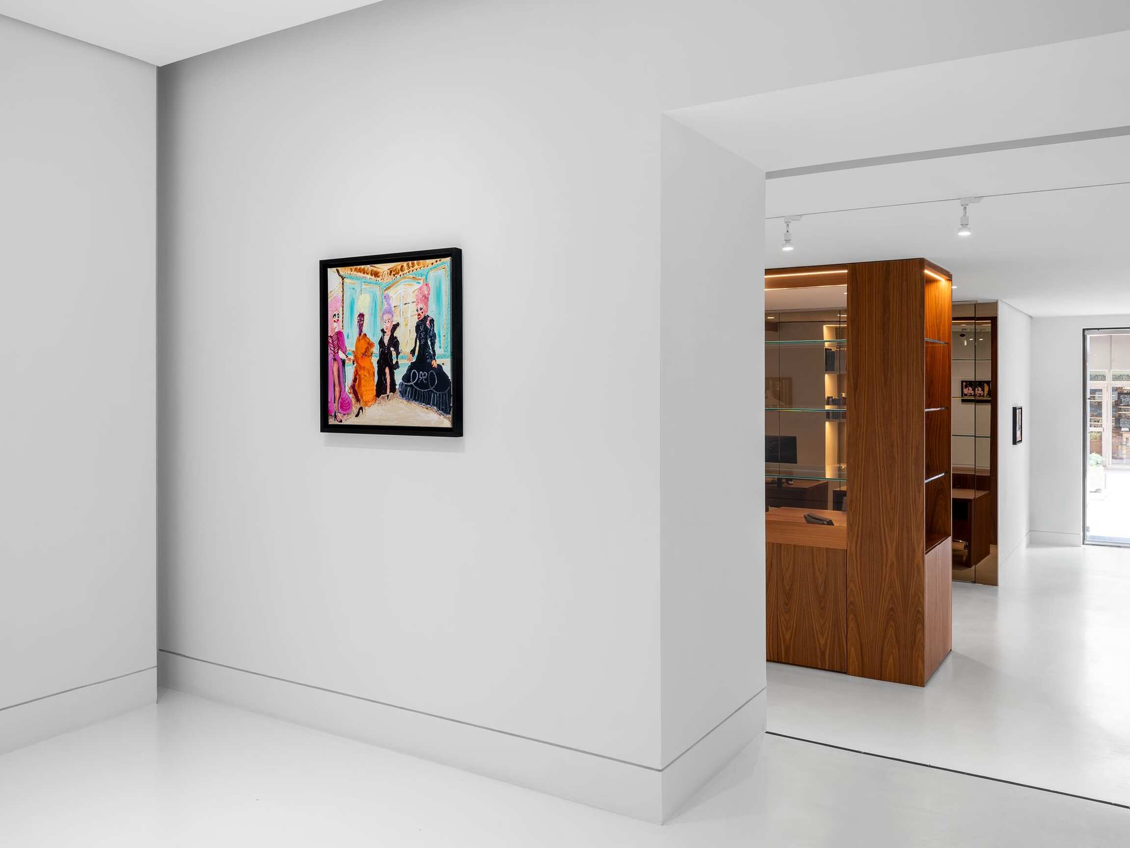 In Figgis’ world, contradictions abound. Beneath the glamorous lies the ghastly, beneath self-serious artifice, irony. Her paintings are intentionally and delightfully off-kilter, populated by shifting figures, one moment hauntingly beautiful, the next terrifying. And just when we begin to lose our footing, the artist draws us back in, guiding us through her strange and splendid realm. The new body of work presented in 'Drama Club' continues Figgis’ examination of theatrical excess through striking, memorable compositions.