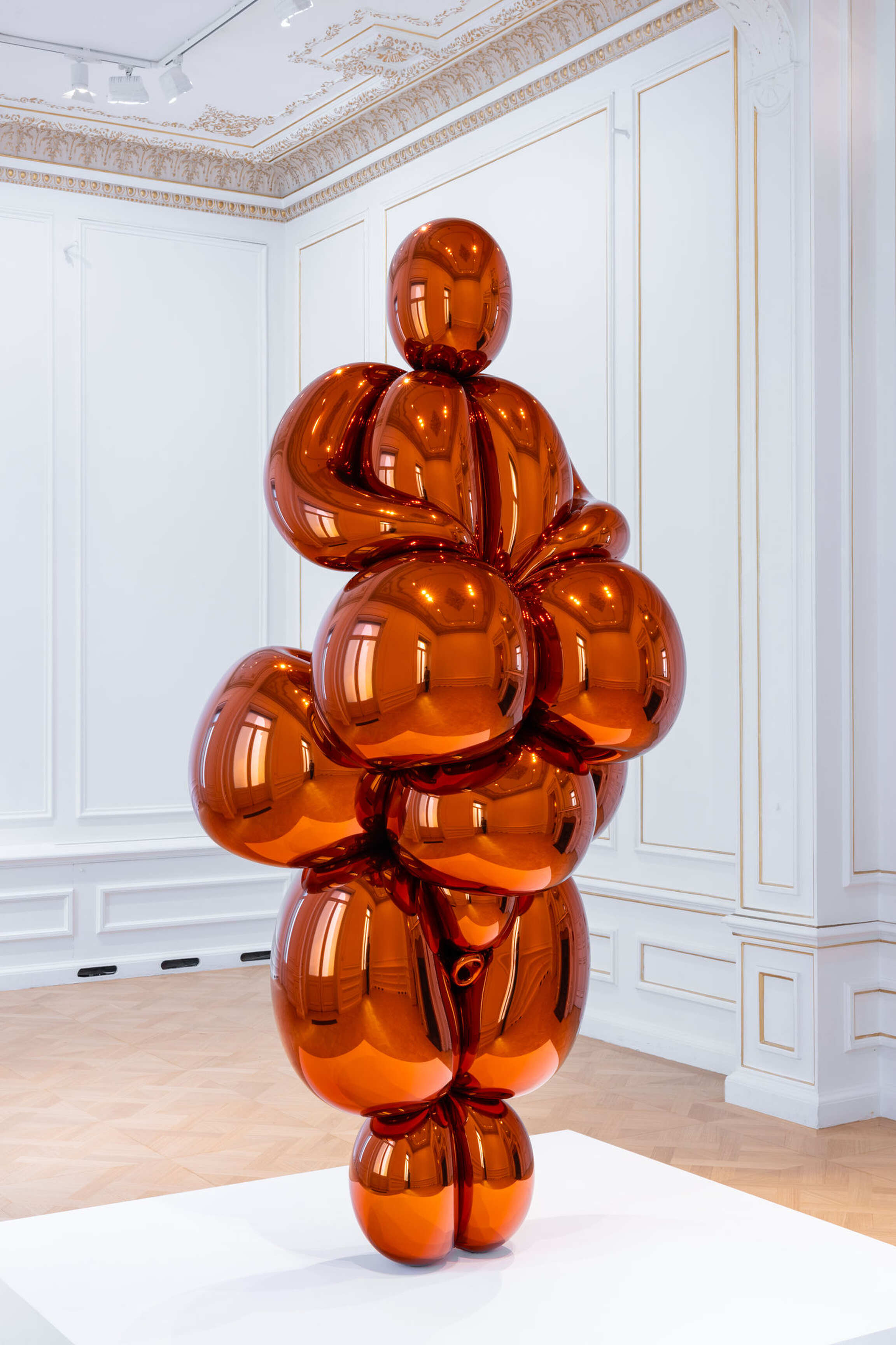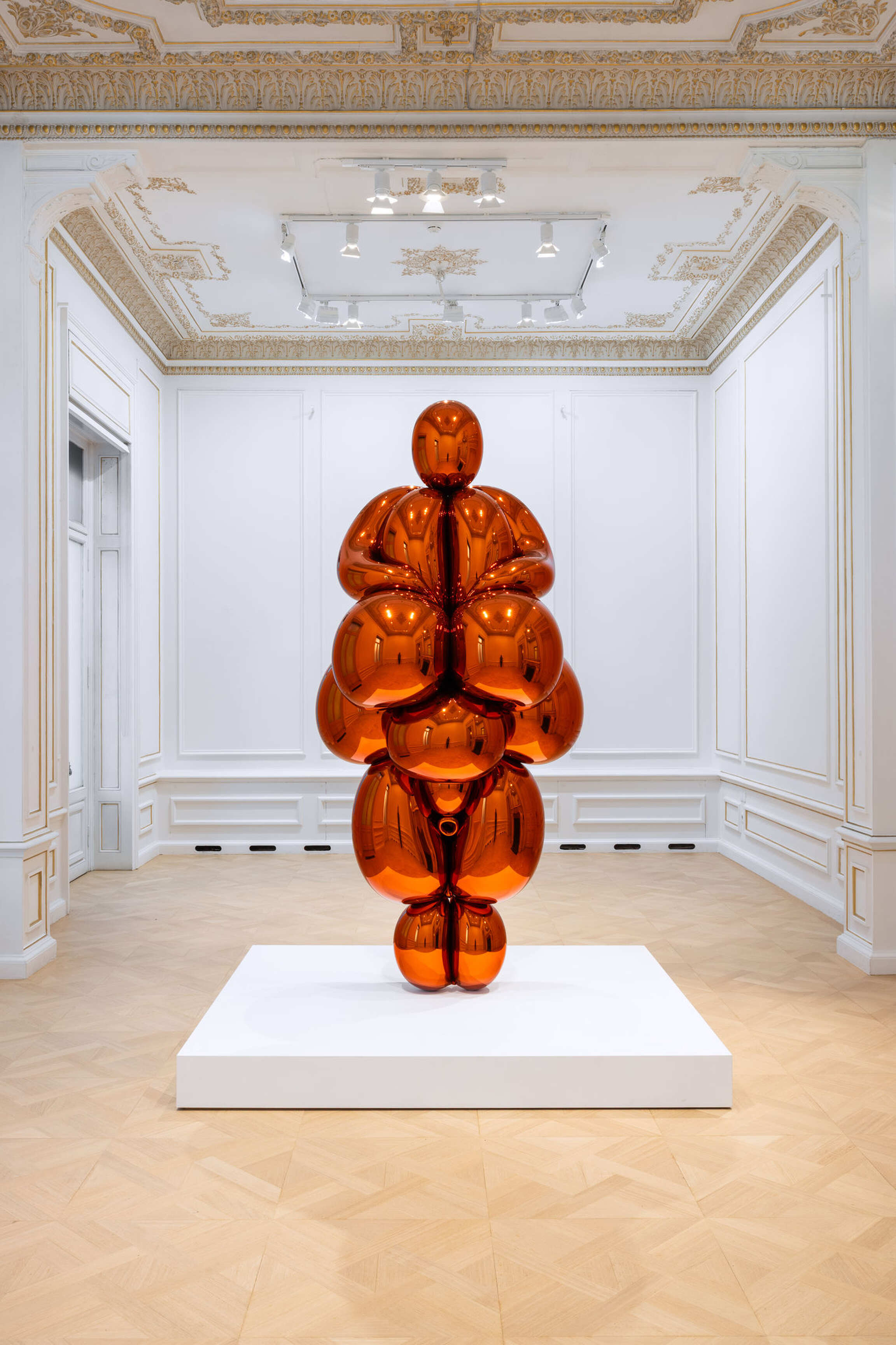 Koons’ Balloon 'Venus' Lespugue (Orange) draws inspiration from the prehistoric Venus of Lespugue, a mammoth tusk ivory figurine that dates back approximately 28,000 years. Jeff Koons has been influenced by this figure since the late 1970s. In his series Antiquity, which he started in 2008, the artist’s interpretation of the Venus of Lespugue engages a variety of art historical reference points, from Botticelli and Titian to Duchamp and Brancusi, where the notions of beauty and form play a central role. Through an intensive, yearslong process, Koons has transposed the fetishized original, renowned for its exaggerated curves, into a towering balloon sculpture of Giacometti-esque proportions.