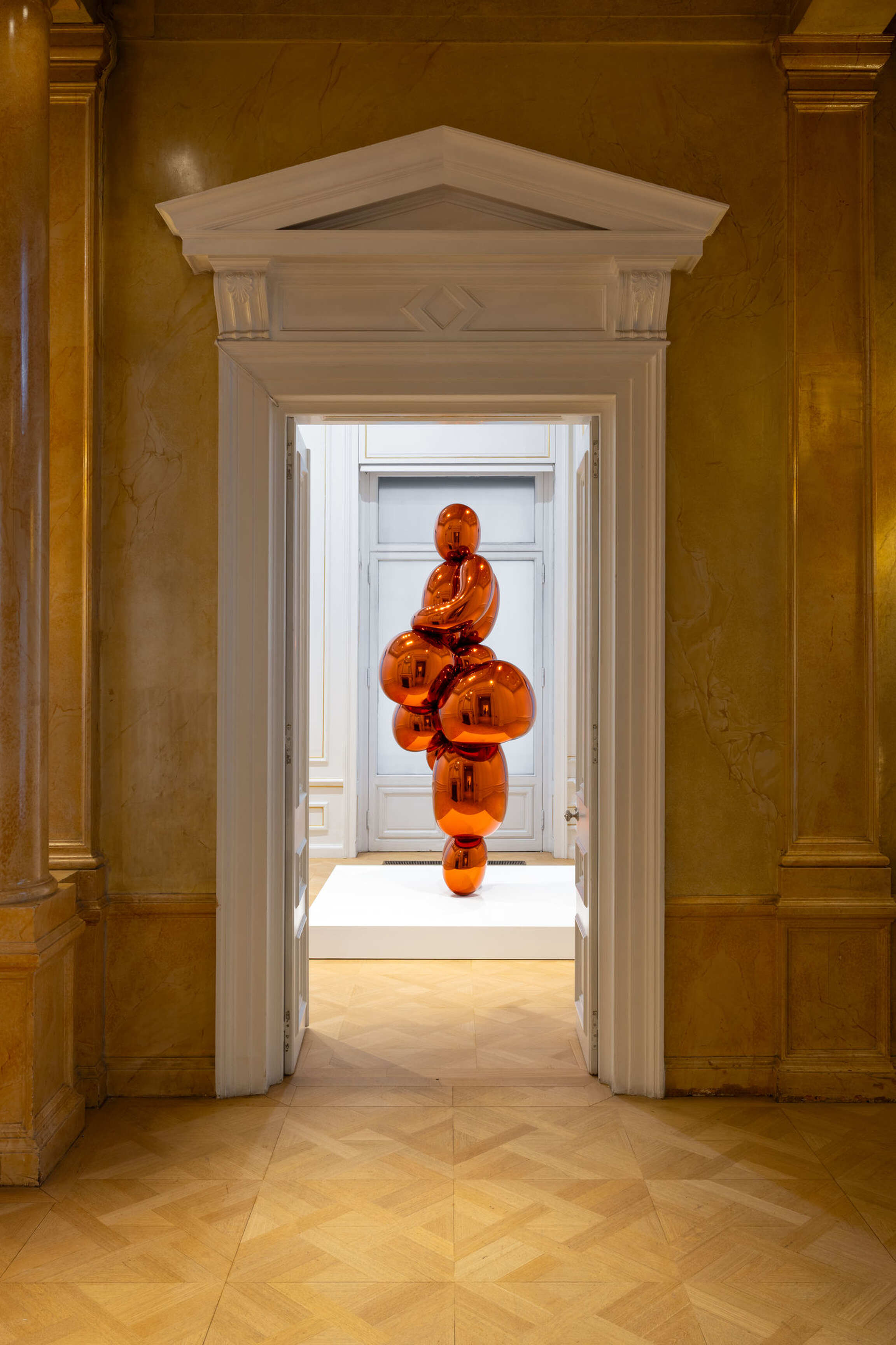 Next to Koons’ work, the museum will present a series of ten Venus replica figurines from the Upper Paleolithic era, each on loan from museums that house the immovable originals. Among these will be the copy of the Venus of Lespugue from the Muséum national d’Histoire naturelle in Paris, which served as the direct source of inspiration for Koons’ mirror-polished stainless-steel sculpture. The Venus figurines represent one of humanity’s earliest aesthetic codes – a profound abstraction of fertility, survival, and continuity – made into something compact and portable. Koons’ version revisits this prehistoric visual language through a radically different medium and context: the industrial, hyper-material world of the 21st century.