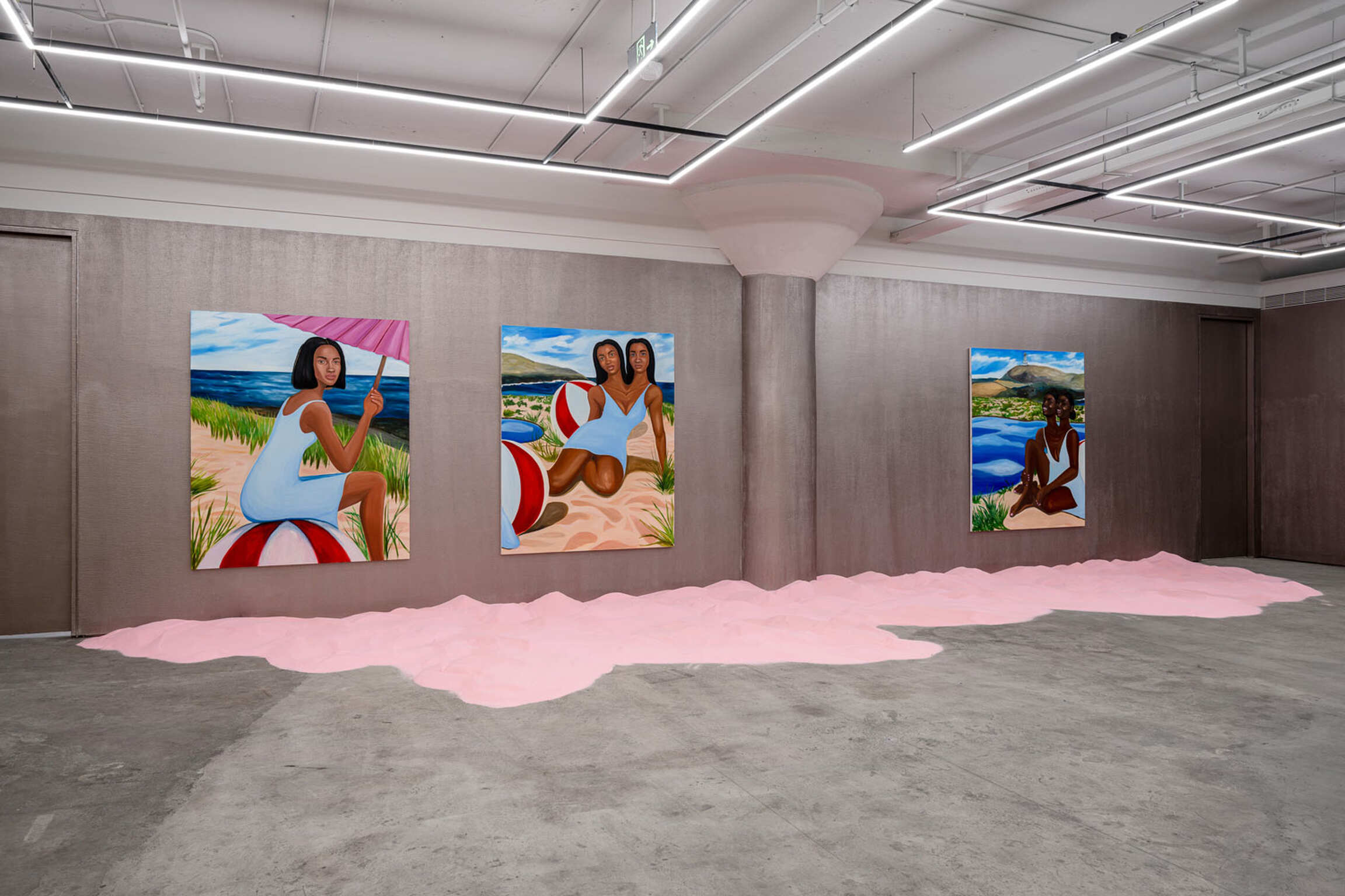The title of the exhibition, “Behind This Wall”, echoes the contributions of African American painter Kerry James Marshall (b.1955, Birmingham, Alabama). Marshall assumes a thoughtful and elaborate approach to challenging the marginalization of Black figures in the Western canon. In a similar vein, with their own distinct modes of expression, Adams, Boafo, and Spann disabuse the audience of the white delusion that has been traditionally perpetuated by the walls of museums, extending the movement for justice and liberation to the art historical realm. “Behind This Wall” aligns with a deliberate plan to integrate identity politics into the art institution, which reflects the unique social agenda of the Longlati Foundation among its counterparts in the city. Showcasing the practices of these preeminent painters who reclaim minority subject positions, the exhibition registers that Blackness is never simple or absolute but rather multifaceted and dynamic.