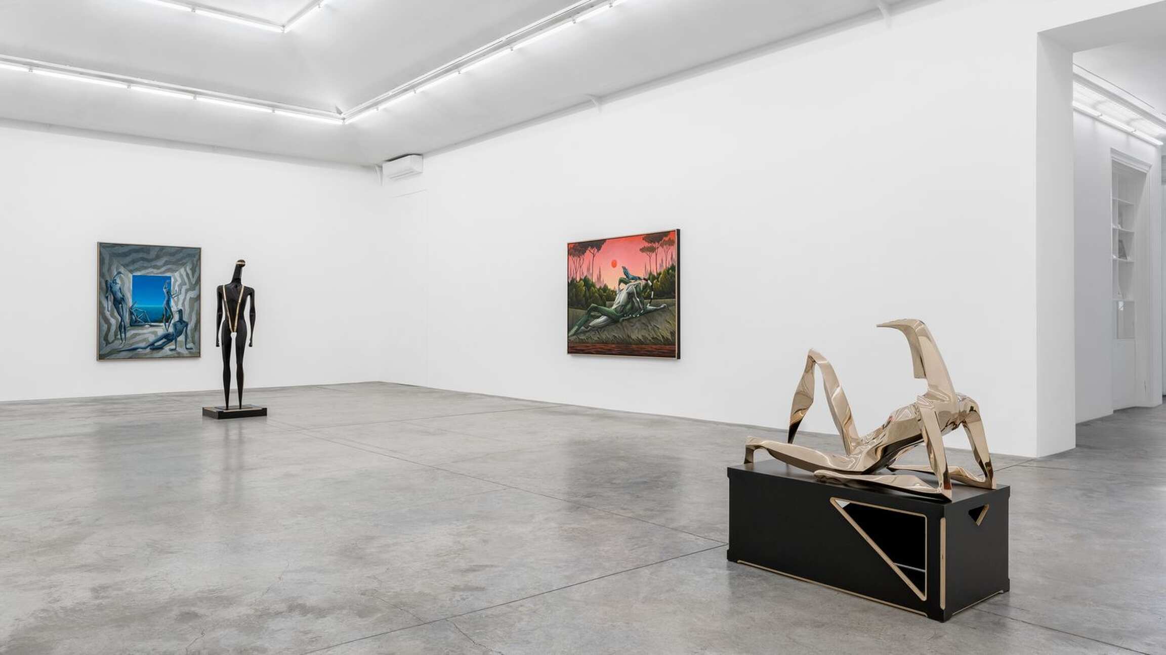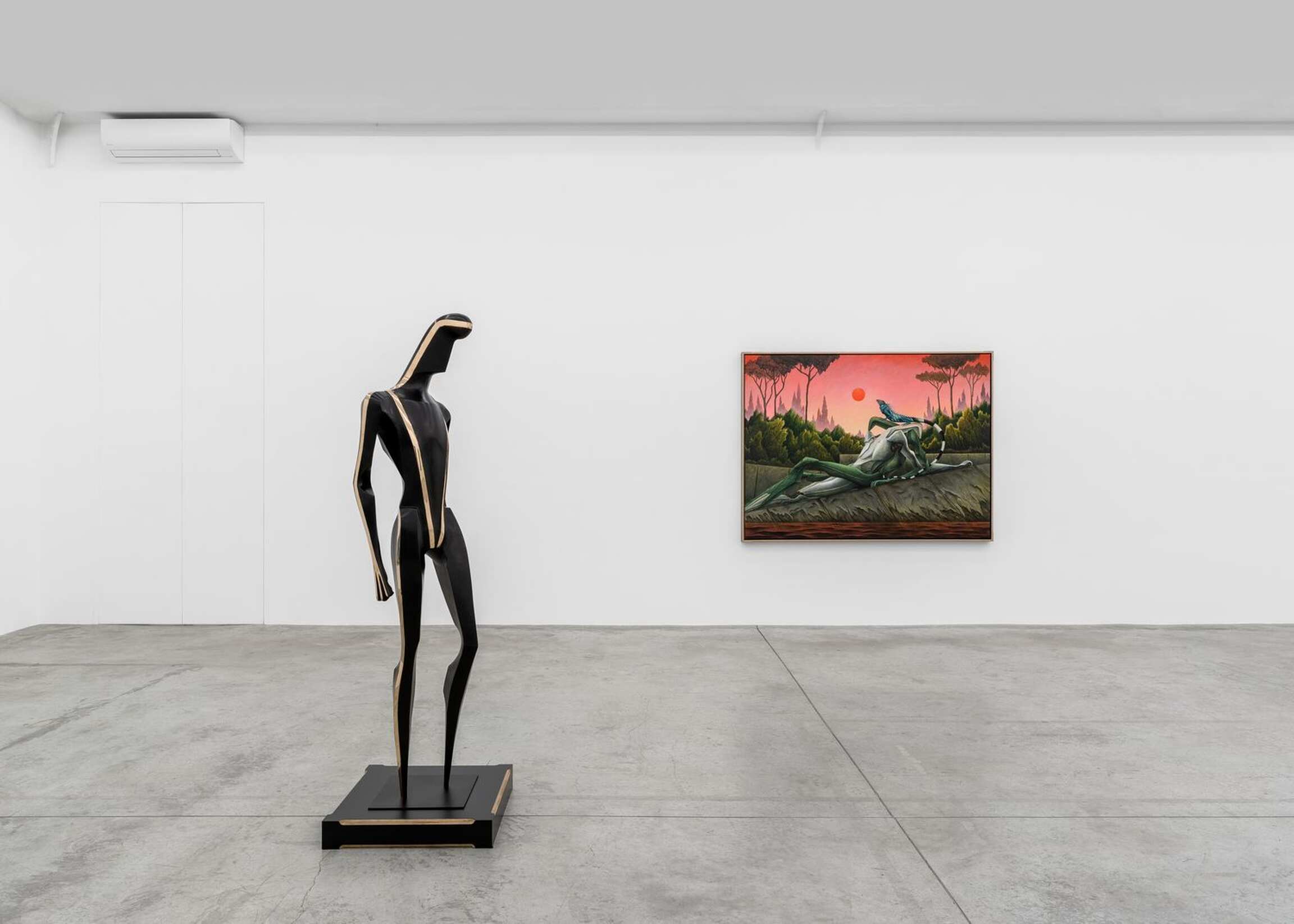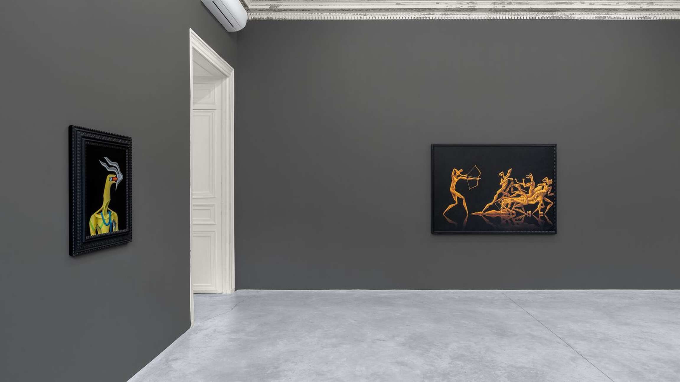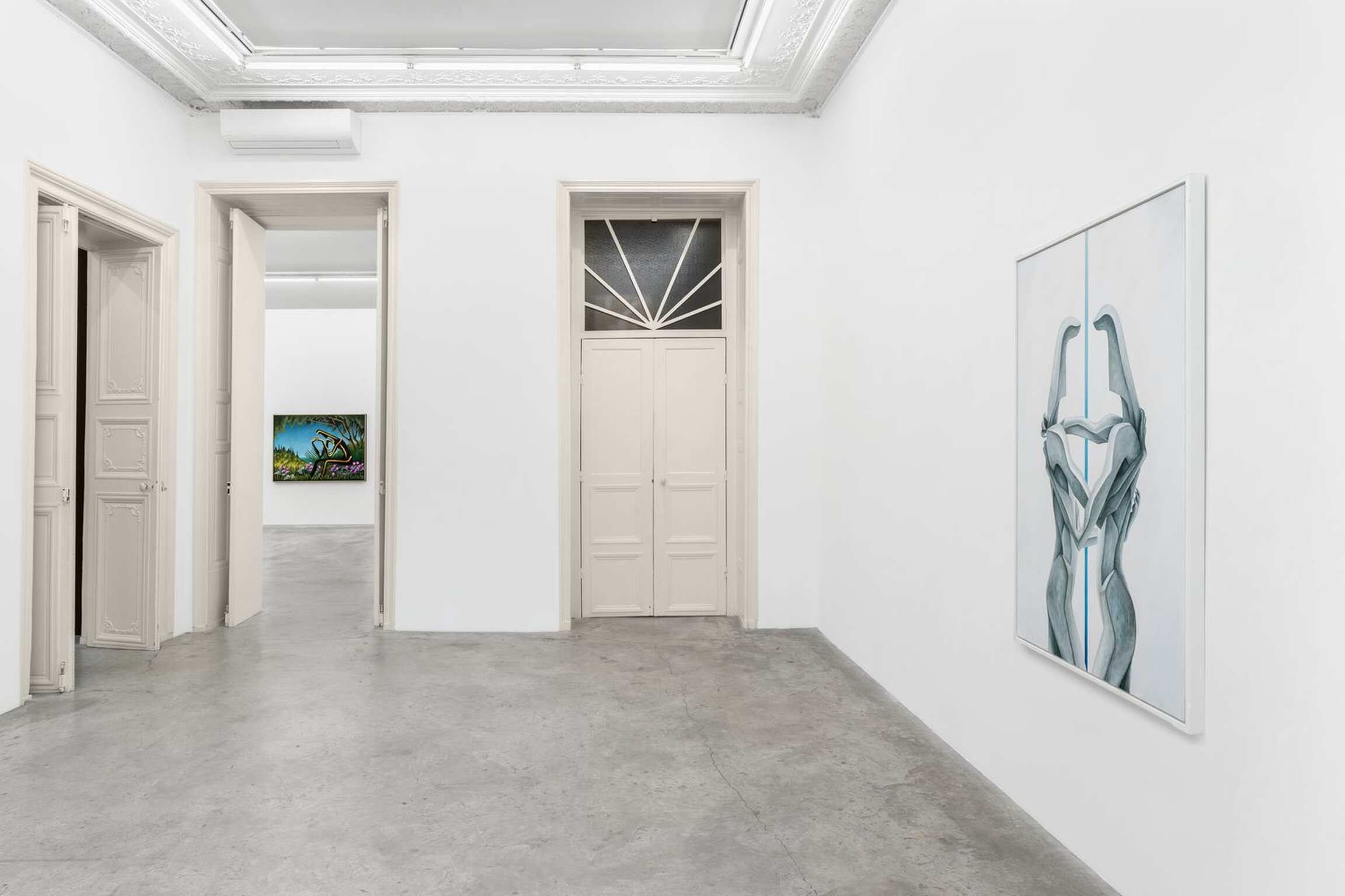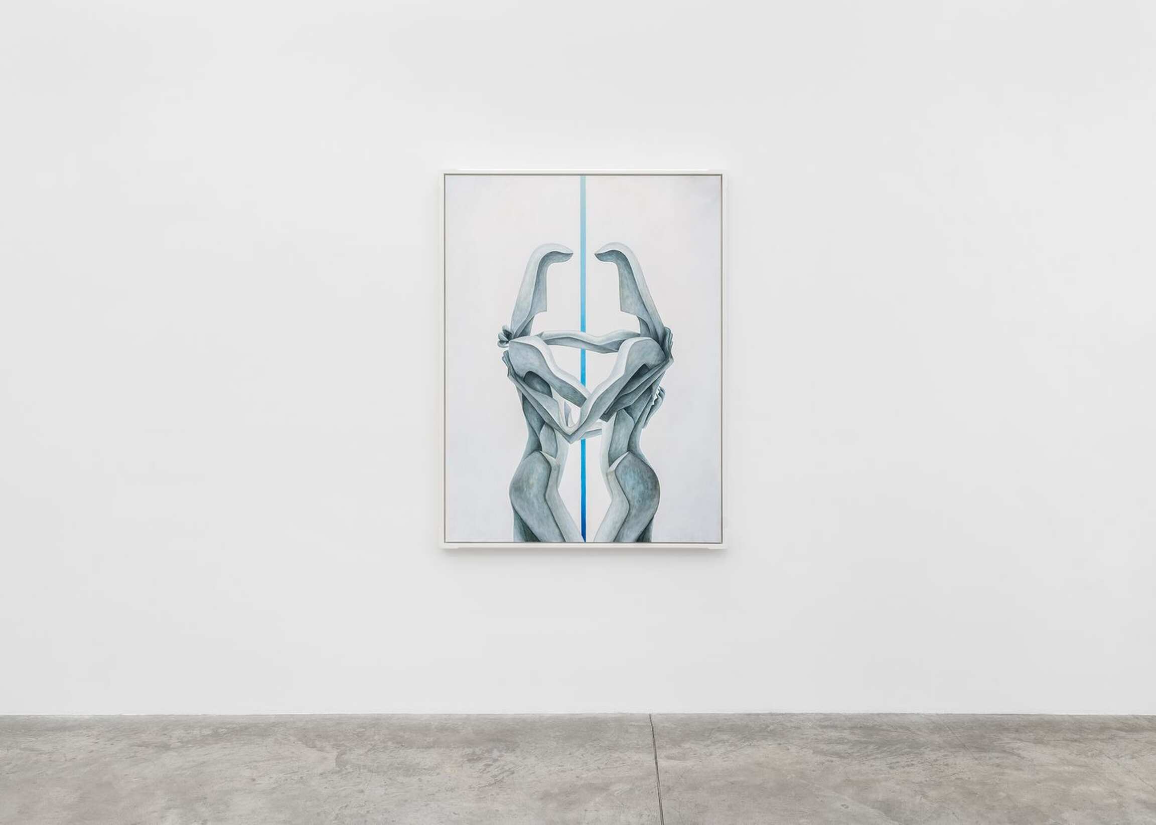 ‘CALYPSO’ is the title that Alejandro Cardenas gives to his third solo exhibition with Almine Rech, and second one in Paris, following ‘PARADOXA.’ This time, Cardenas responds with paintings and sculptures to Homer’s Odyssey, and more specifically to the years Odysseus spent with the nymph Calypso in Ogygia. Before turning to the reach of Cardenas’ interpretation of that part of the poem, it should be noted that he has divided the exhibition into three parts. The main space focuses on Odysseus’s years in Ogygia. One room attached to it deals with the suitors of Penelope, while another offers meditations on the questions that the exhibition raises. Cardenas’ latest body of works constitutes a rather unusual moment in contemporary painting and sculpture insofar as it presents the reflections of an artist who quite literally engaged with a classical textual source, in an age where the tendency bends towards oblique presentations of traces of ideas, as Jean-Luc Nancy has shown in Les Muses. One can find in the very verses of Homer’s Odyssey the matrix of the paintings and sculptures from ‘CALYPSO.’ The works are nonetheless not mere visual ekphrases confined to the Odyssey. Cardenas weaves together webs of meaning across time. He intertwines Homer’s poem with Ancient Greek sculptures, as well as references from different periods and regions, whose significations thereby find themselves deepened or altered.