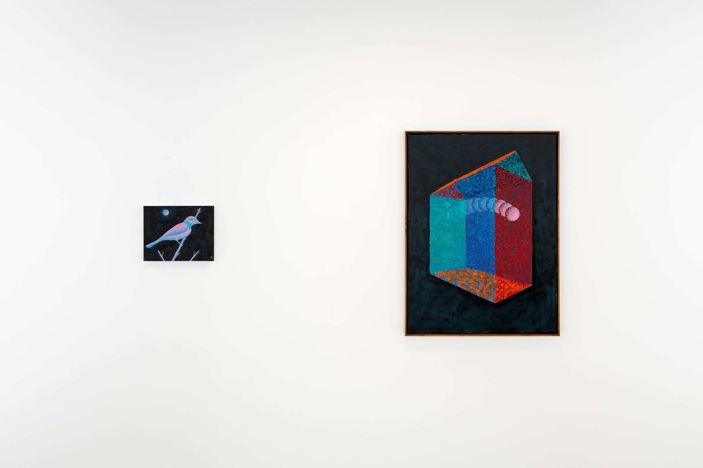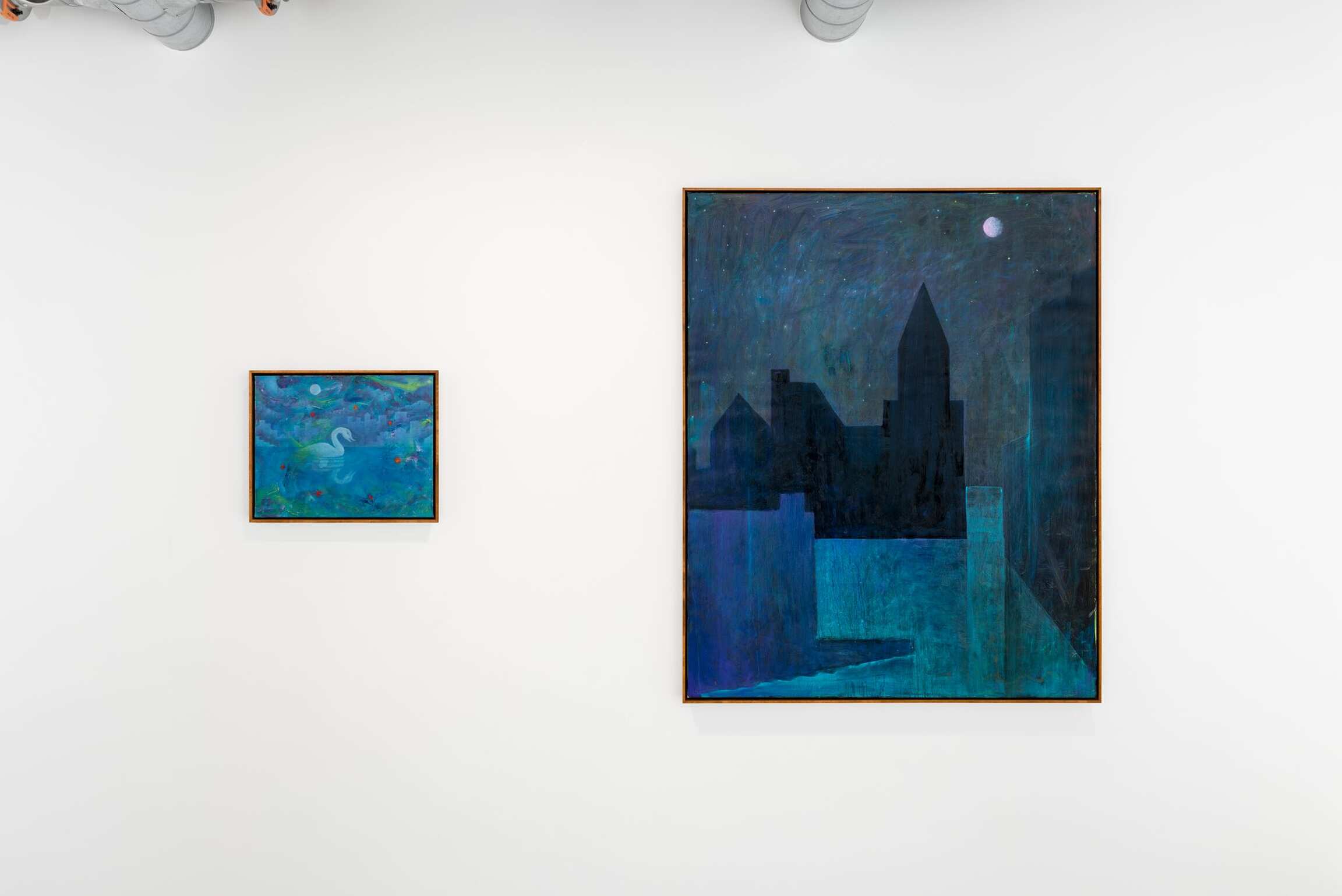 Dylan Kraus is an American artist who creates paintings which utilize rich color and symbolism to channel his curiosity about the universe. In Kraus' art, we encounter motifs in the form of sequences and symbols, archetypes and ancient systems of representation that have endured for centuries. His references range from the Der Blaue Reiter movement to fables and the occult. Flooded cities, crows, and fractured clocks reveal themselves like snapshots from a dream that Kraus has had over and over again. His perspective encourages viewers to contemplate their place within a society that feels at once idyllic and eerily post-human. He applies multiple layers of thick oil paint to his canvases which can be peeled back to reveal latent colors and forms while allowing Kraus to incise and scrape directly into the surface of the paint. Glyphs and characters dot his compositions, like little scars. Despite their mystifying atmospheres, Kraus’ paintings nonetheless inspire a sense of calmness. His celestial environments, sometimes in miniature format, are moments of slow motion reverie.