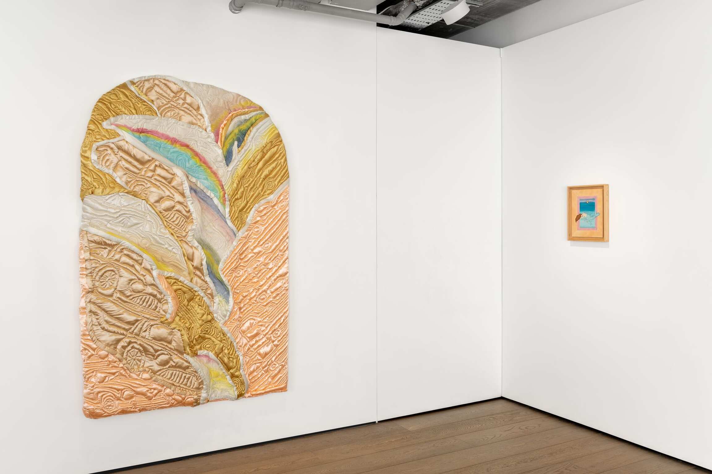 Lilah Rose's mesmerising, textured works carry a sense of solace and blur the lines between functional and beautiful art. The plushness of Rose's works can be found not only in appearance but also in her use of fabrics like silk, muslin, and satin which are effectively stuffed to become luxuriant creations reminiscent of comforting homes and interiors.