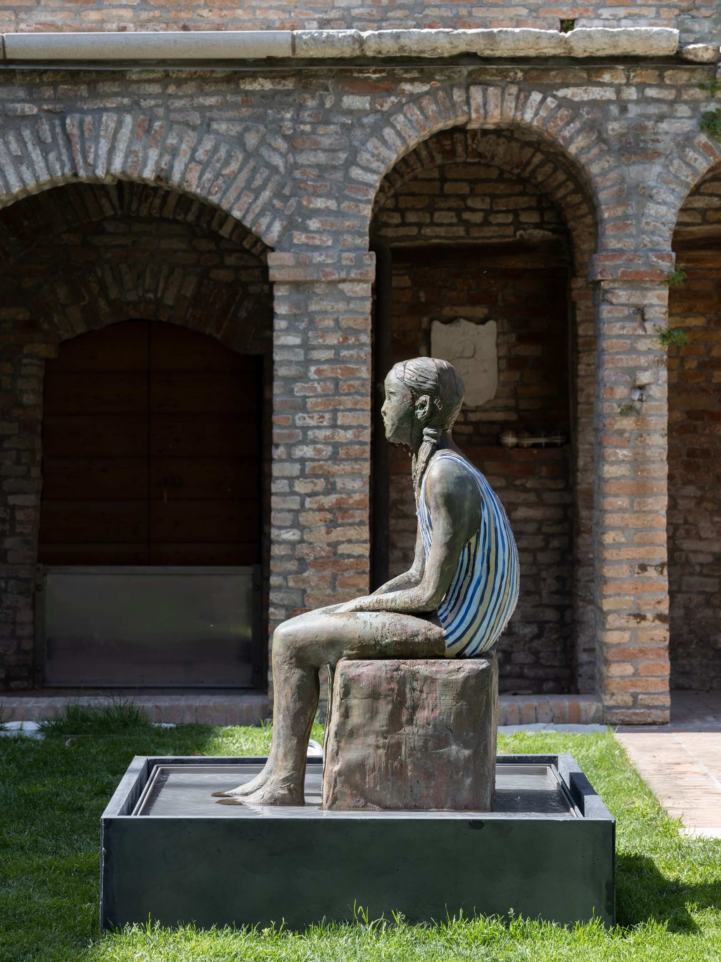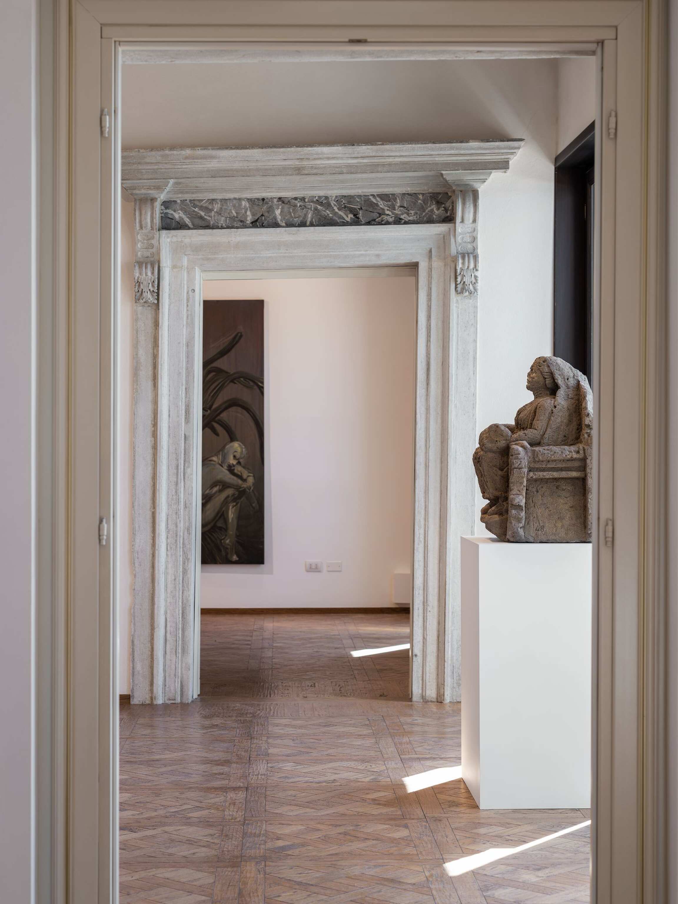 Le langage énigmatique du rituel et de la répétition dans les univers amniotiques de Tabouret révèle des états de conscience mystérieux et entremêle identité individuelle et forces plus vastes. L’exposition explore aussi une condition double et multiple du soi, en rapport avec la fertilité et la maternité, notamment à travers la présence de deux Matres Matutae de Capoue, admirables ex-voto sculptés dans le tuf volcanique entre 500 et 200 avant JC dont la présence magique recréé un lien matériel renouvelé avec la terre. Processus d’incarnation et de transfiguration, créatures monstrueuses et inexplicables, tout est lié par une miraculeuse possibilité de transformation. Comme l’écrivait Hélène Cixous dans Le Rire de la Méduse (1975), « Je suis Chair spacieuse chantante, sur laquelle s’ente nul sait quel(le) je plus ou moins humain mais d’abord vivant puisqu’en transformation.