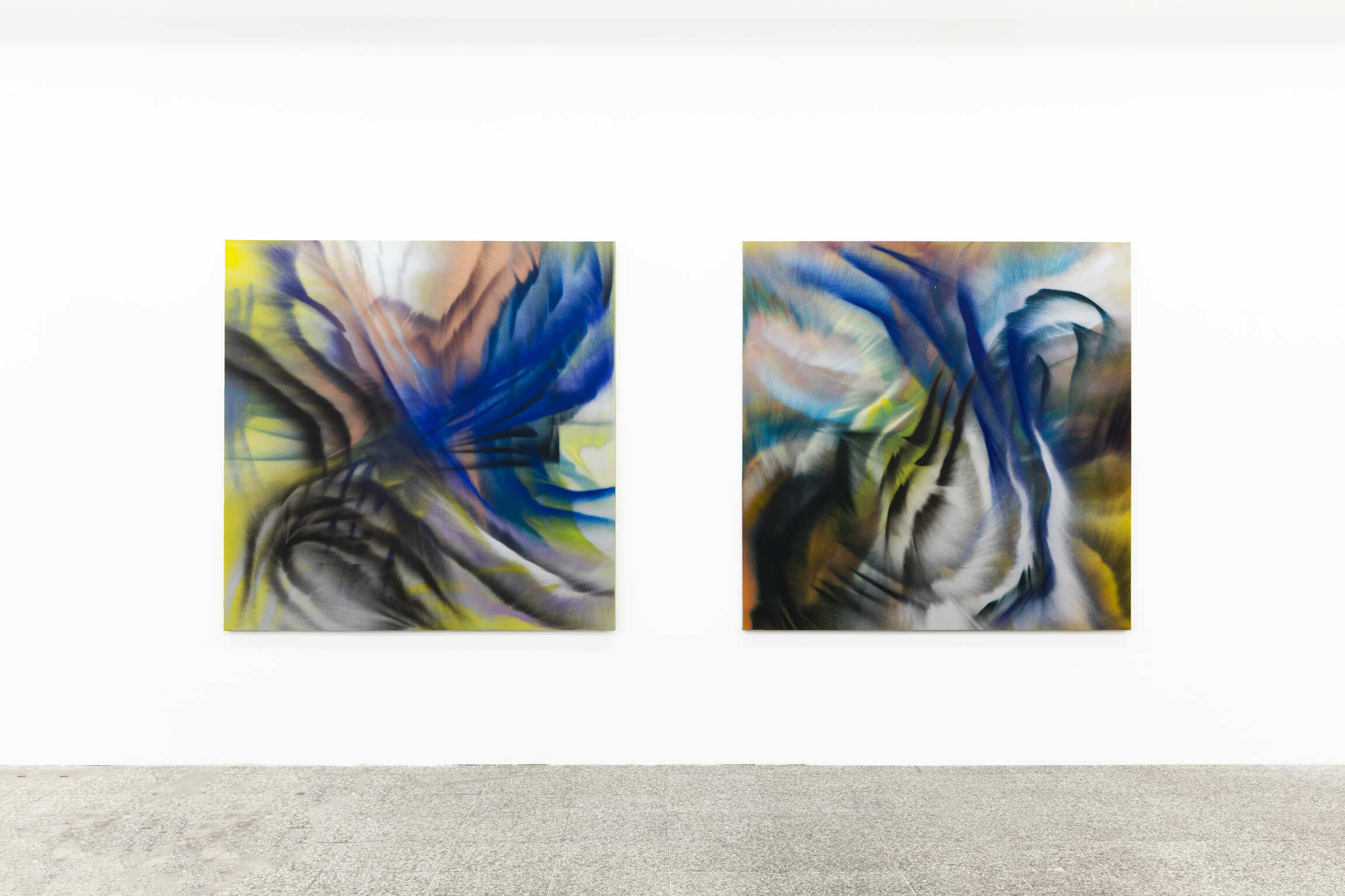 Her willingness and ability to push the limits of this spray paint technique are as evident as they are exciting. As seen here in this new exhibition Fence, Fall, Touch, each of the ten new works somehow manages to blend confidence with vulnerability, experimentation with mastery, and raw chaos with a delicate, sweeping beauty. But in contrast with her past exhibitions, there seems to be continuity - more so than ever before. Not only does each of her new works demonstrate a step-change in her evolution as an artist, but it is clear that she has applied specific and consistent techniques that tie the body of work together as a whole. Yet again, it is clear that she has pushed open a new boundary.