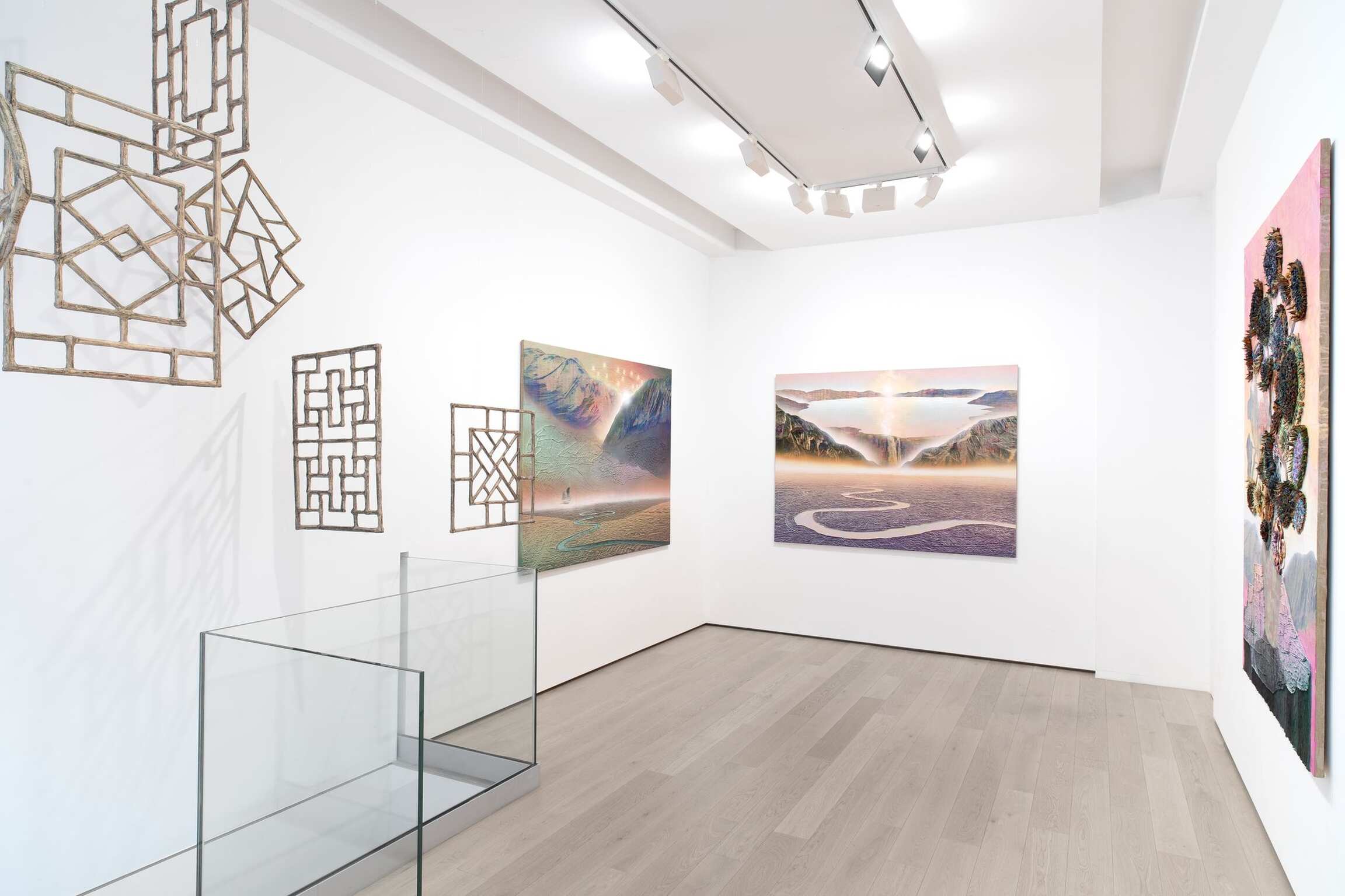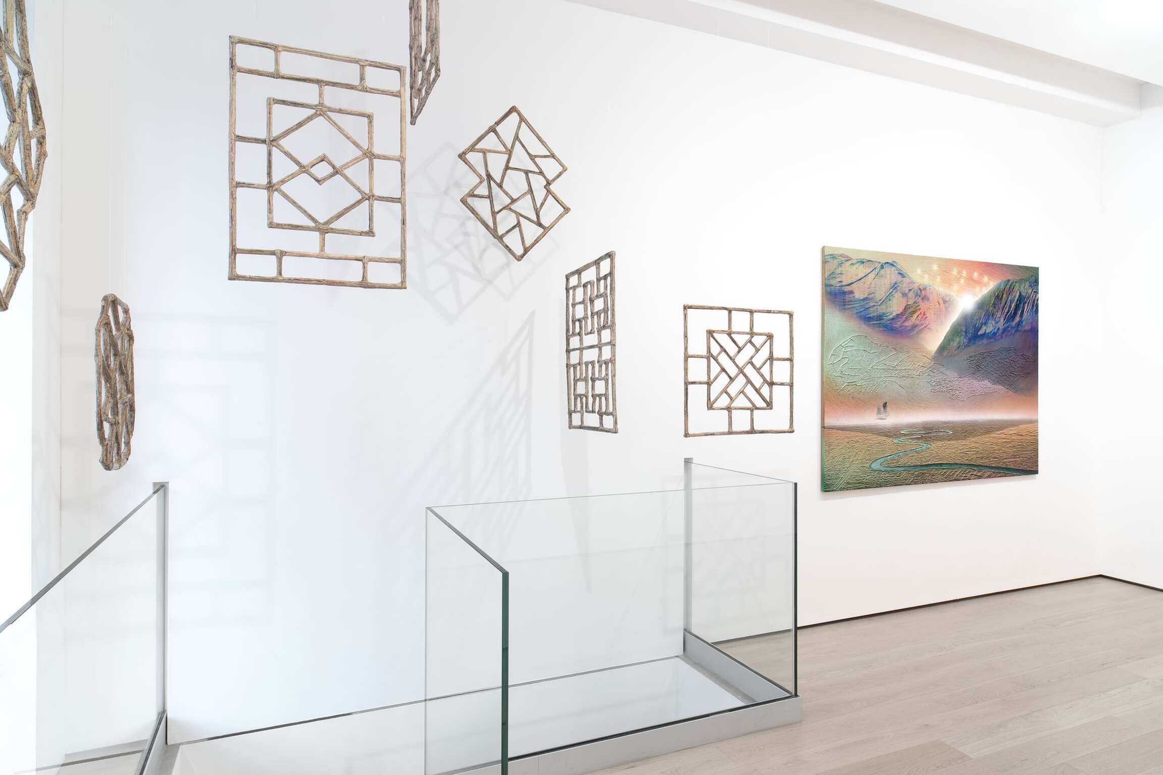 The show is a study of confluences, a look at an intertwined history between two largely contrasting cultures, religions and philosophies at a historical juncture of huge acceleration on one side, charging headlong into Modernism. Cheung’s paintings are a multi-layered account of human activity and history and his interest stems from his upbringing as a British born Chinese and his desire to understand his own roots. His work speaks to a wide range of influences, from romanticists such as Caspar David Friedrich to sculptures influenced by Chinese Window designs. However, Cheung’s paintings are anything but polite, the acidic colour palettes (somewhat reminiscent of the swirling pyrotechnical allegories of the Victorian painter John Martin) suggest chemical interactions of a world ravaged by human industry, perhaps even on the brink of anthropogenic chaos or the aftermath of a nuclear war.