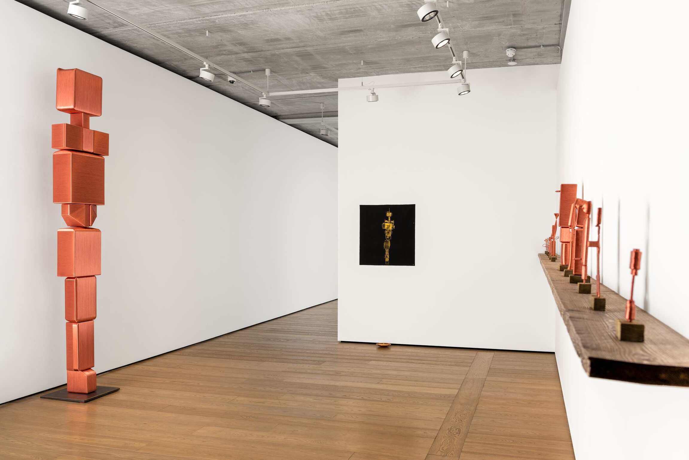 For her copper sculptures called “Spiritual Machines,” the principle is the same. She preserves a trace of the objects (“memorises” them, in Anderson’s terms), by entirely covering the chosen object slower process. The relationship between the human and the non-human occurs through wire that is unrolled and rolled; the movement of the body produces new configurations. This mummification touches on the sacred, evoking the cloth strips of mummies—an attempt at preservation for eternity.
