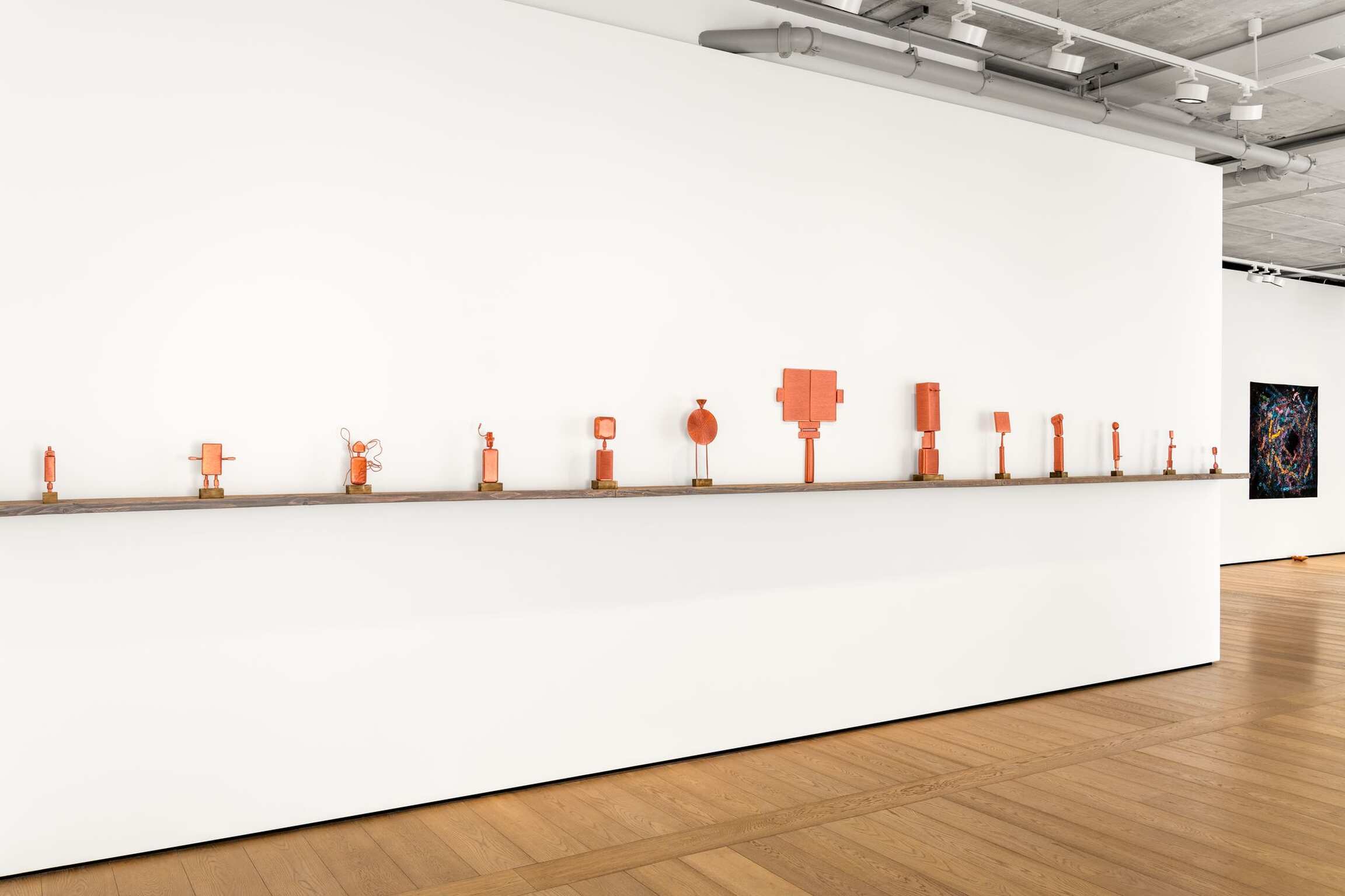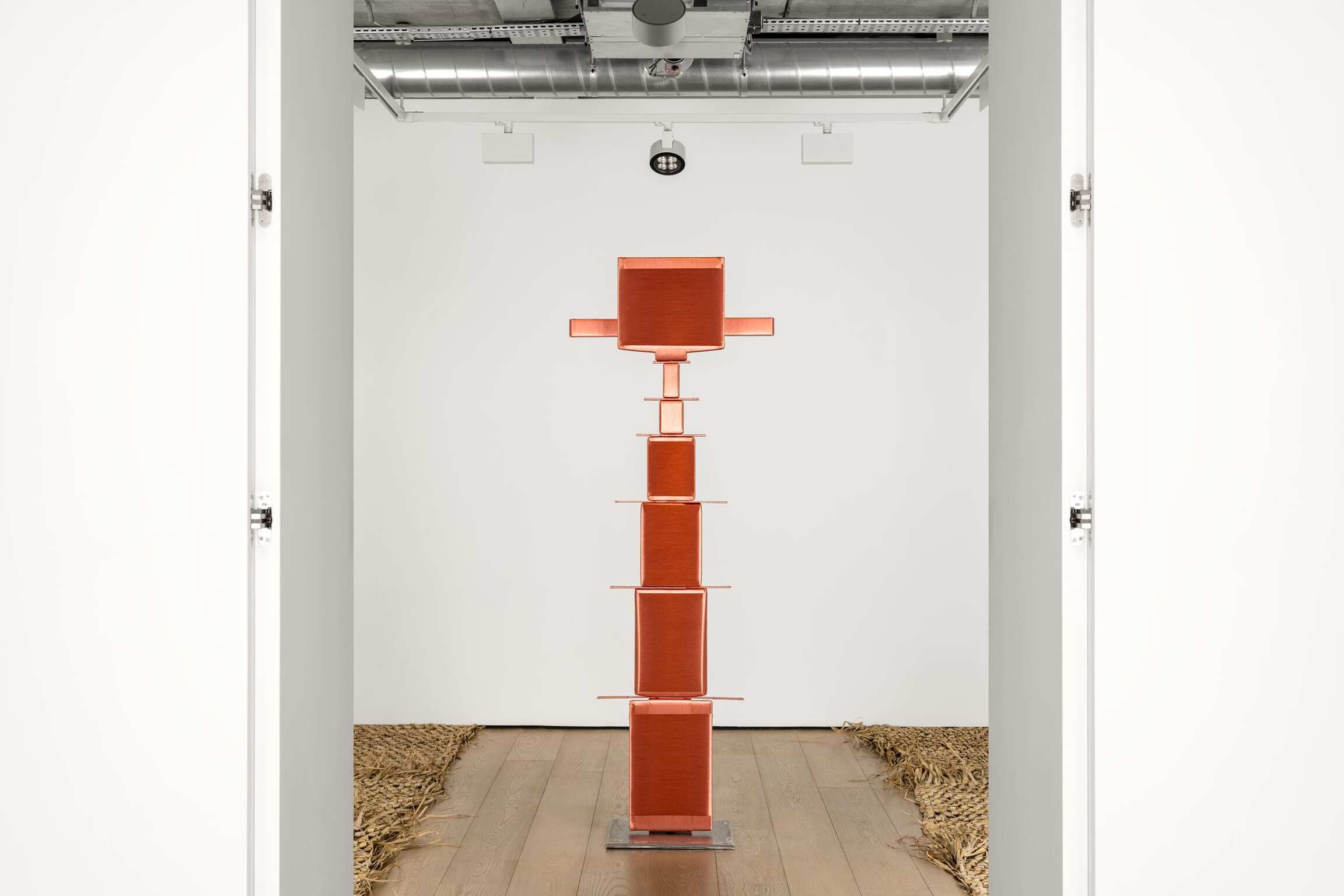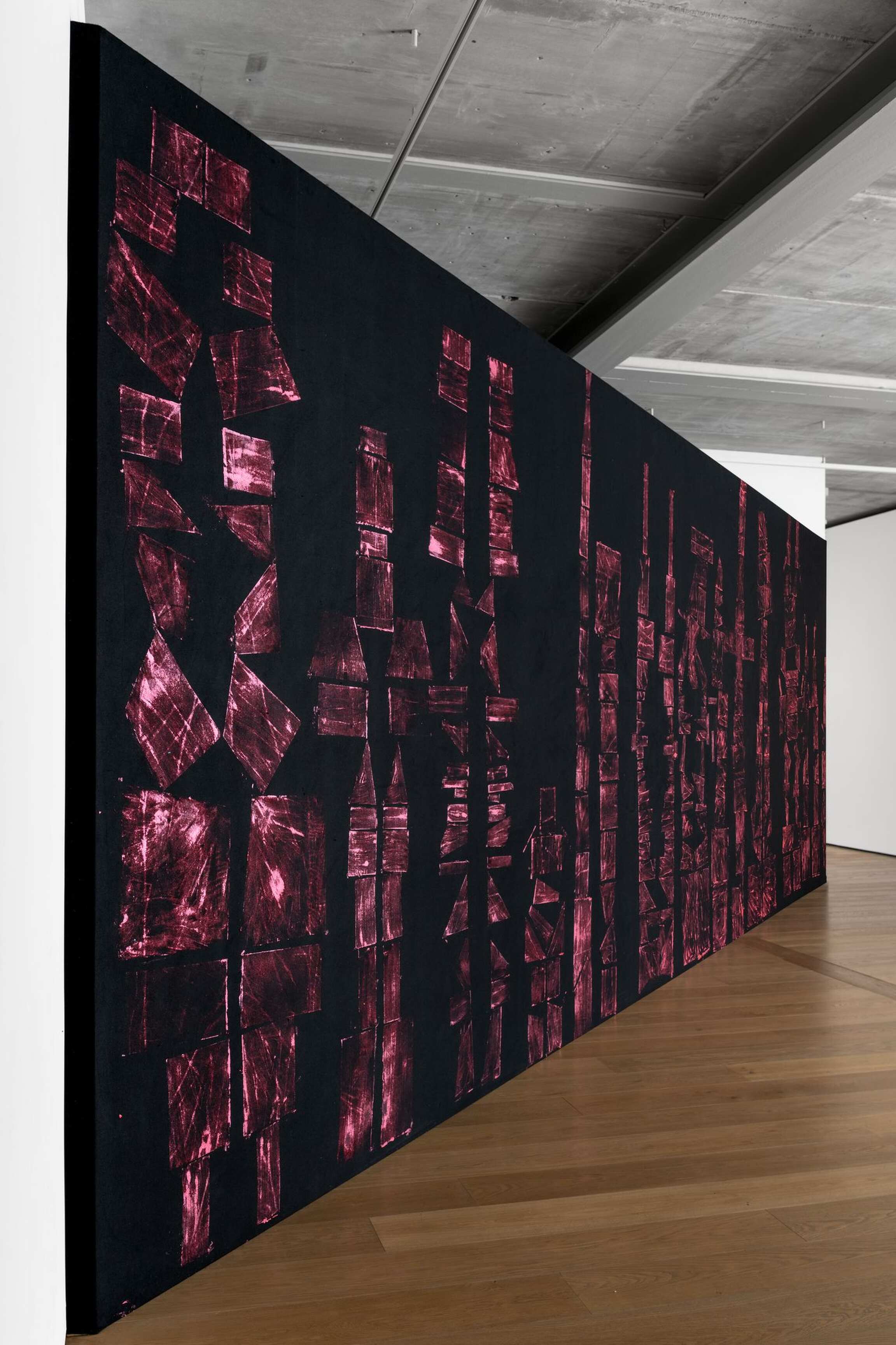 Alice Anderson has a special relationship to objects, which to her are “non-human entities.” She tries to memorise all the tools of today’s technology, including computer batteries, phones, alkaline batteries, drones, hard drives, and even packing boxes, either by shrouding them in copper-coloured wires or leaving their imprint on a canvas. When working with these wires, she uses slow gestures and makes the imprint through dance movements either alone or in a group, thus restoring a link between the living and the material, the human and the non-human.