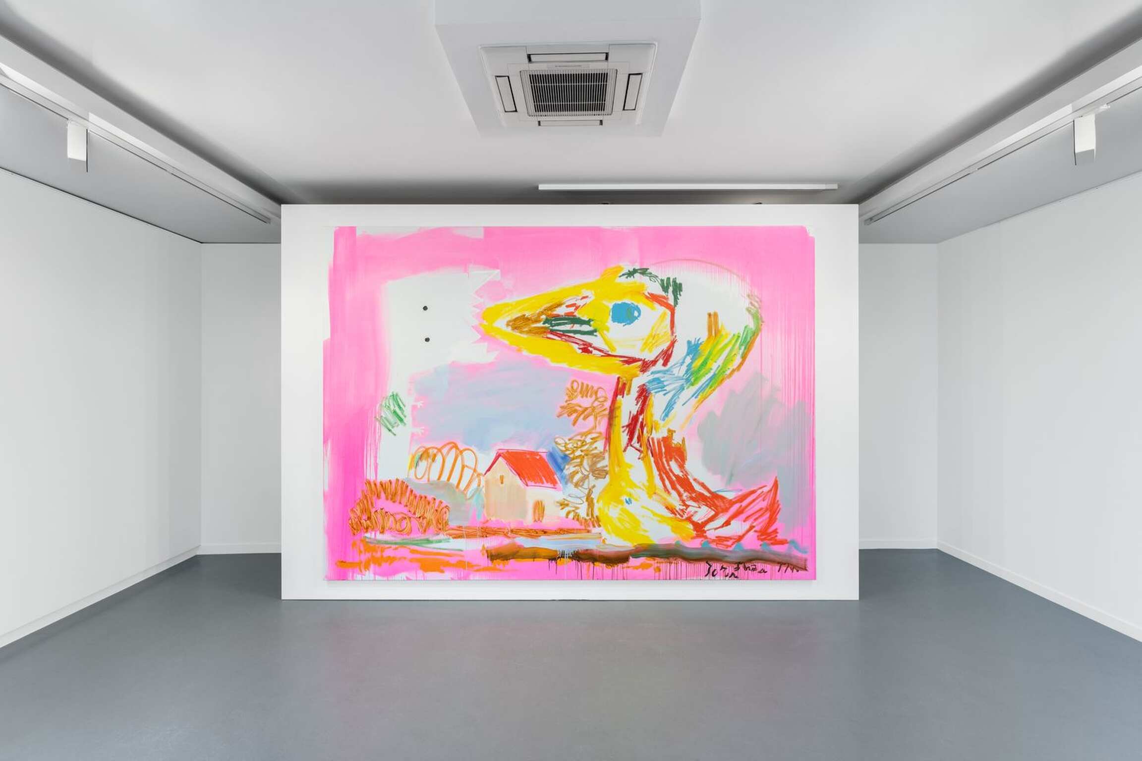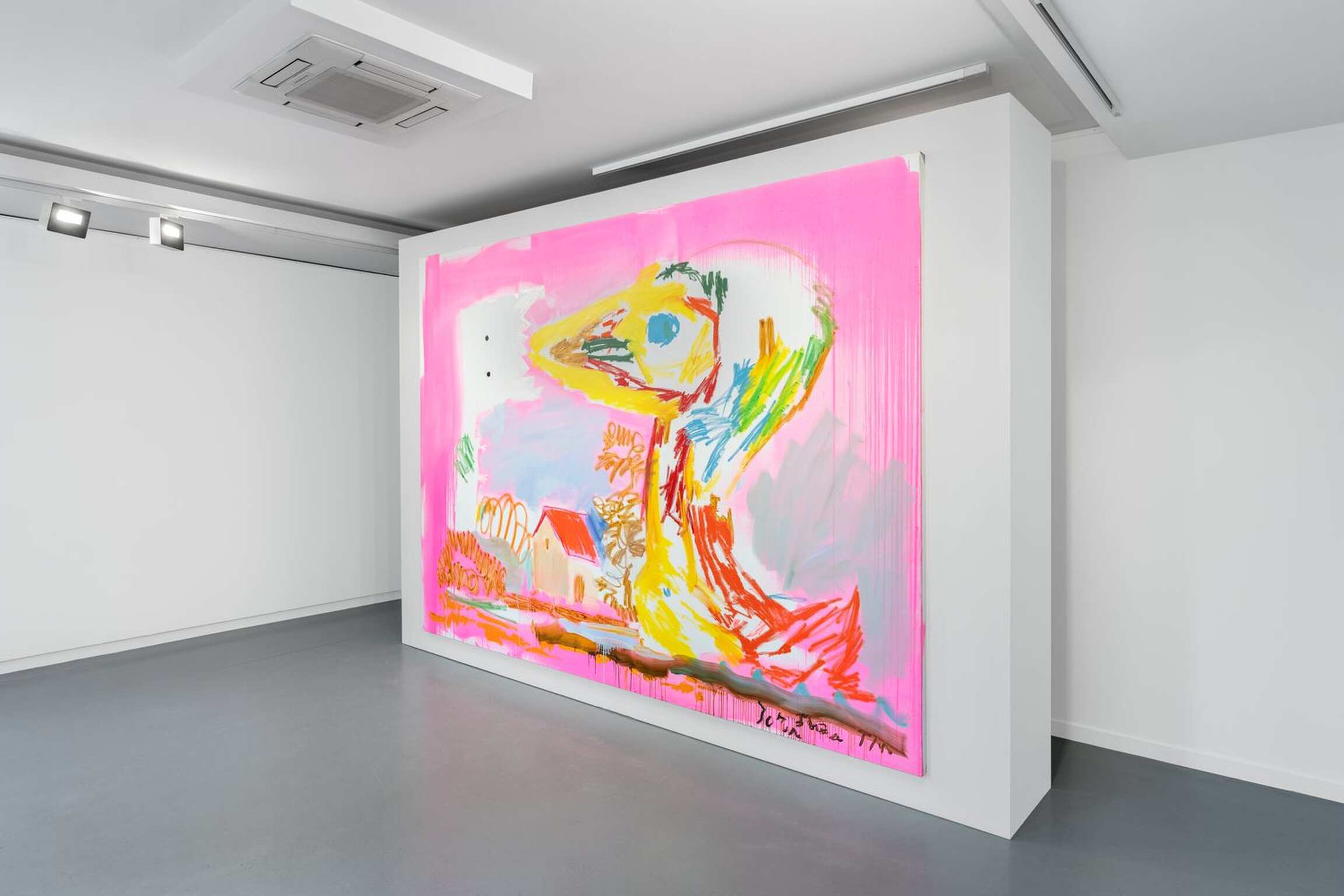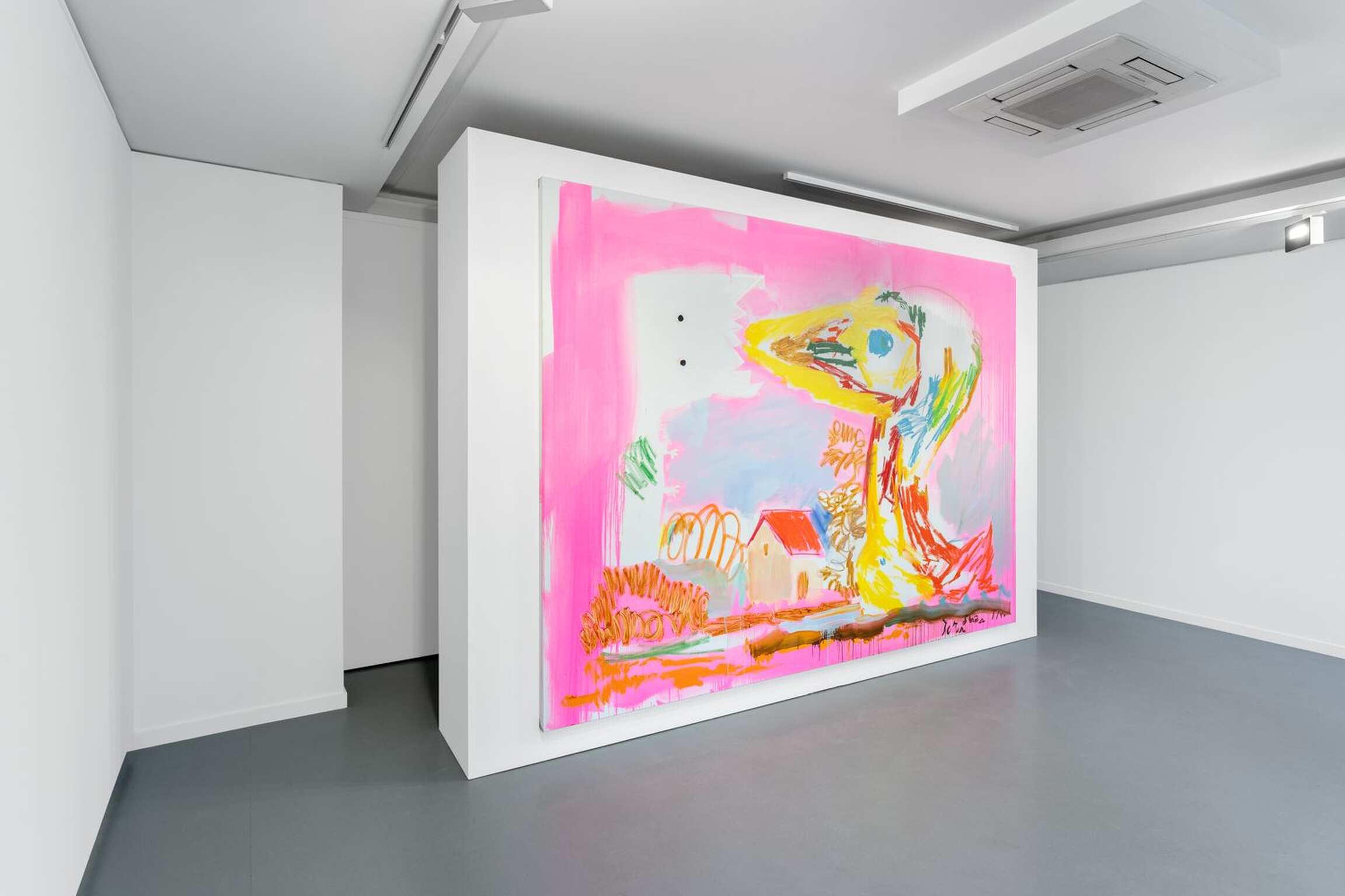 Situationist “game” theories (which underpinned Jorn’s “improved canvases”) are definitely at work in the actual painting process that Tursic & Mille have been developing for the past twenty years. Although both are keen to avoid debating how they paint “with four hands”, they do admit that their works often make a strange vertical journey from the workshop of one on the first floor to the workshop of the other on the second floor, in one direction then in the other (a “vertical ping pong”, as they call it) - and sometimes not at all. When this happens, one artist “improves” on the other’s painting, and so on, as they have no precise preconception of what the canvas will ultimately look like: their painting is “made by being made”, often dictating its own rules, forcing the artists to a form of pragmatism. Their elaborate “layering” process is much more sophisticated than the traditional approach based on considering the background, and then the elements placed on the background: each new stage augments, or sometimes obliterates the previous one, and forces them to reconsider the painting in its entirety. Here, the painting commands. Tenderness, on show at Almine Rech Paris (and which gave its title to the exhibition [4]), is not a found and “augmented” painting, but rather an image of the whole process - more precisely a recording of the process, or at least its designation as a remarkable and singular event.