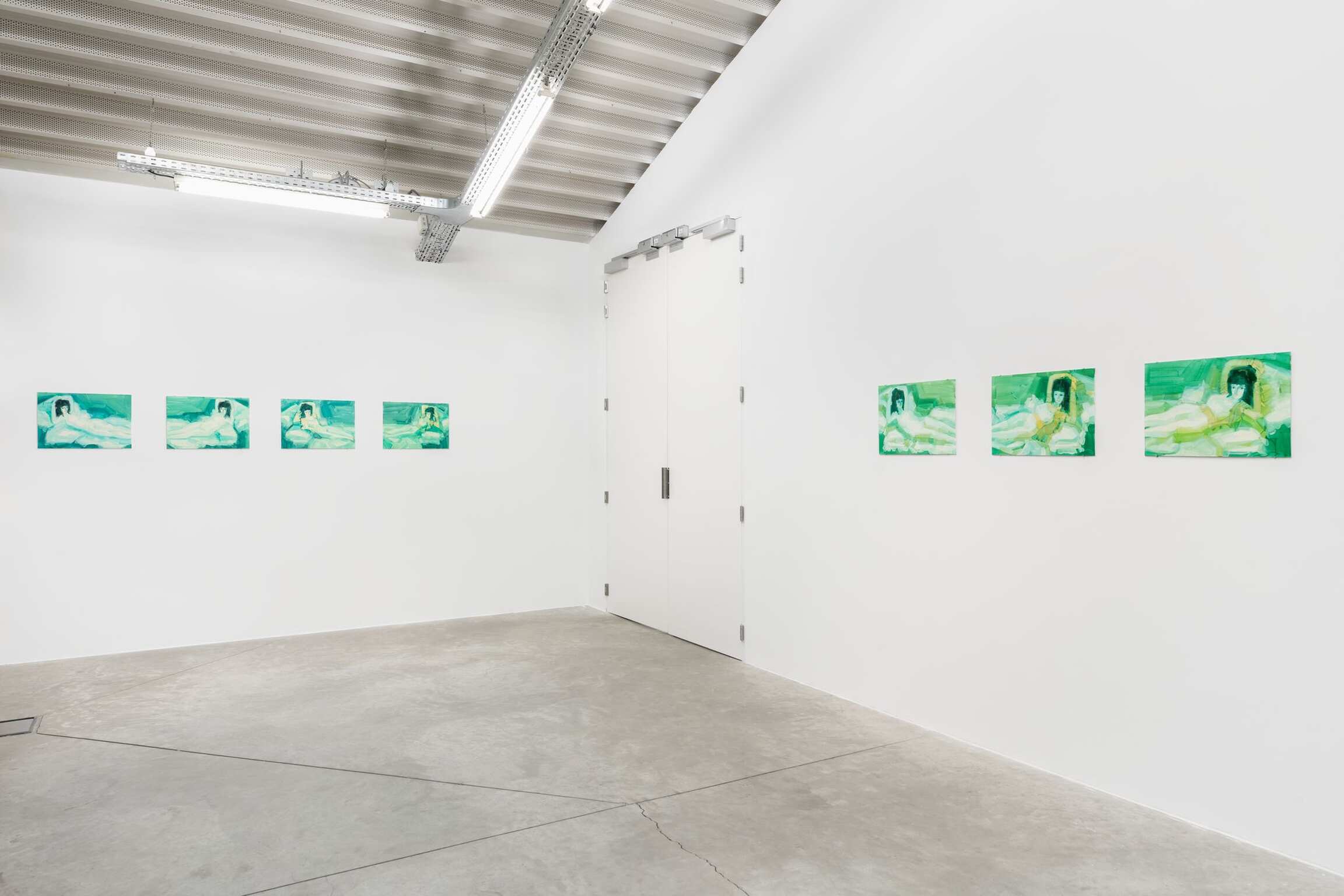 In the 10-part decalogy ‘Staring at Maja (After Goya),’ Hu Zi connects Goya’s Maja with subtle changes in each part. Each depiction is reminiscent of the original work, but with the addition of Hu Zi’s signature approach, where themes of rebellion, toughness, and sensuality are ever-present. The hues of greens and positioning changes add an element of surprise to make each work equally self-contained as it is part of a series.
