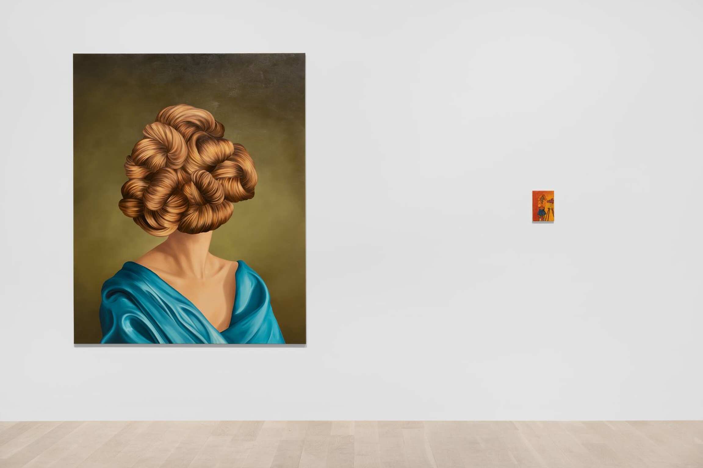 Perhaps the most heralded preoccupation of artists in the past decade has been portraiture and the figure, which is represented extensively in various modes in the exhibition. A diverse selection of artists draw out themes of identity, community, and technology through explorations of the body, materiality, and form. Andra Ursuţa’s monumental Soft Power 2 (2013) links the body to protest and gender, while Louise Bonnet, Ewa Juszkiewicz, and Christina Quarles thoughtfully and critically challenge preconceptions of the female body. Elle Pérez presents multifaceted perspectives on the body that are shaped by personal experiences, popular culture, and theoretical discourses. Dominic Chambers, Jonathan Lyndon Chase, Cheyenne Julien, Florian Krewer, and Doron Langberg among many others, create spaces of intimacy and resistance in their works.