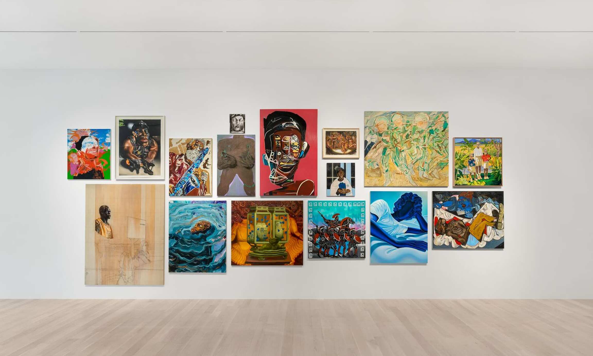 In times of isolation, instability, and uncertainty artists often provide glimpses into illusory and transcendental worlds. Many of the works in “Fire Figure Fantasy” direct us toward new, alternative horizons. The work of Toyin Ojih Odutola narrates an equitable space through the means of imaginative science fiction, while the large-scale paintings of Avery Singer imagine complicated futures. Idyllic landscapes confront complex realities in the works of Lucas Arruda, Kyle Dunn, Emma Webster, and Huang Yuxing, sublime works subtly evoke the urgency of the continued environmental crisis.