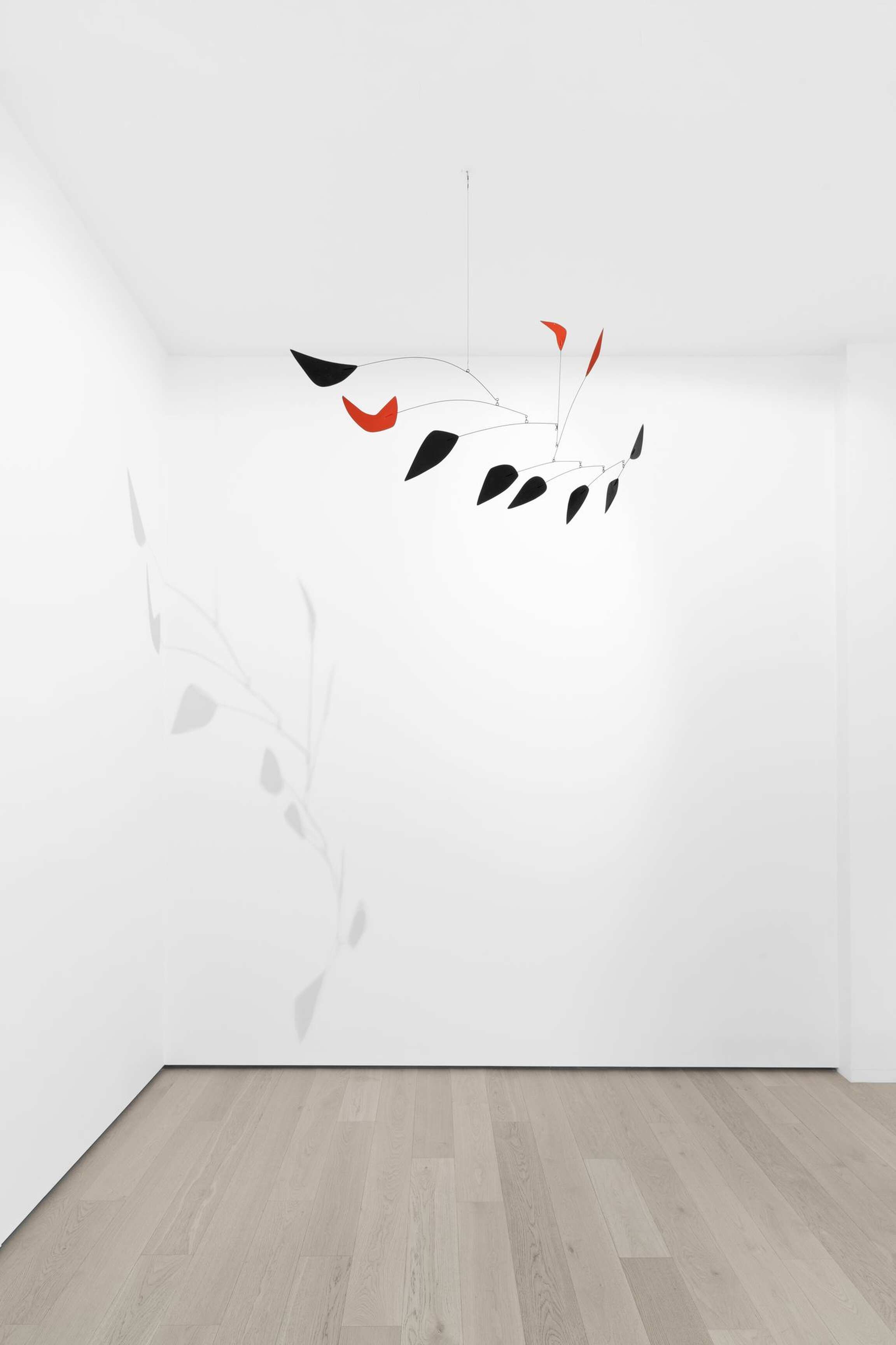 Unique among his contemporaries, Calder devised a number of new mediums during his lifetime, none more famous than the mobile. Giving form to something as ephemeral as currents of air, he astonished the world with his creation of kinetic sculpture in 1931. As philosopher Jean-Paul Sartre once wrote of his work, “A passing glance is not enough; you must live with it, be bewitched by it [...] The movements of Calder’s mobiles have a life of their own.” Featured in the Rech presentation is an untitled hanging mobile from 1963 composed of delicate sheet metal elements affixed to cascading wire tendrils. Made at the height of Calder’s career, the mobile’s expansive scope of movement ensures that its audience will never experience it the same way twice.
