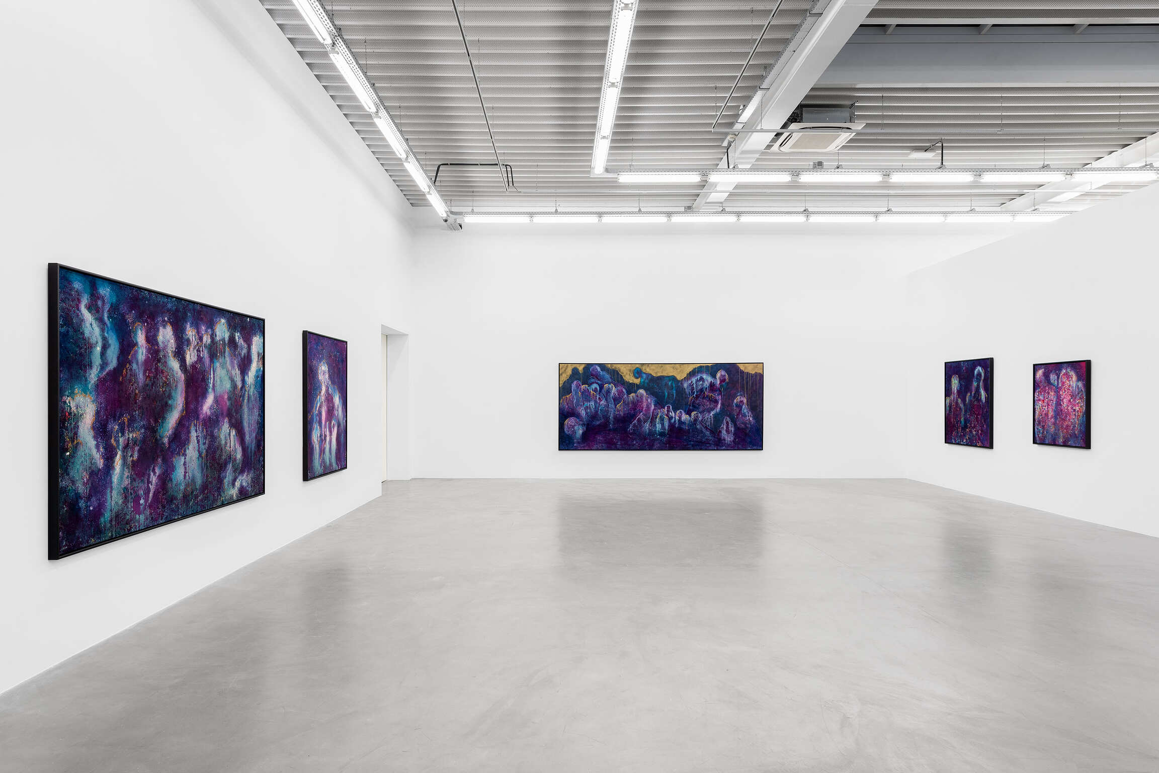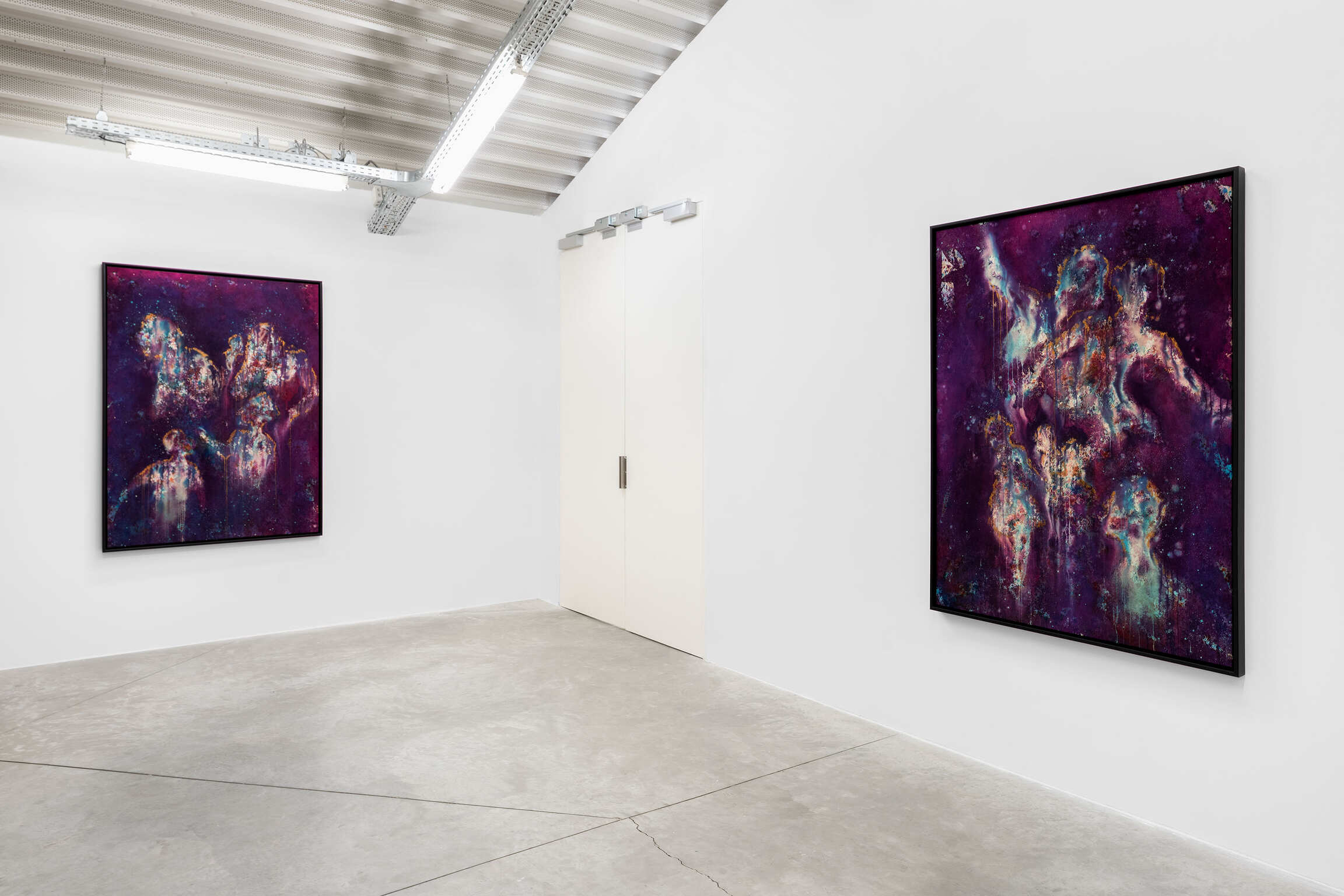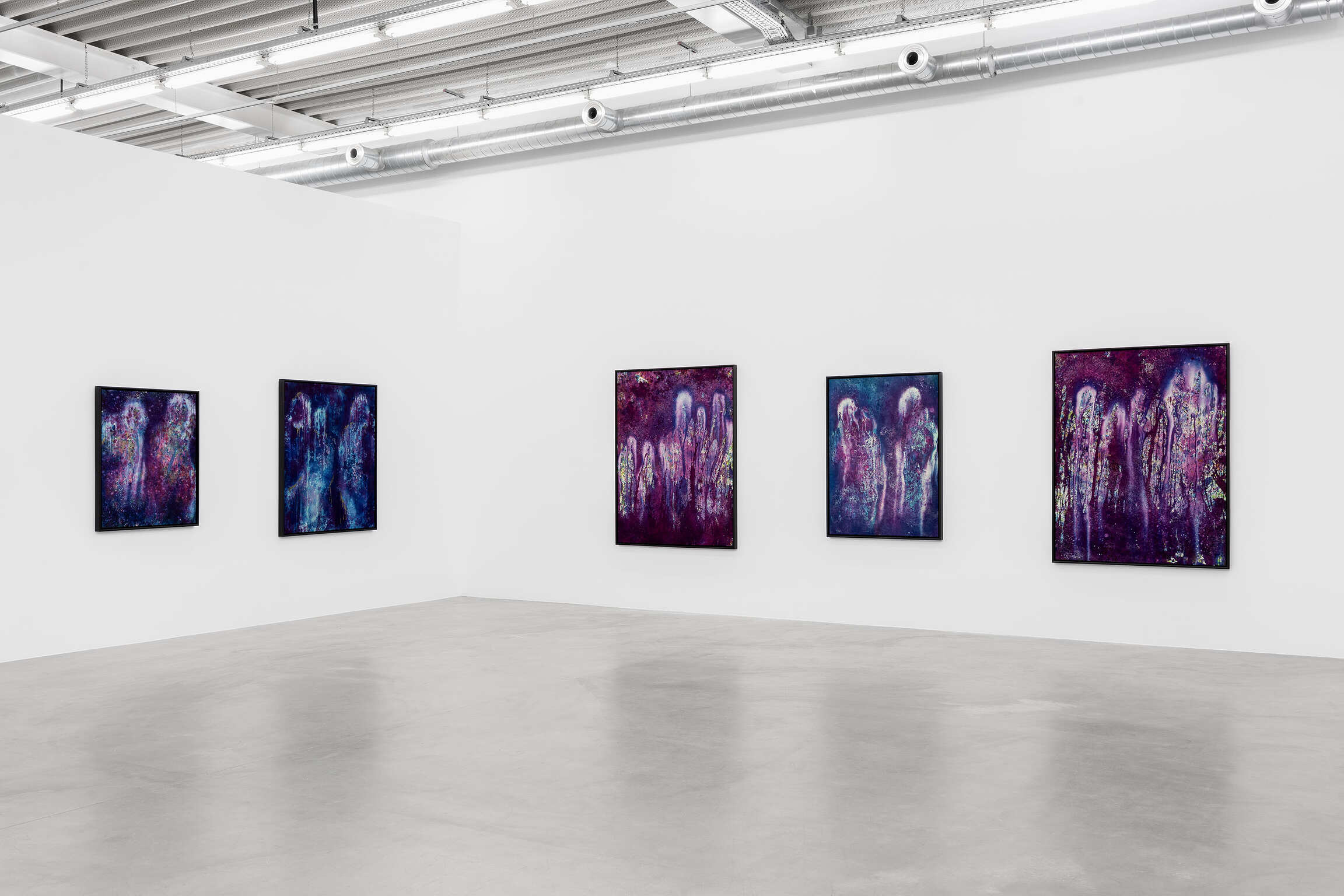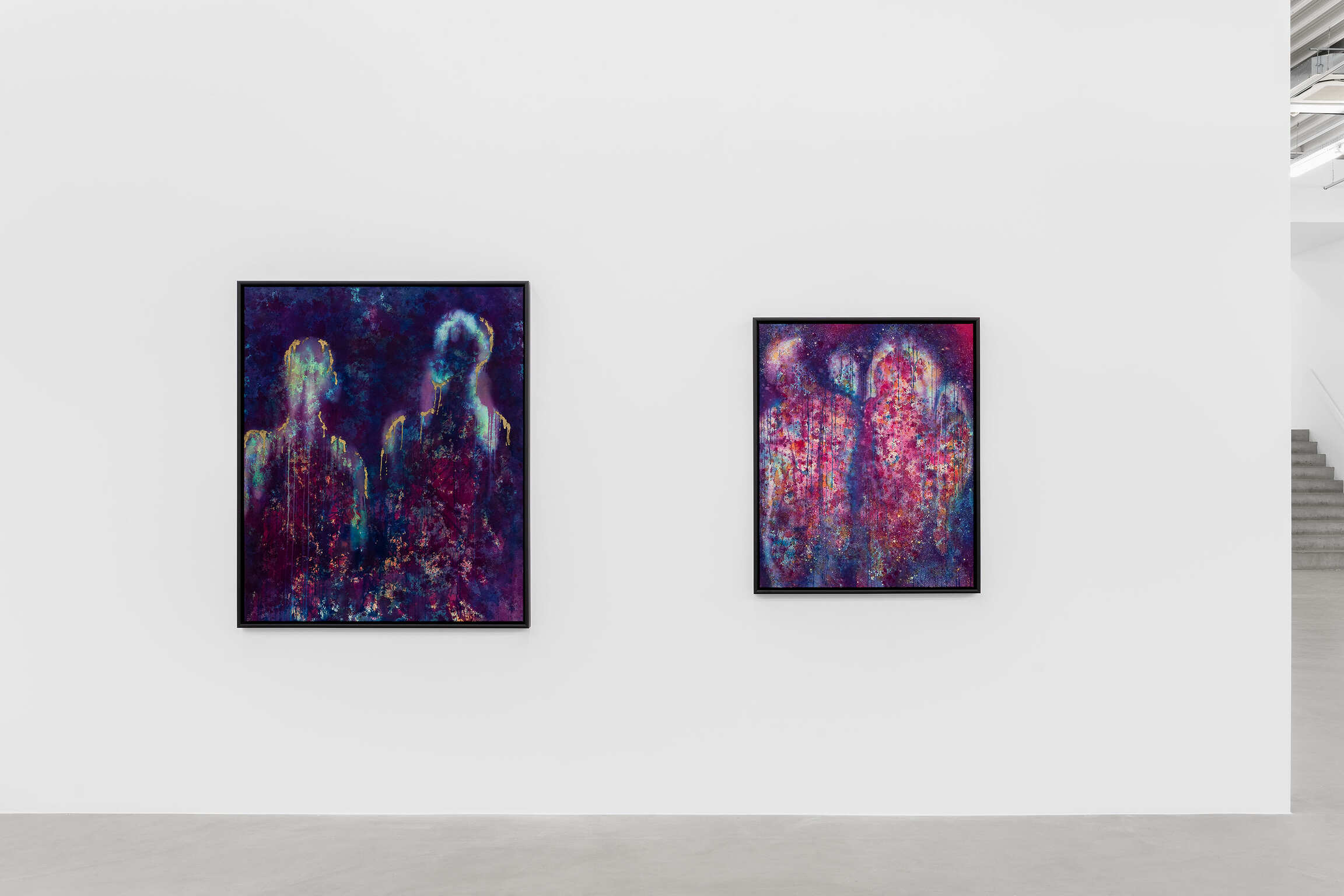 De wolkachtige silhouetten in deze schilderijen zijn inderdaad voorgevormd door de ruimte om hen heen, gecreëerd door een combinatie van toeval en intentie. De techniek van McGrigg laat een zekere mate van onvoorspelbaarheid toe, en de figuren worden bepaald door de plaats waar zij ze onthuld ziet worden via de aanvankelijke gelaagdheid van gevlekte, wervelende kleuren. De vermenging van binnen en buiten, die fundamenteel is voor haar conceptualisatie van ‘The Beloved’, wordt ook visueel weergegeven door de poreusheid tussen de figuren en wat hen omringt. De daaruit voortvloeiende uitwisselbaarheid van materialen toont dat ze niet simpelweg van vergelijkbare, maar van dezelfde materie zijn. De schilderijen maken gebruik van een Zwarte metafysica die veronderstelde fysieke barrières tussen levende wezens en hun omgeving omzeilt. Haar spectrale figuraties, constitutief verwerven met hun ruimte, zijn herkenbaar aan hun lichtgevende contouren: troebele sporen van wit en losse contouren van goudstof. Hoewel enkele van hen als solitaire figuren verschijnen, hebben de meeste gezelschap, wat deze serie maakt tot een weergave van McGrigg’s onderzoek naar collectieve en gemeenschappelijke manieren van zijn.