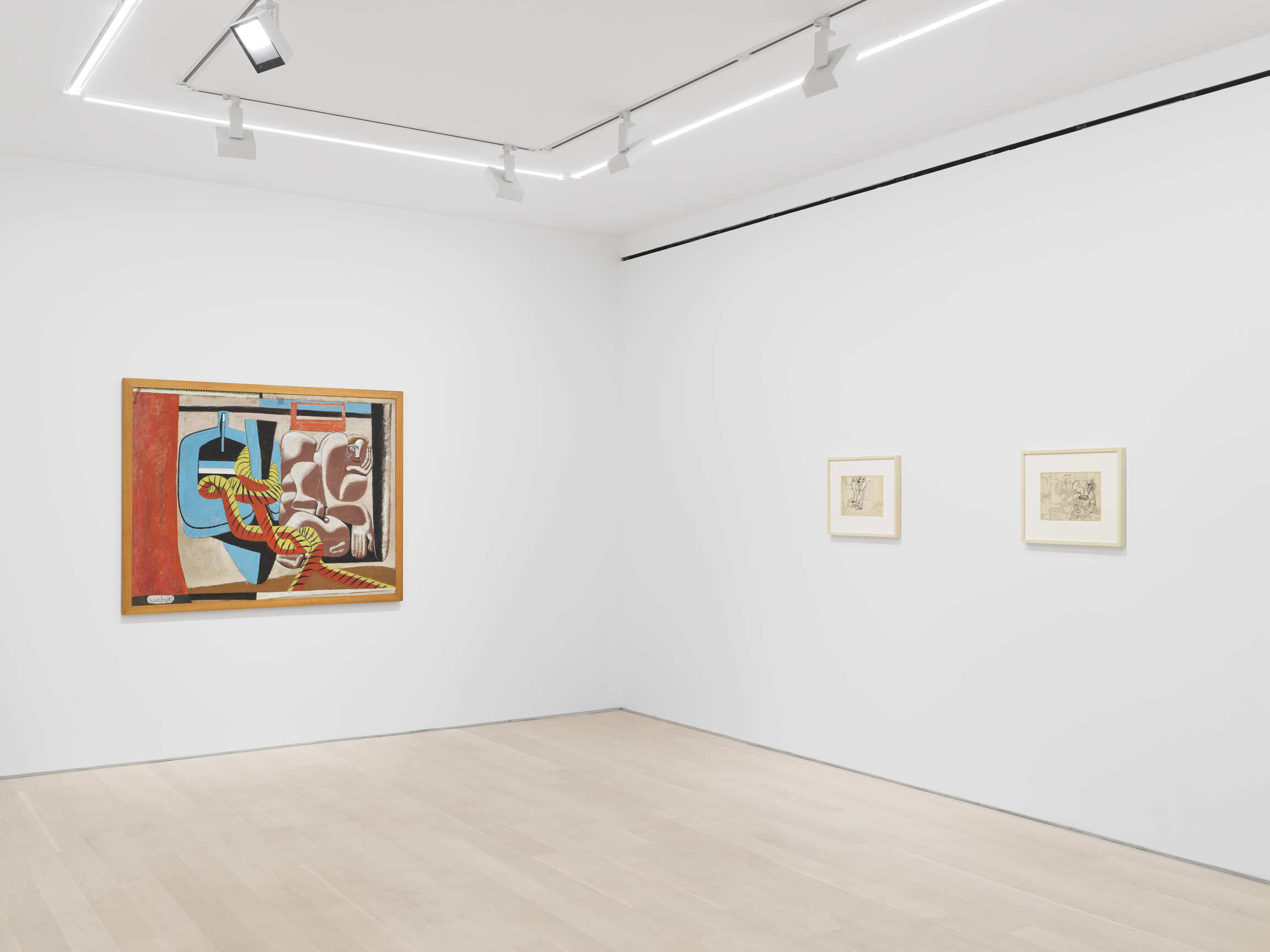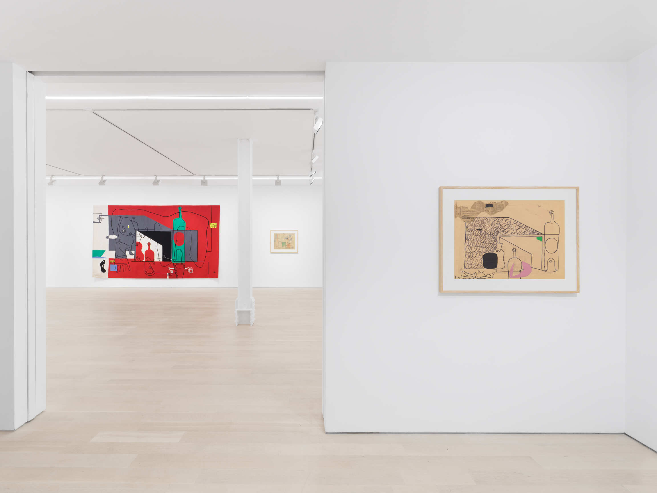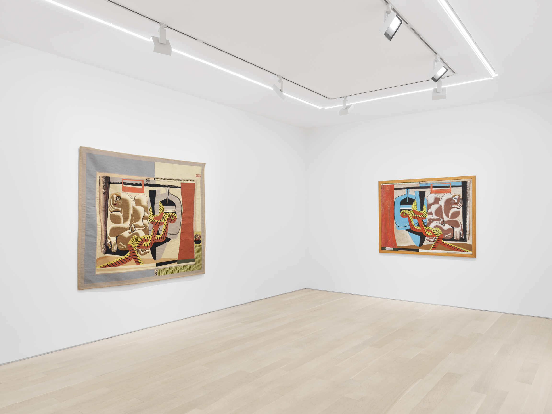 The variety of artistic techniques used by Le Corbusier to design the cartoons of some twenty-six tapestries that Baudouin produced can be seen in the artworks brought together by the gallery, from colored pencil to pastel, oil, and papier collé. In this way, the exhibition reveals all the resources of an architect who had told Guggenheim Museum director James Johnson Sweeney in 1957: “I am a painter, very seriously.” Exploring all the processes used on paper, the exhibition expresses the vividness of his imagination by unveiling the originality and strength of his woven artworks within the wider context of postwar tapestry.
