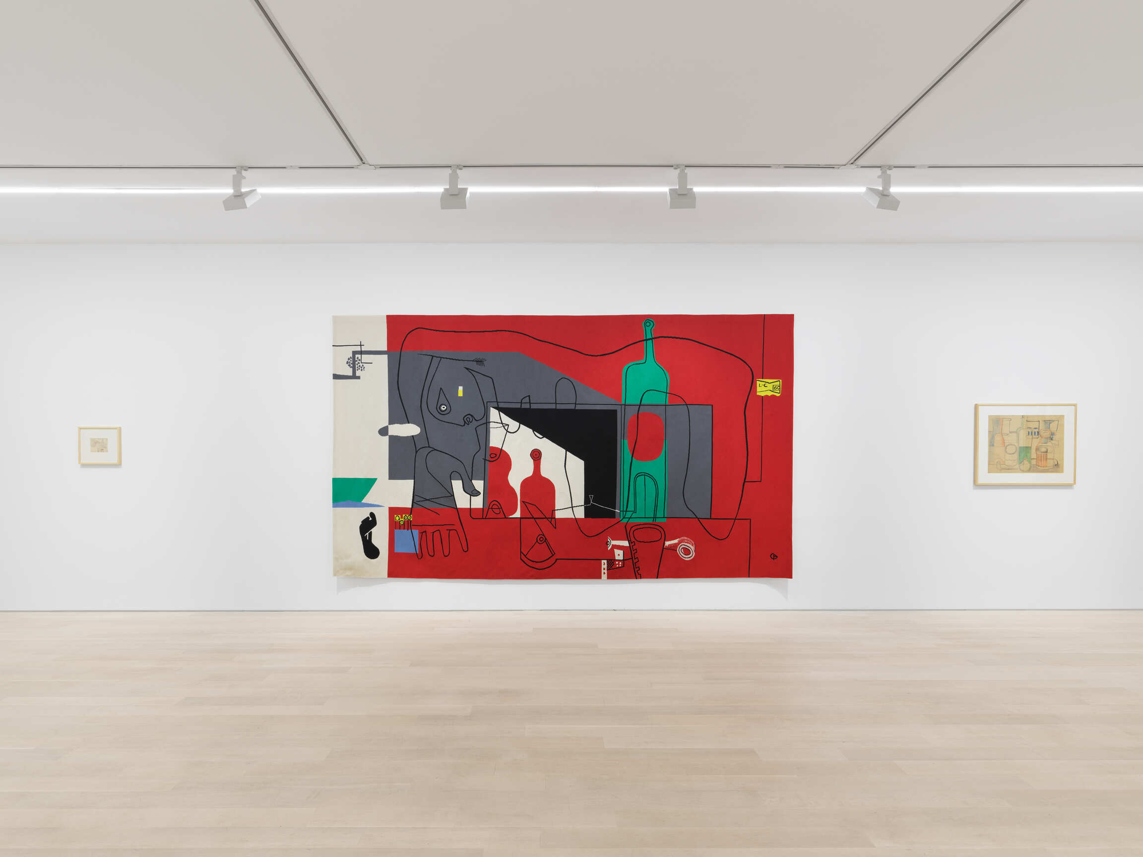 From the explorations he undertook for Marie Cuttoli to his great postwar compositions, this exhibition presents an exceptional set of artworks, whether intimate sketches or vast tapestries, tracing the path of Le Corbusier’s observations and imagination from the “typical objects” of his first still lifes to the female bodies that always inspired him, and whose forms he combined with those of musical instruments and rigging. The largest tapestry that he ever produced – created for the High Court of Chandigarh, the Indian capital that he designed in 1951 – is evoked by a cartoon depicting stylized scales, while the “Open Hand” Monument in the center of the city appears in his Still Life of 1965.