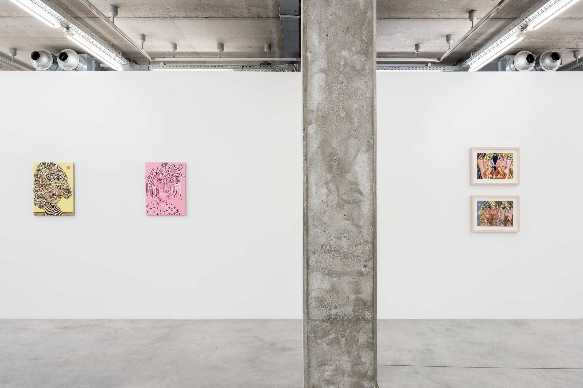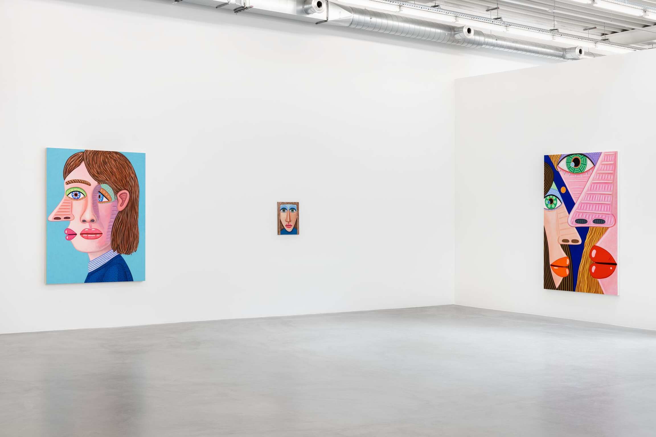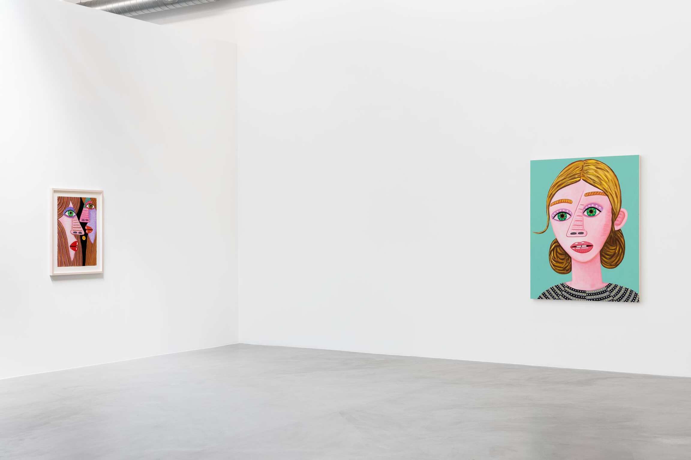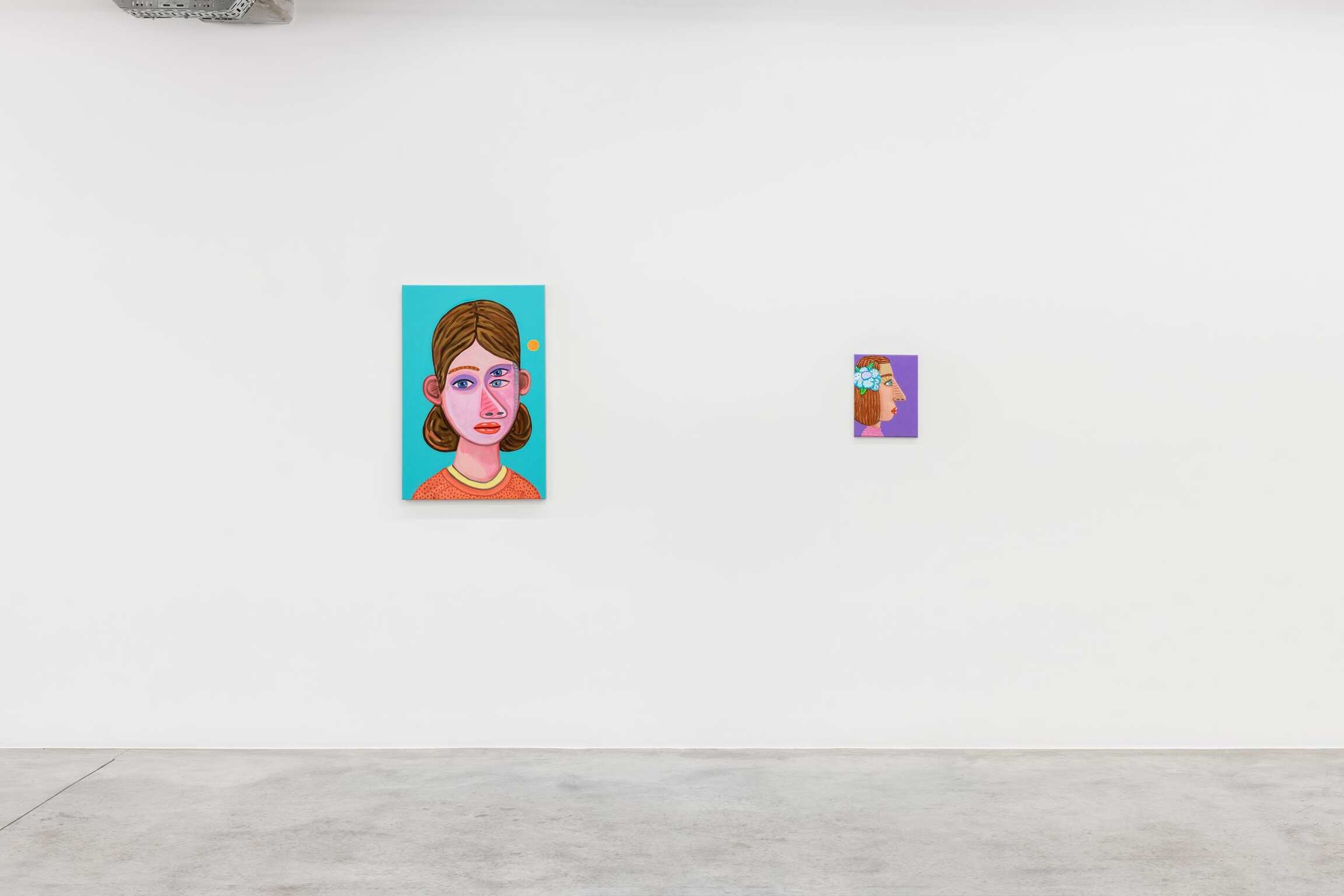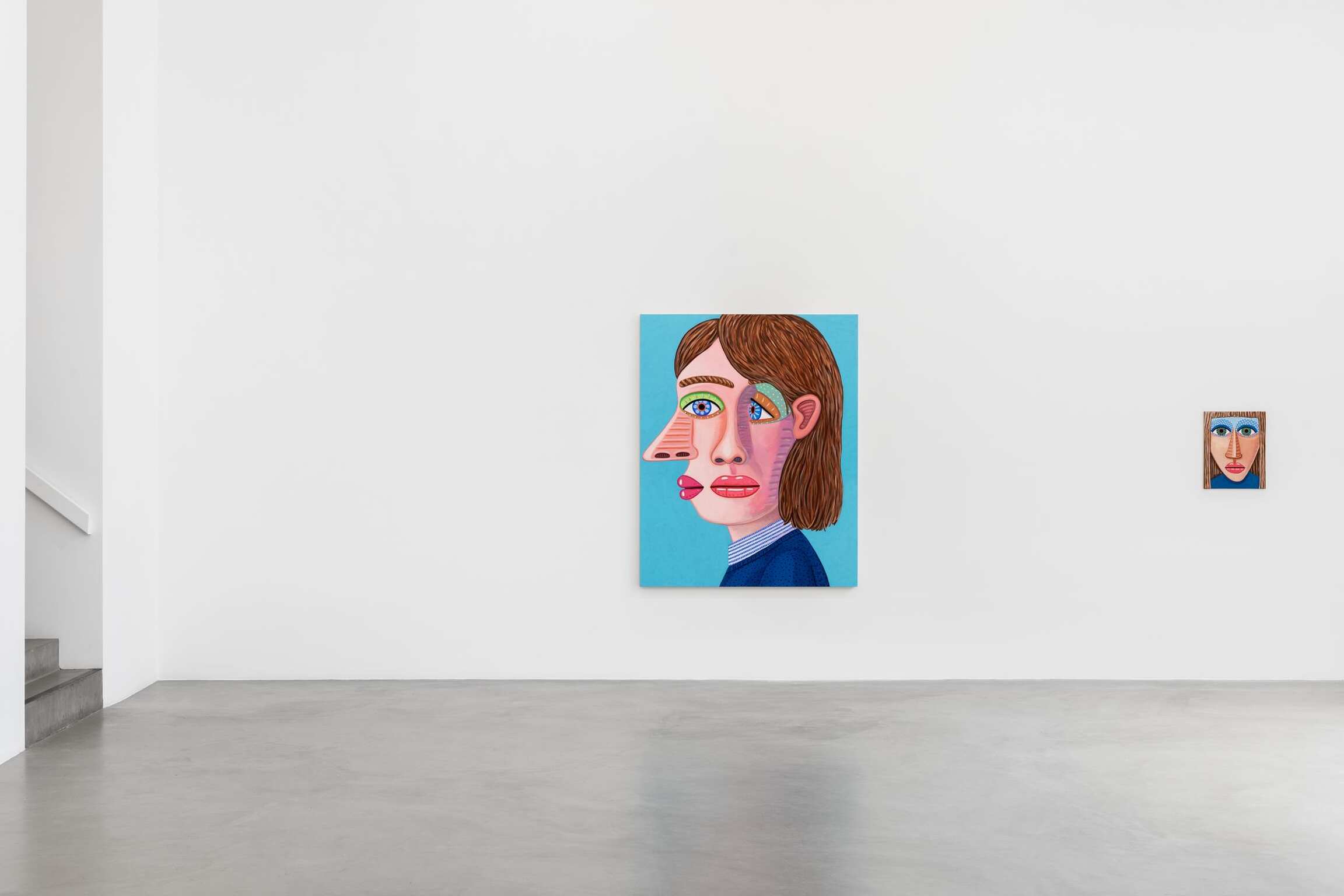 Quand la représentation d’un visage n’est-elle pas un portrait ? Les tableaux de Calvin testent les limites du genre. Contrairement à son exposition précédente, More Days, aucune des œuvres ici ne porte le nom de son sujet. Même si chacune incarne une identité distincte, il est permis de se demander si toutes ces identités correspondent vraiment aux personnes qui pourraient les avoir inspirées, ou même si elles seraient capables de se reconnaître dans ces représentations. Il est bien sûr impossible de savoir si le moindre visage que nous montrons reflète notre vrai moi intérieur. Le tableau Backstage de Calvin, où les cheveux blonds sont tirés en arrière comme des rideaux de théâtre, présente le visage comme façade, plateau sur lequel un drame peut se dérouler, mais reste irrémédiablement un écran opaque.