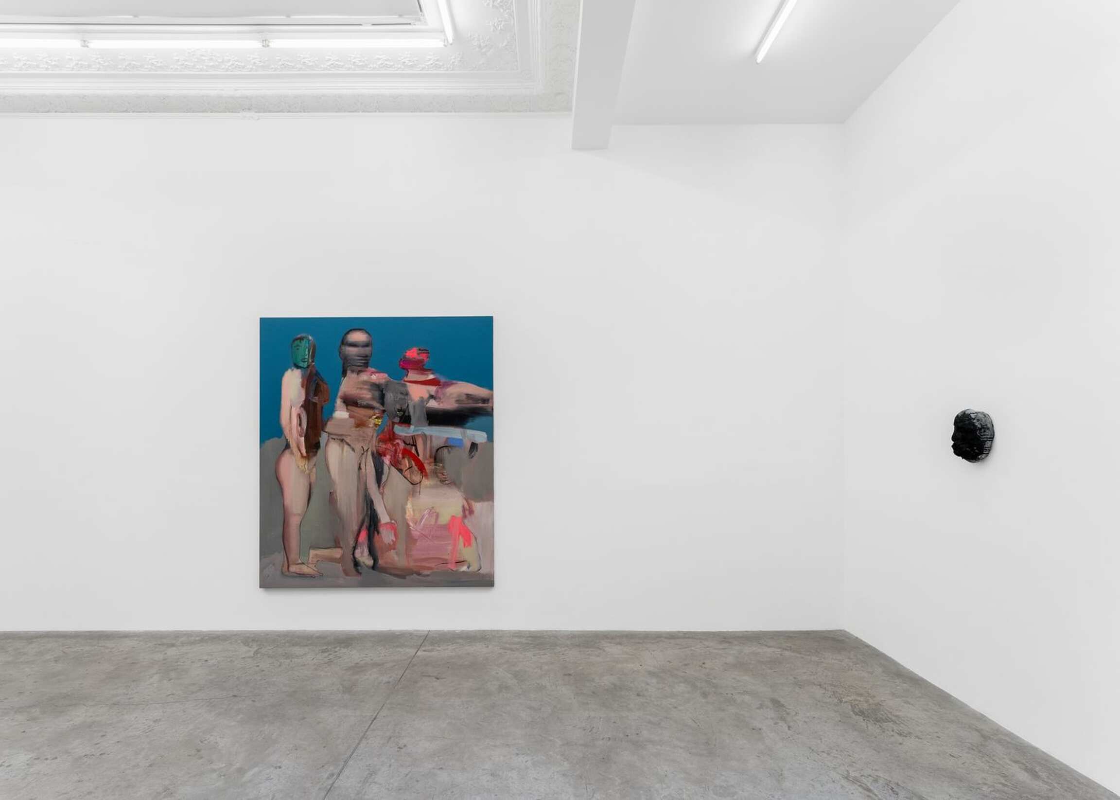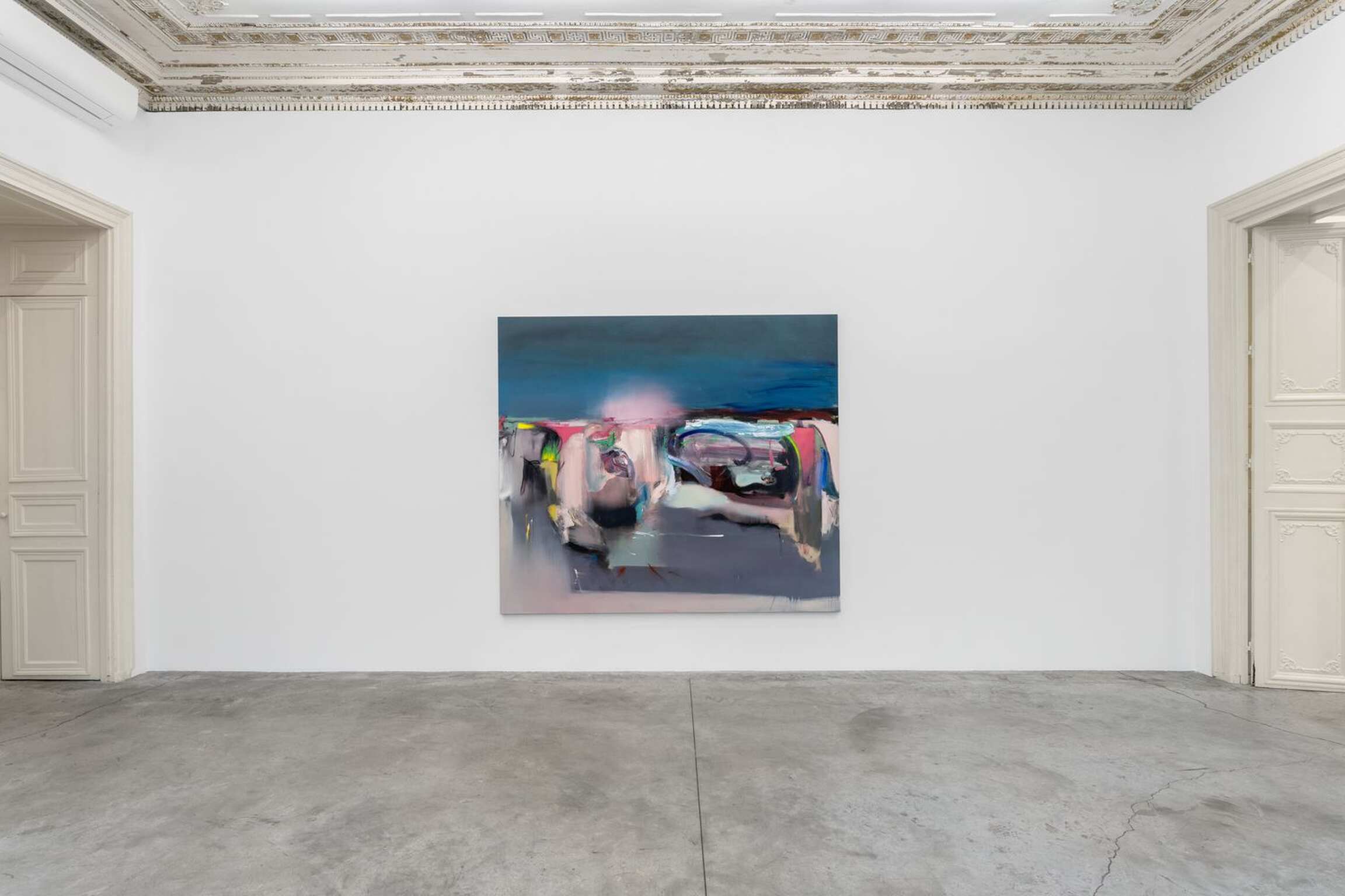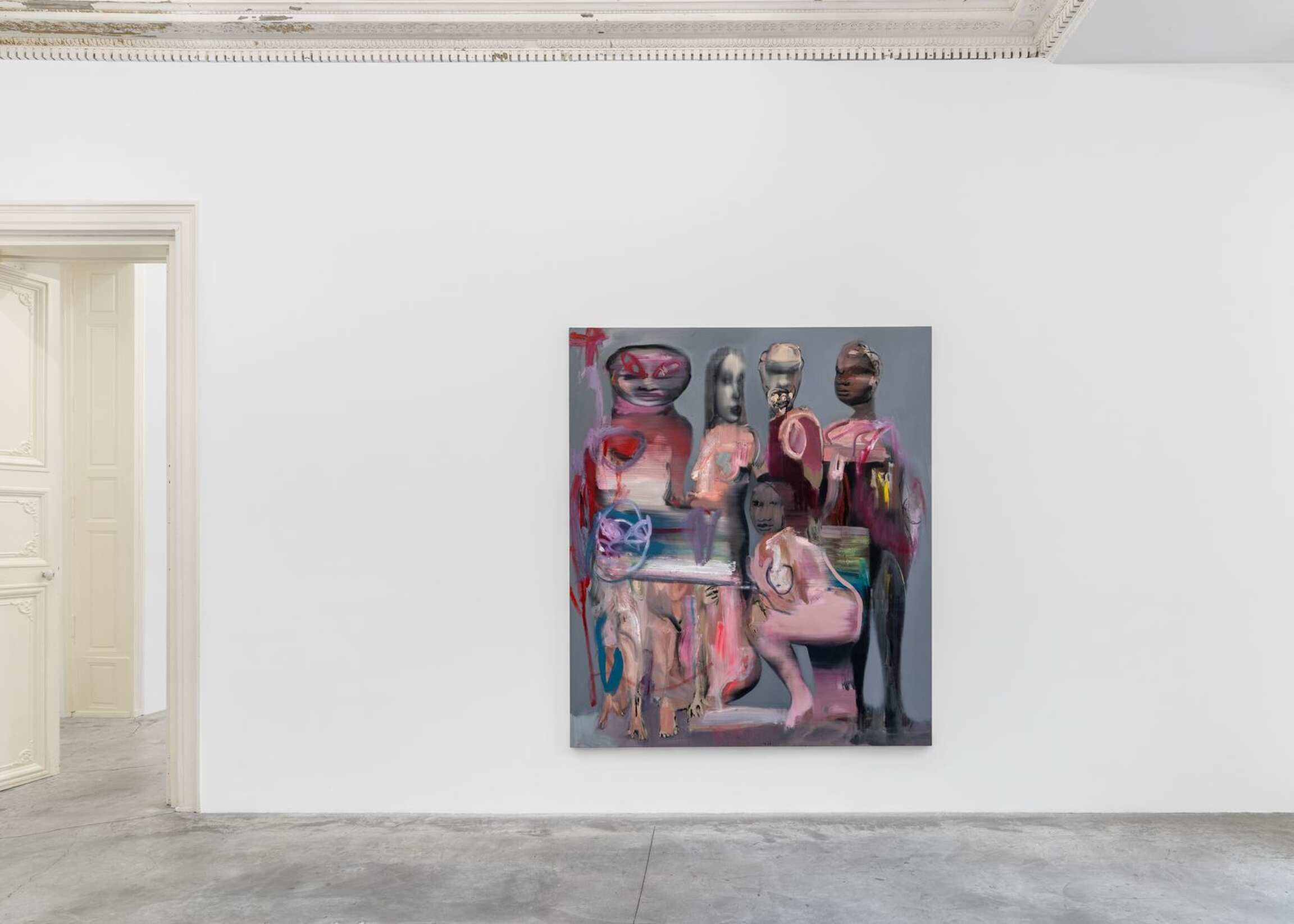 The belly not only affects our psyche but also is the origin of childbirth, where creation takes place. Rouy is eager to reaffirm this, loud and clear: in his mind, to paint is to give birth. The artwork thus takes on the same eminently intimate character as the body itself. The painting is revealed like an experience told, a state of health and consciousness in a particular moment. The human figure naturally imposed itself as the key subject of the artist’s visual research. Rouy fashions his bodies like golems, both incomplete and undead. His creatures do not fall under the classic category of the portrait: they enter into dissonance and complement each other, both fluid and flayed. His bodies venture into the field of energy and vibration, sometimes verging on the ghostly, and become pretexts to develop mental landscapes, and collections of ideas.