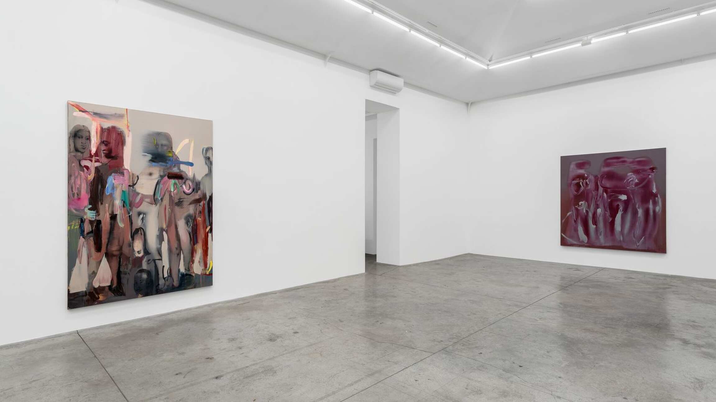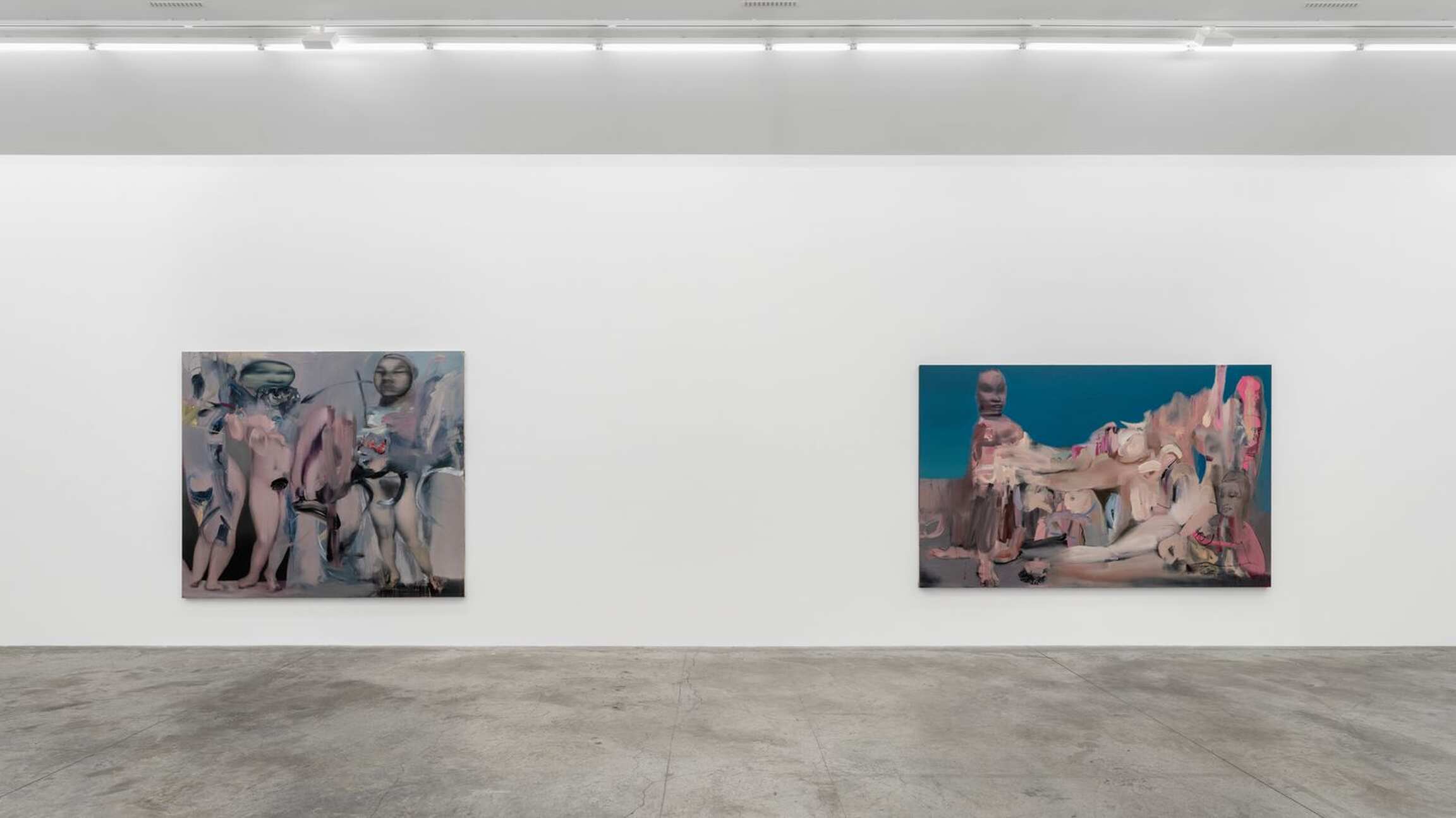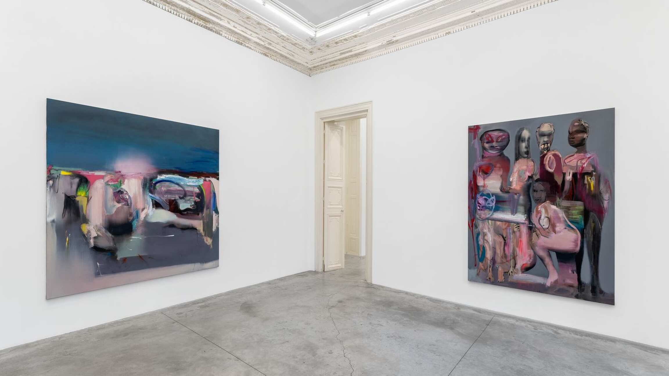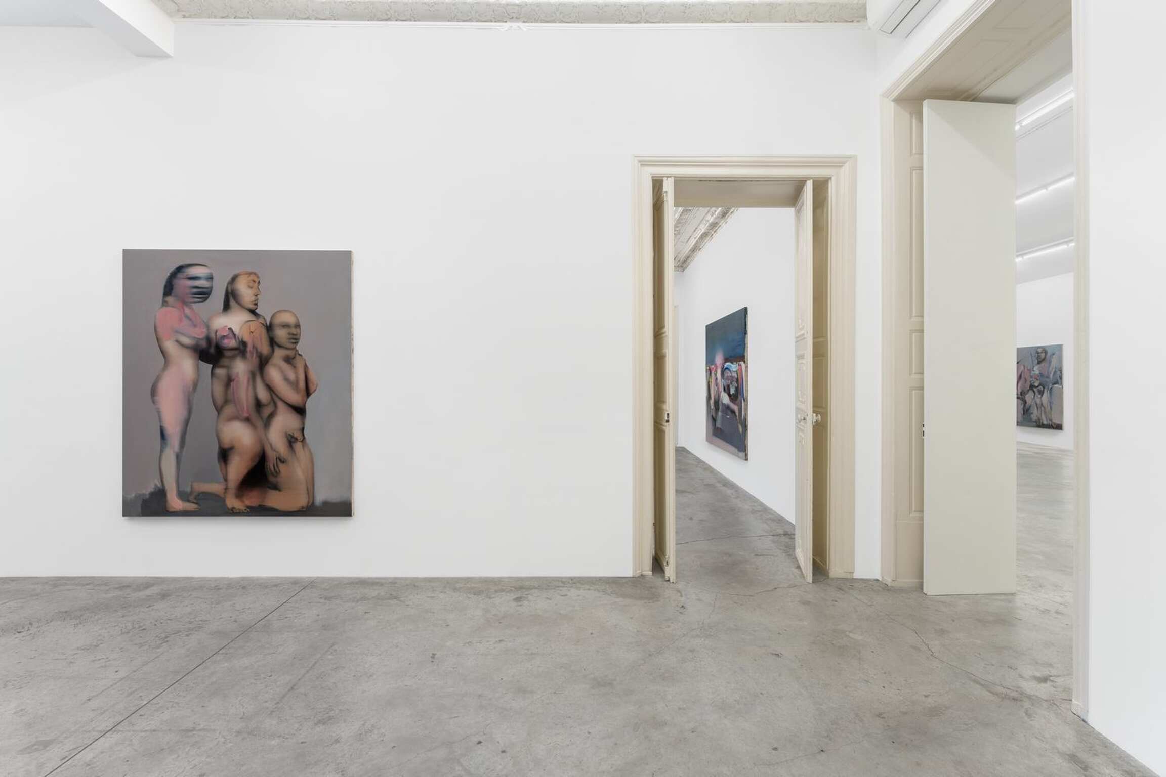 The belly not only affects our psyche but also is the origin of childbirth, where creation takes place. Rouy is eager to reaffirm this, loud and clear: in his mind, to paint is to give birth. The artwork thus takes on the same eminently intimate character as the body itself. The painting is revealed like an experience told, a state of health and consciousness in a particular moment. The human figure naturally imposed itself as the key subject of the artist’s visual research. Rouy fashions his bodies like golems, both incomplete and undead. His creatures do not fall under the classic category of the portrait: they enter into dissonance and complement each other, both fluid and flayed. His bodies venture into the field of energy and vibration, sometimes verging on the ghostly, and become pretexts to develop mental landscapes, and collections of ideas.