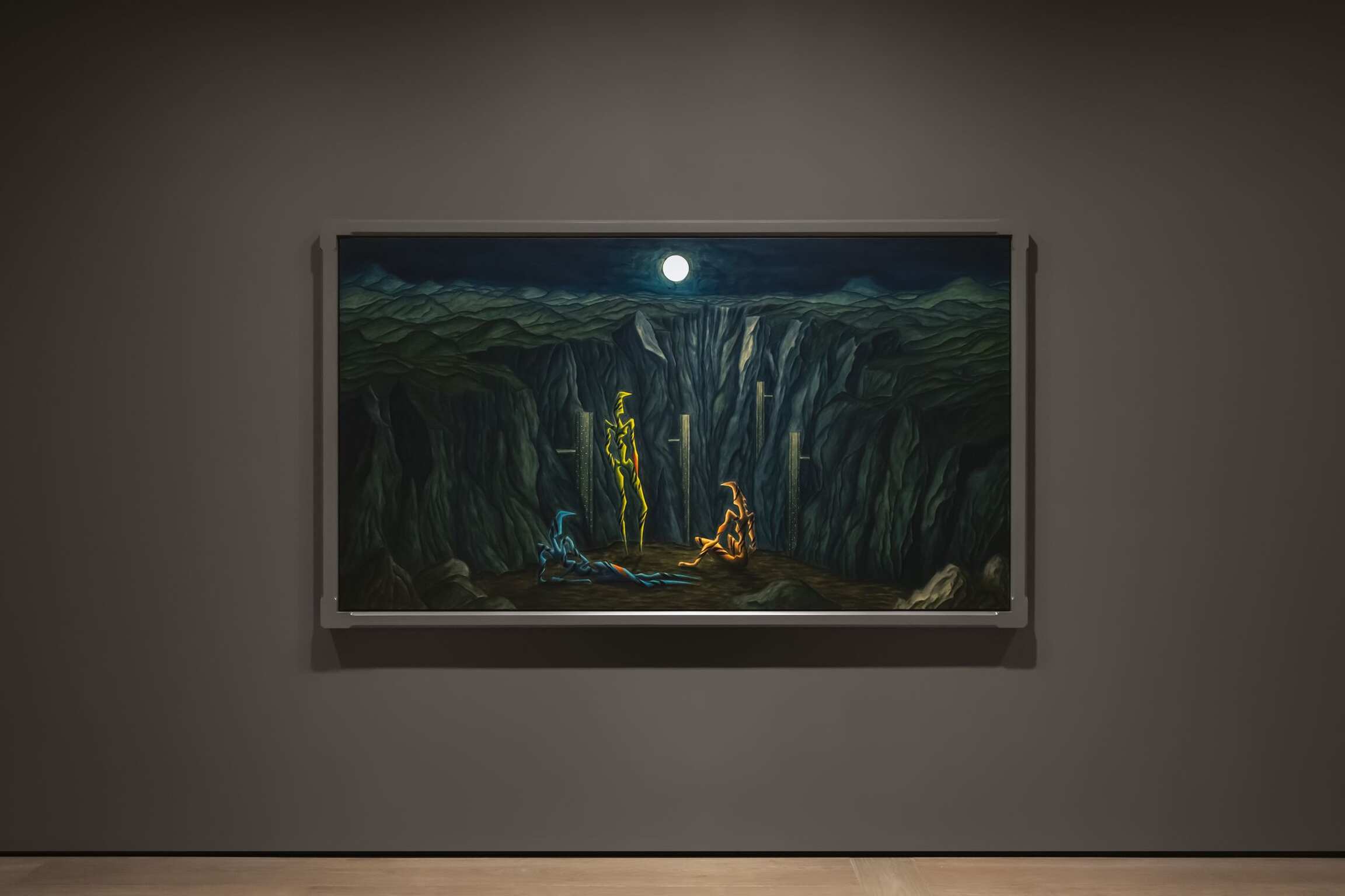 In his new show titled RAVINE 23, the Chilean artist Alejandro Cárdenas takes us on a journey where he critically expands on his signature subject matter: The avoidance of overdetermination on the basis of a single meaning, movement, or style. In his delicate crafting of apparently intimate scenes inhabited by humanoid beings, Cárdenas presents us with a new body of work that is eerily familiar as well as visually provocative. As in previous projects, Cárdenas thinks through possibilities of working with space as a symbol, and, in this specific case, of the ravine as the background of a narrative on resilience and creativity.