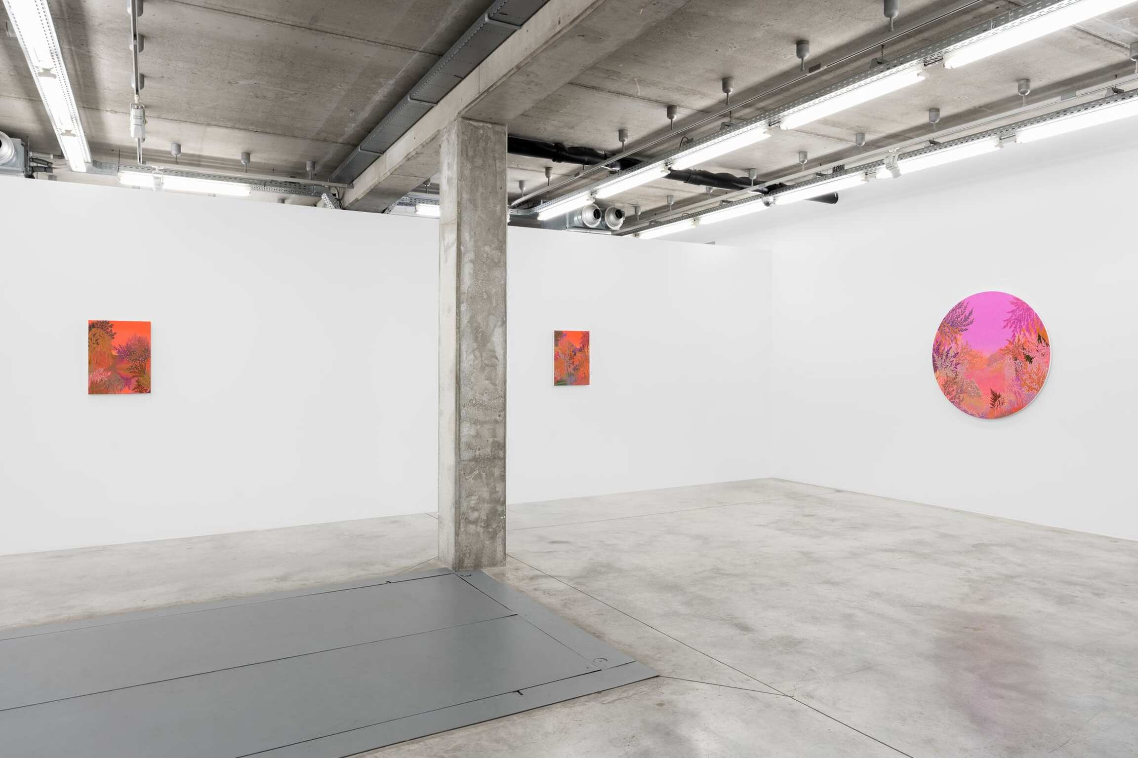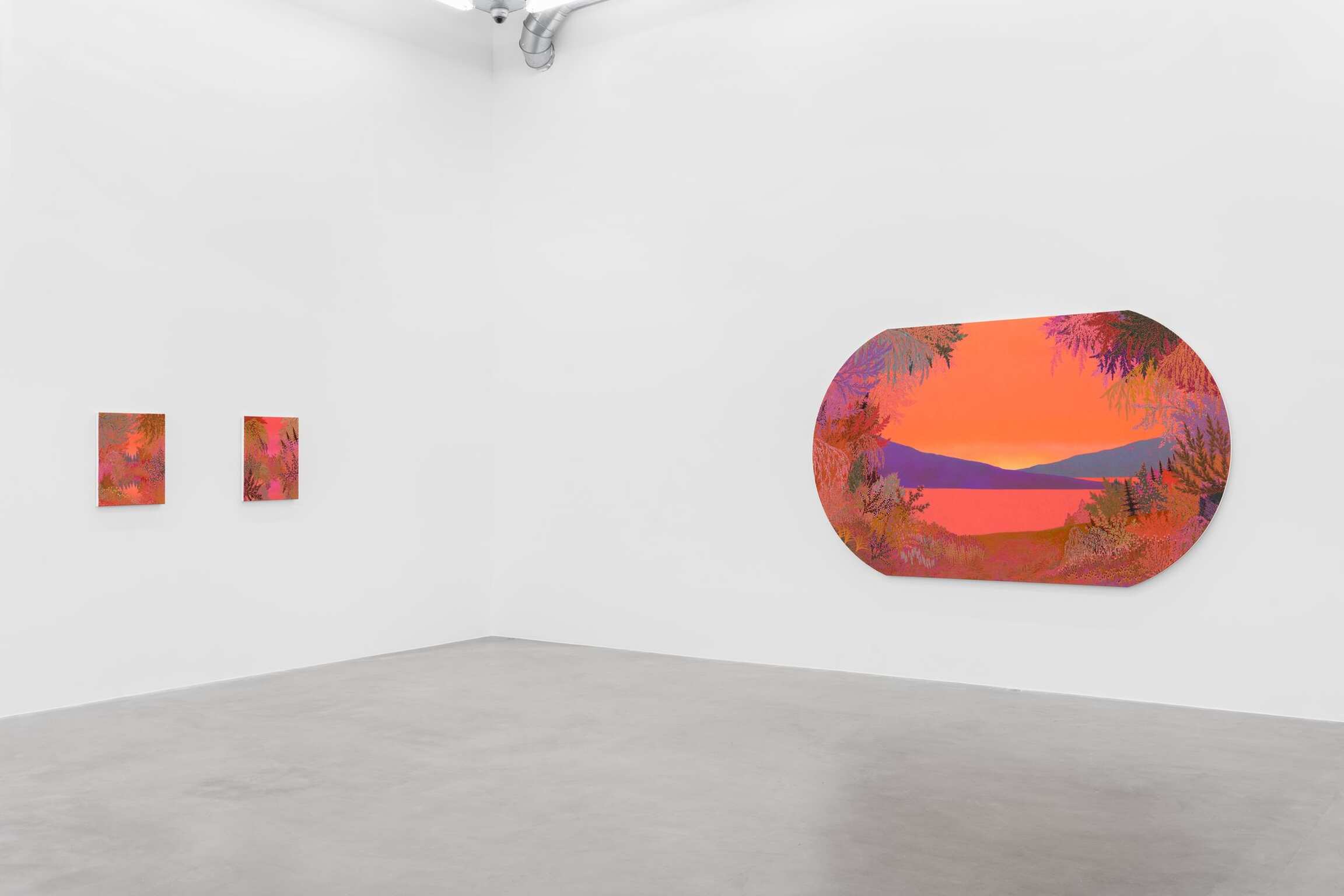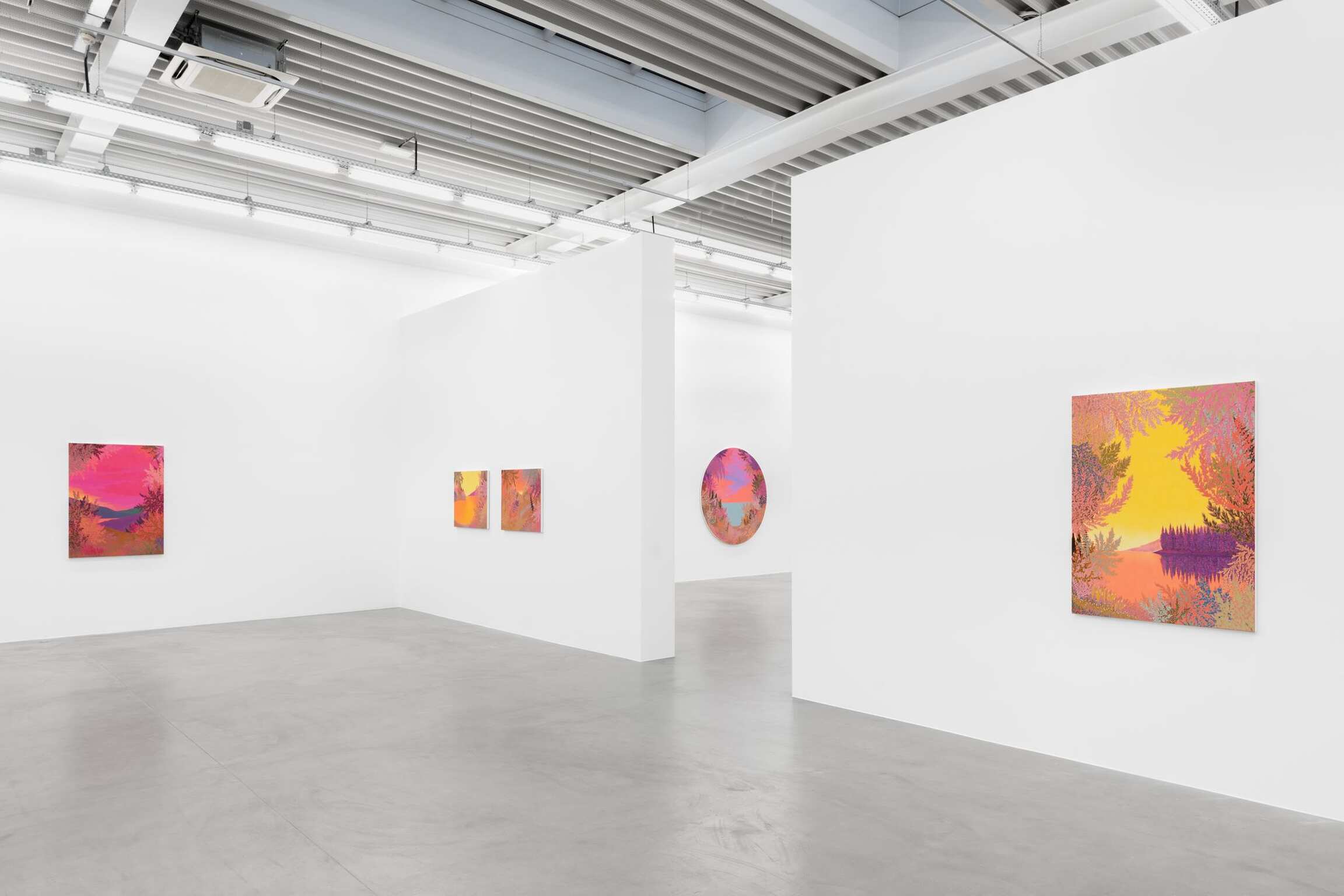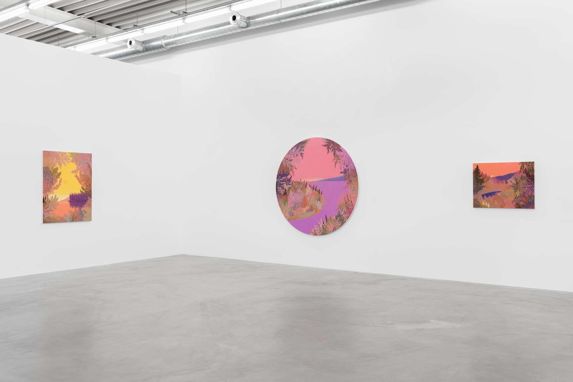 Dans ces nouvelles peintures – comme dans l’essentiel de sa production des trois dernières années - McAllister fait l’impasse sur les guillemets compositionnels de ses travaux passés. Chacune invite à une contemplation extatique, quels que soient les dimensions (les plus petites ne mesurent que 30 x 23 cm) ou les formats. McAllister poursuit ici son exploration des tondi, cartouches et toiles formées reproduisant le champ de vision humain pour révéler que le plan rectangulaire convenu d’une image est tout autant - sinon plus - un artifice stylistique qu’un rond ou un ovale.
