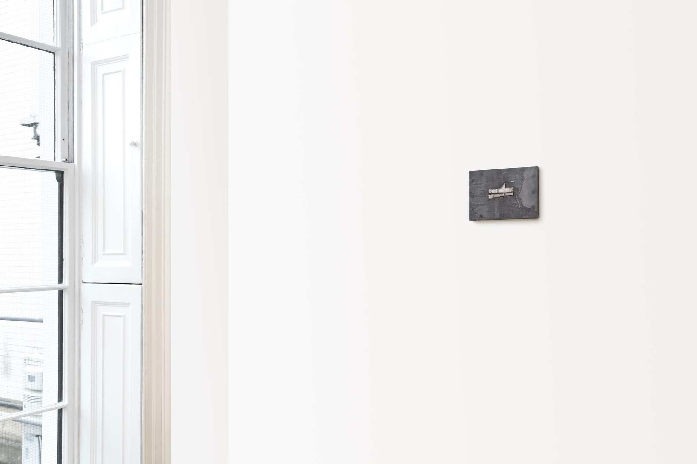 Presence, an ambiguous noun attributable to both humans and objects, could also be the invisible stratum differentiating a painting from an image. Lindman creates frameworks for examining this liminal terrain through a sensitive range of micro-variegations. Transmitting exchanges between light shining forth from alloy, absorbed into painted color or blank primer, these works imagine an encounter with the irreducible.