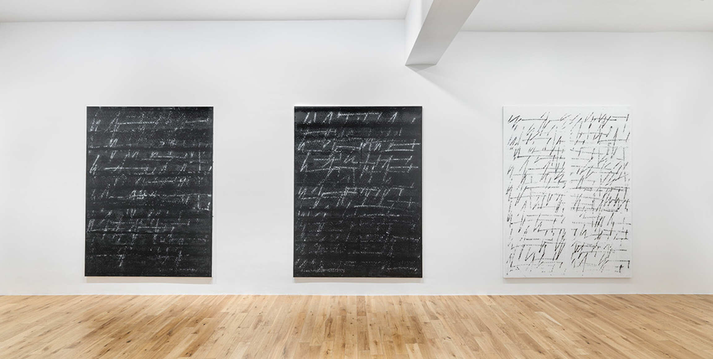 Chris Succo, a German artist, paints with a roughness gleaned from a youth spent on the road, and a softness, like the coo of Neil Young lyrics or the lines of poetry that title his paintings (YOU LOOK LIKE NIRVANA JUST BROKE UP, one quips). Succo is indulgent, even belligerent, in his application of paint, and this attitude—in which process, and a passion for the basic tactility of painting—trumps all other concerns. Channeling the personal evolution that Christopher Wool brought to painting, Succo’s newest canvases are an extension of his previous series, riffing off his signature “White Paintings,” in which spray-painted pigment shines through gestural layers of thick, white oil paint. This time, delicate markings recalling handwriting, heartbeats, or meandering scribbles à la Twombly appear on flat, further reduced canvases. There’s less gesture, and no brushstrokes, but every bit of the attitude of an artist who, during talk of oil paint, serigraphy, and his first solo show with Almine Rech Gallery in April, has a telltale longing for long hours in his studio—with no signs of slowing down.
