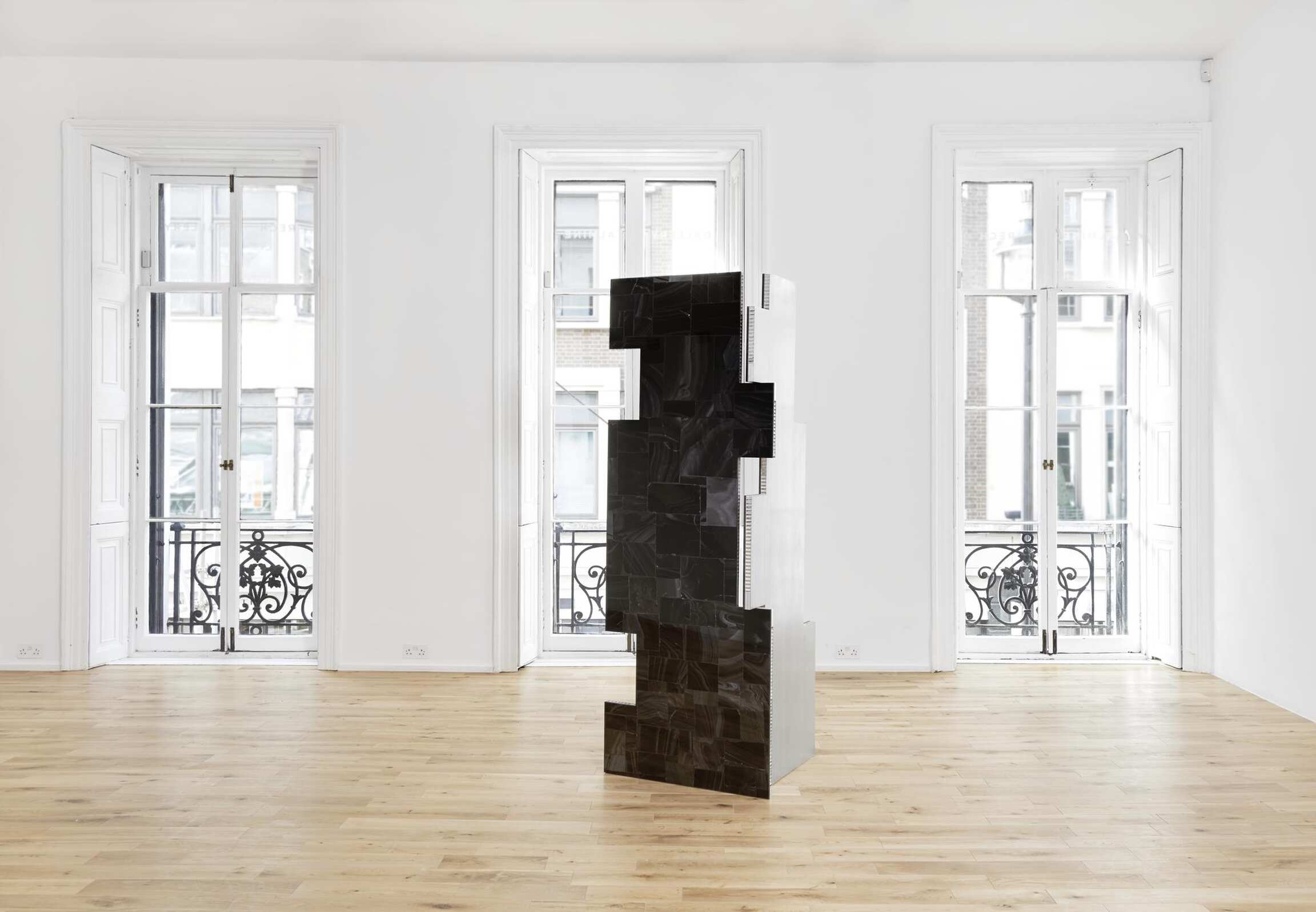 Les schémas dégradés, qui ont sa préférence, sont réalisés uniquement à partir de deux tubes de peinture, qui pourtant produisent des variations infinies de gris, des couleurs distinctes qui ne peuvent être différenciées, qui se noient inévitablement dans le lavis expérientiel continu. Les cadres éclatants et prismatiques en titane anodisé qui entourent cette dernière série d’œuvres semblent d’abord compléter ce manque expérientiel, mais ne servent en fait qu’à le souligner. Comme la physique aime à nous le rappeler, la richesse chromatique que nous décelons dans le monde ne correspond qu’à une infime fraction du spectre électromagnétique dans son ensemble, et les couleurs incluses dans cette étroite bande sont ensuite réduites plus encore à celles que nous pouvons nommer. Entre une infinité de couleurs et l’absence de couleur, la plénitude et le vide, ces peintures mettent en avant nos limites sensorielles pour suggérer ce qui les dépasse.