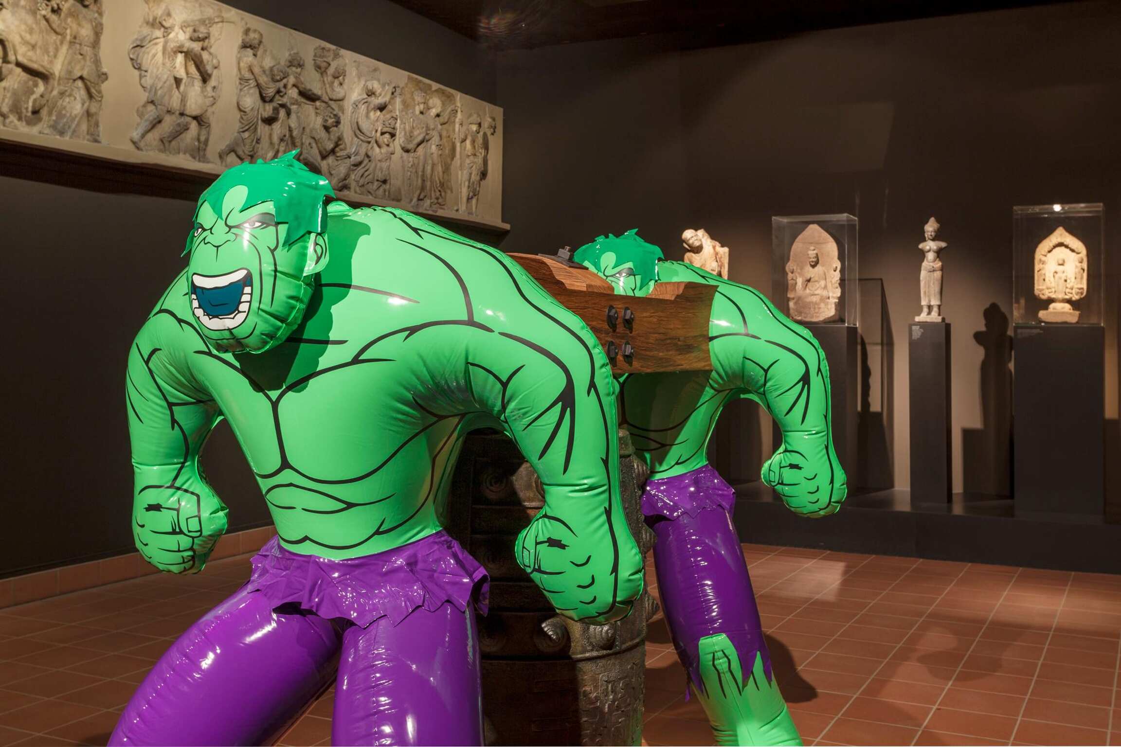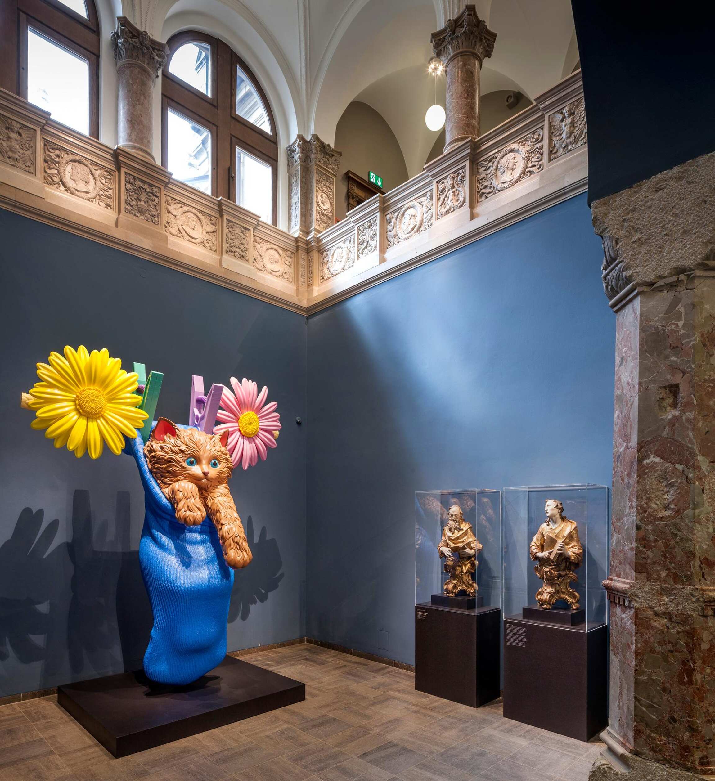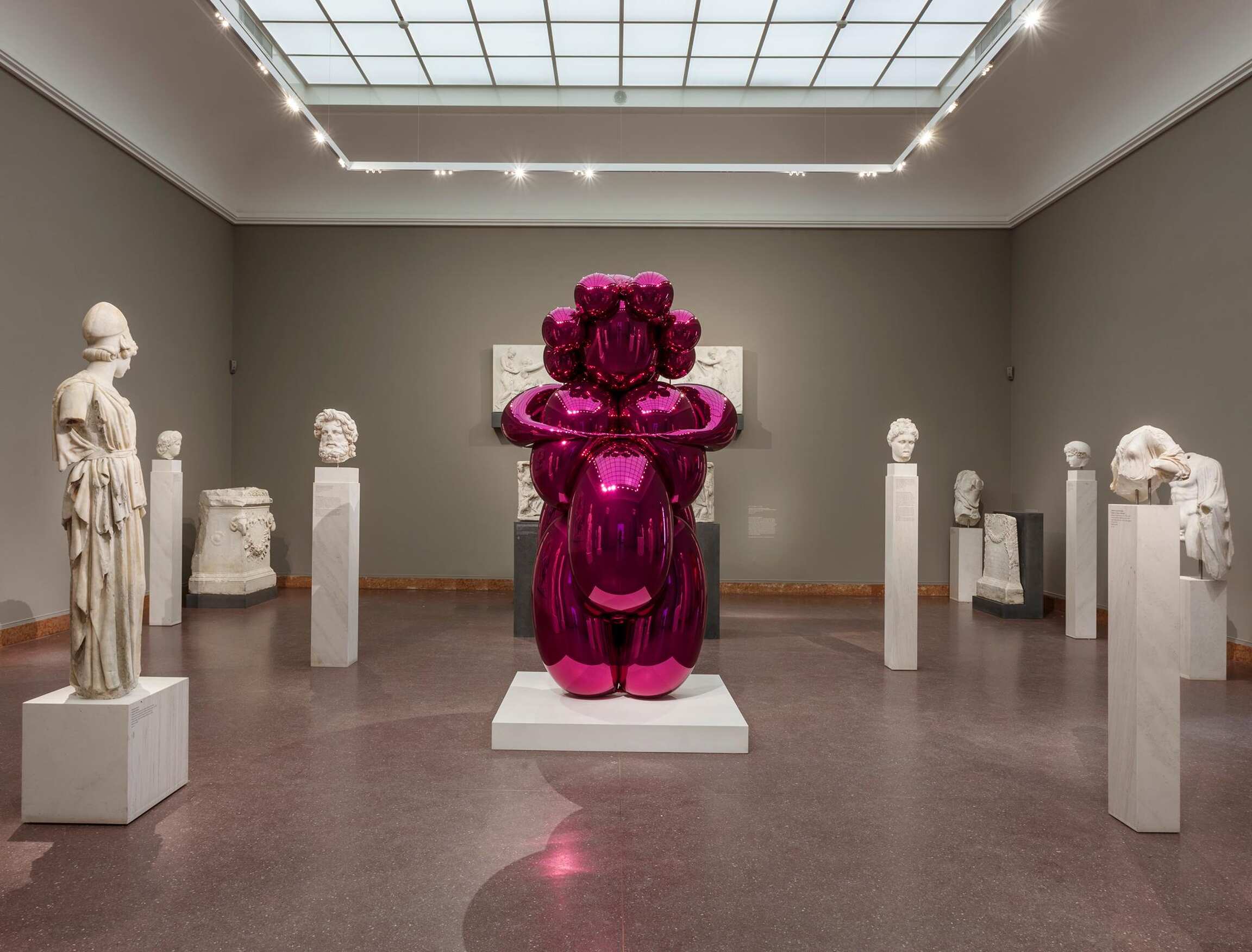 The Schirn Kunsthalle and the Liebieghaus Skulpturensammlung devoted themselves to the work of the U.S. American artist Jeff Koons (born in 1955), who has played a pioneering role in the contemporary art world since the 1980s. The two concurrent shows deliberately separated the sculptural and painterly aspects of his oeuvre and presented each in a context of its own. Encompassing forty-five paintings, the presentation entitled "Jeff Koons. The Painter” at the Schirn focused on the artist’s structural development as a painter. With motifs drawn from a diverse range of high and pop-cultural sources, his monumental painted works combine hyper-realistic and gestural elements to form complexes as compact in imagery as they were in content. In the show "Jeff Koons. The Sculptor” at the Liebieghaus, on the other hand, forty-four world-famous as well as entirely new sculptures by Jeff Koons entered into dialogues with the historical building and a sculpture collection spanning five millennia. Jeff Koons’s Antiquity, a new series in which he explored antique art and its central motif – Eros – debuted in Frankfurt on this occasion.