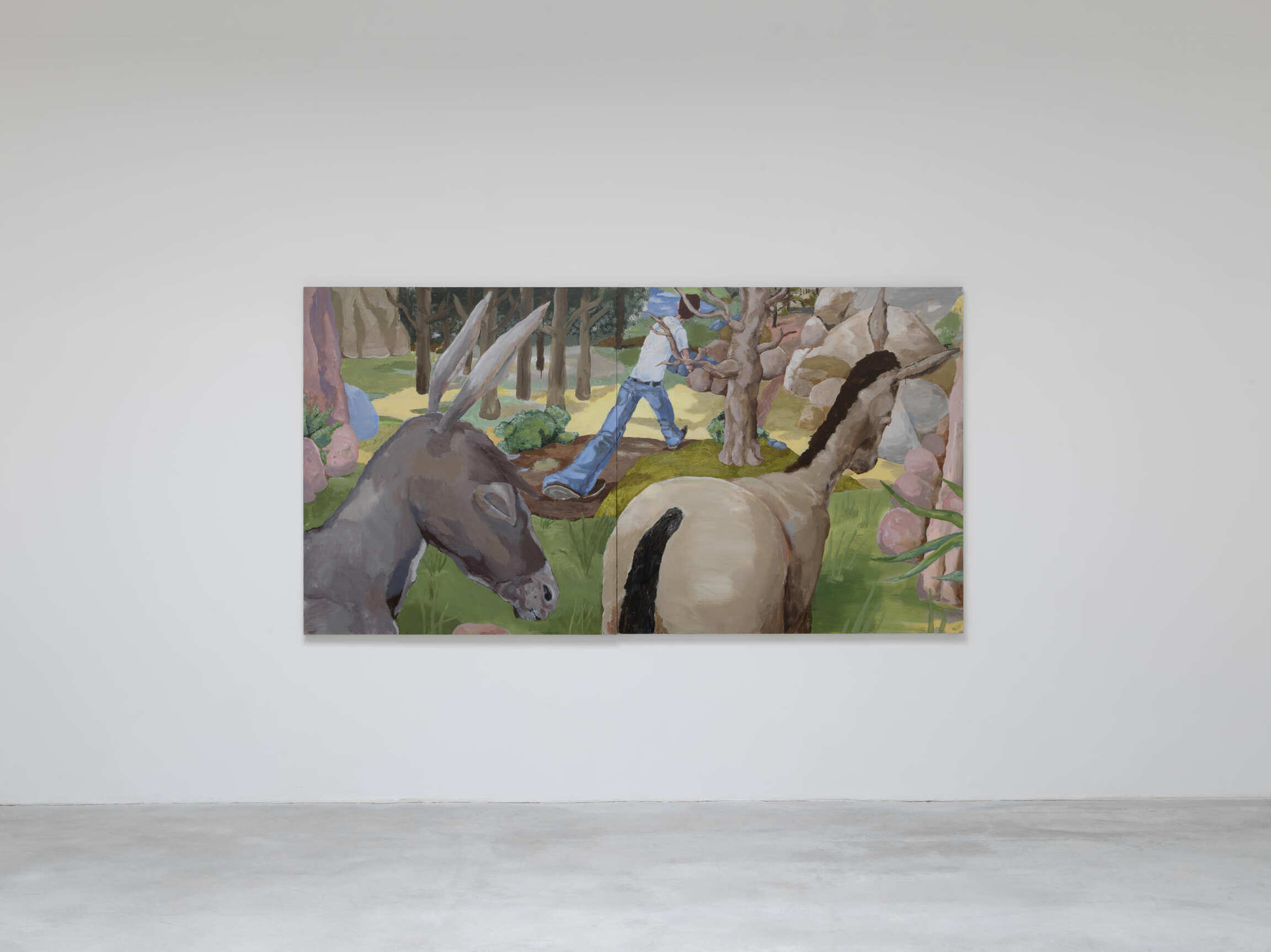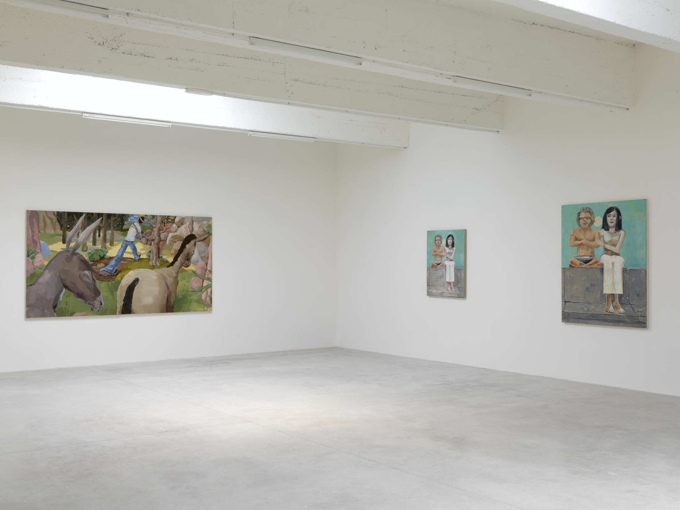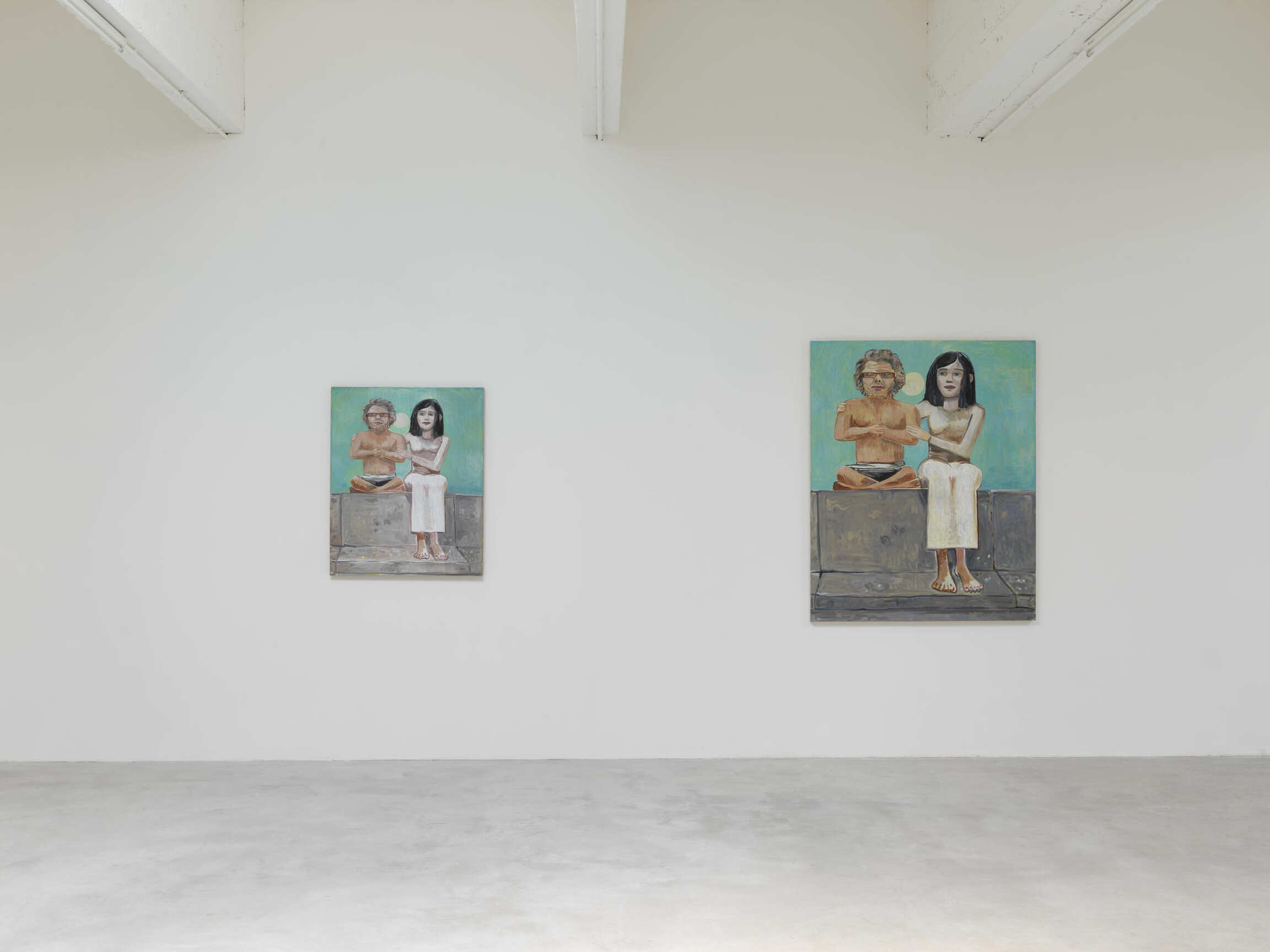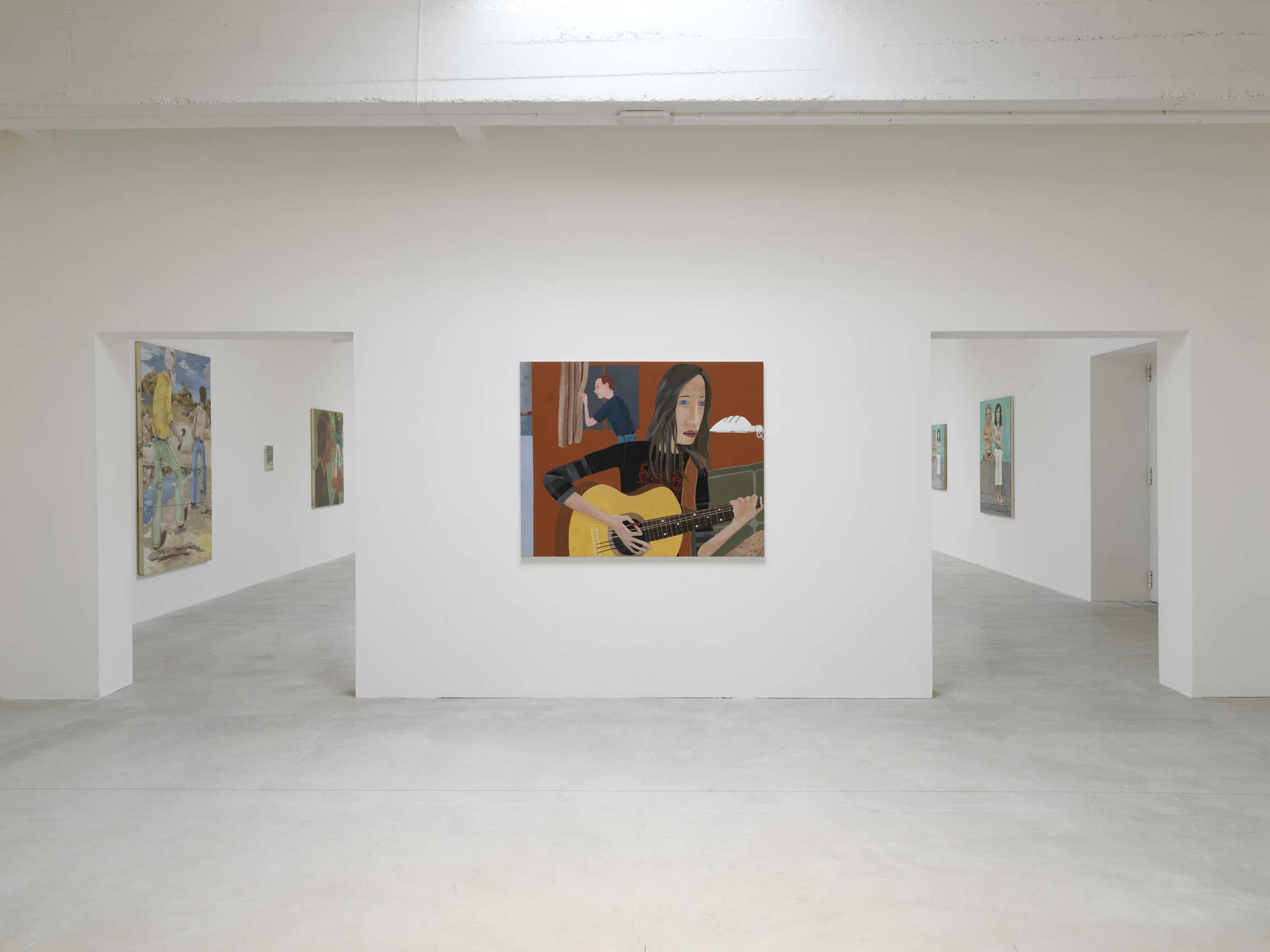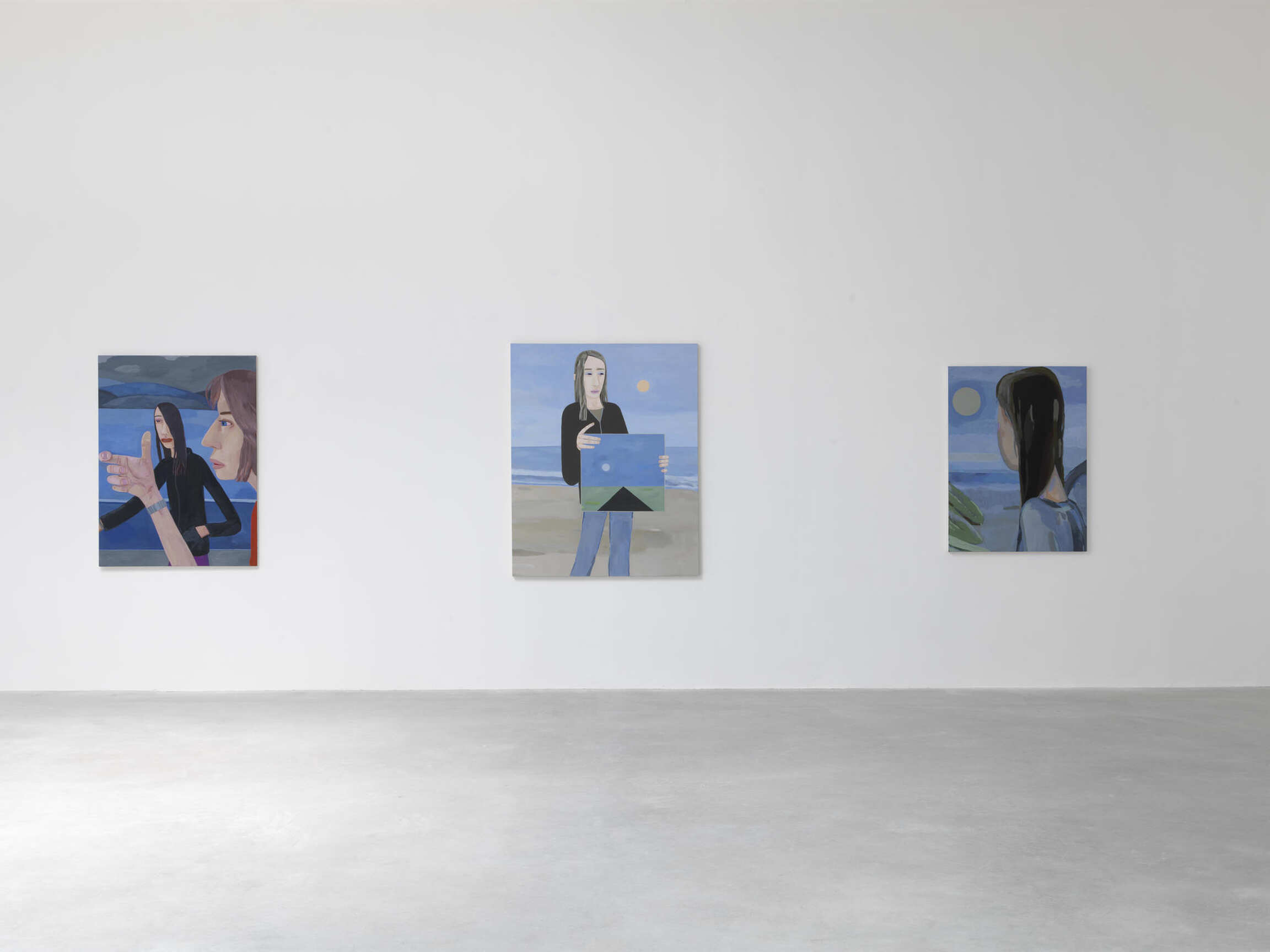 Emotionally distant and elusively cool, Calvin’s characters convey the banality of selfie culture, and, like selfies, they evade any narrative arc. Brian Calvin, a California-raised artist, is occasionally compared to David Hockney, whose colours and subject matter equally evoke the ominously easy life of a sun-bleached suburbia, and to the New Yorker Alex Katz, whose graphic, flat compositions are visual siblings of Calvin’s, but whose paintings tend to suggest backstories and aftermath.