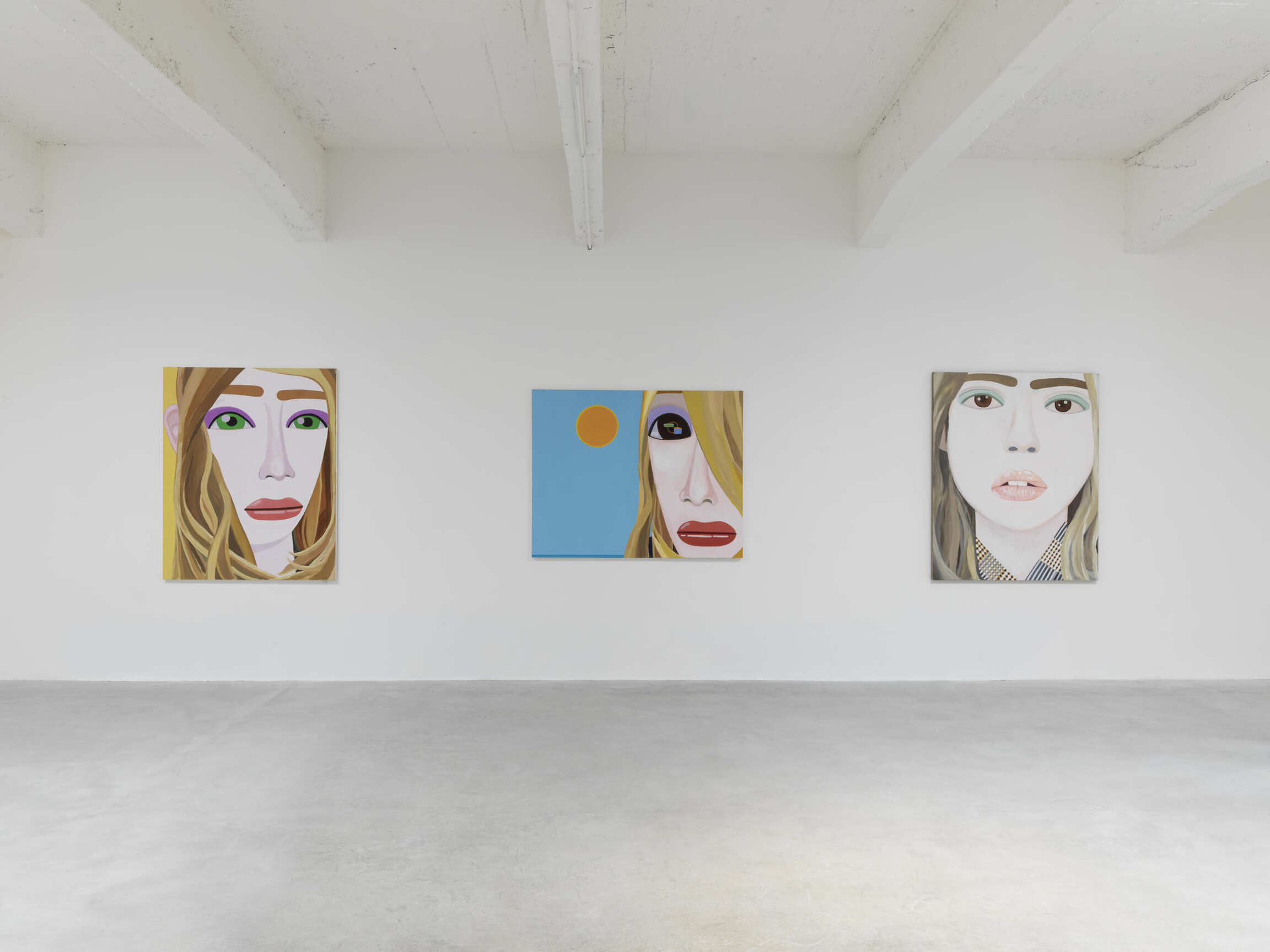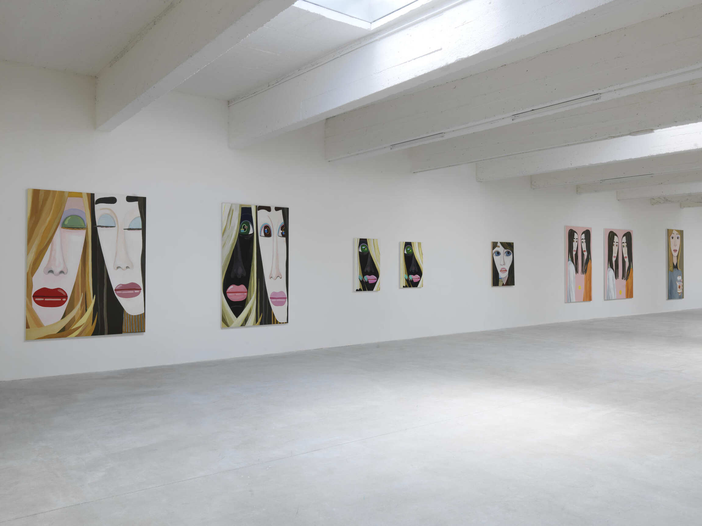 At a moment when social-media fatigue may be finally tempering the ebullient narcissism of practically a decade of “status updates,” Brian Calvin’s new works crystallize the inevitable malaise of an acutely self-aware population. His clever and luminous paintings—rendered in the Day-Glo colours of overexposed photographs—depict hyperexposed pretty young things casually mugging for an unseen observer, their faces flattened (visually and figuratively) with the stylized ennui of Modigliani’s oblong portraits. In some works, he zeroes in even further: the same pair of sensually parted glossed lips reappear. Brain Calvin often tightens the frame to reveal gap teeth and a dormant tongue.