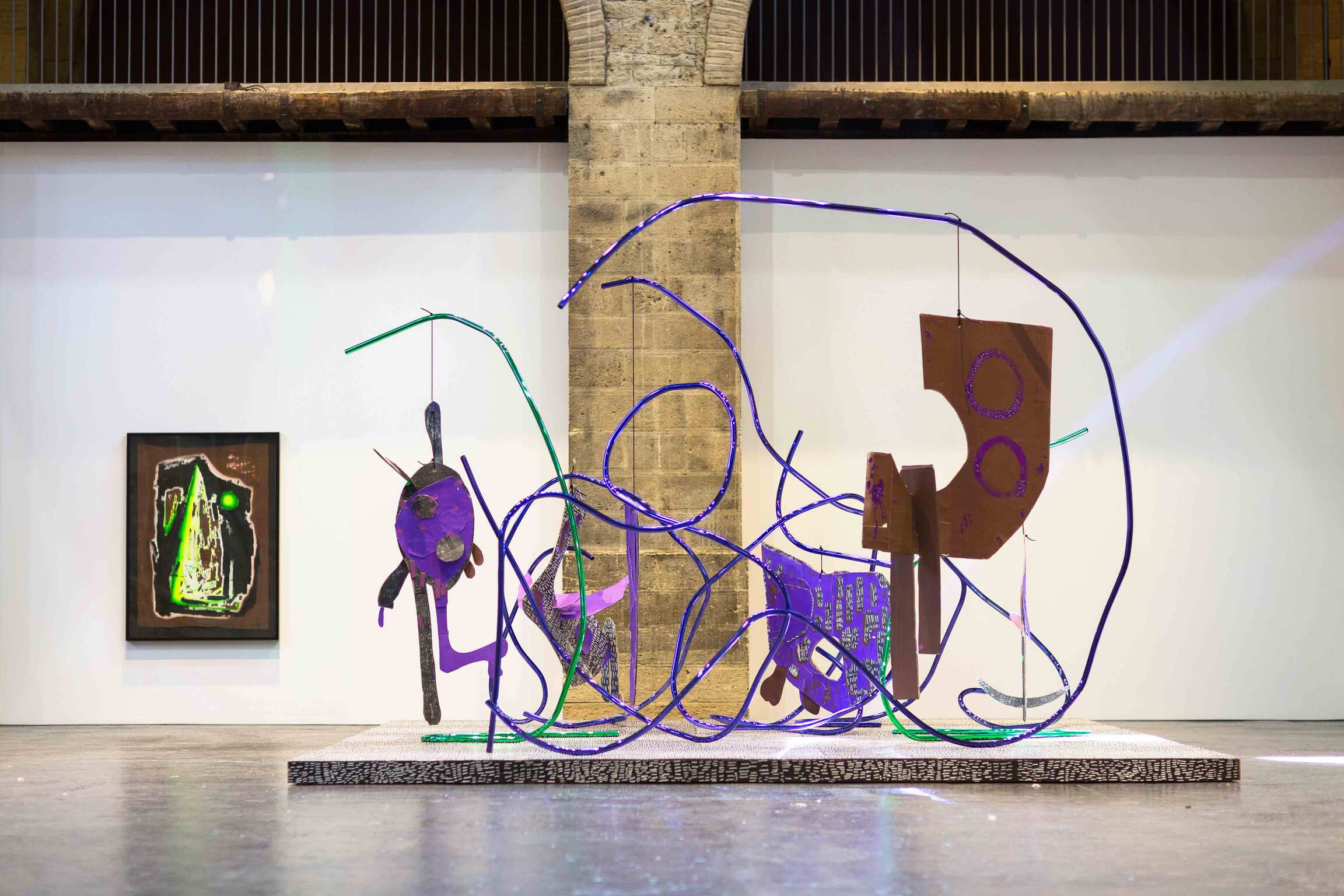 Drawing from the art-historical lineage of cubism, graffiti, cartoons, figurative painting and gestural abstraction, and appropriating subjects from mythology, advertising, print culture and consumerism, Aaron Curry's Bad Brain first survey exhibition at CAPC is an event. On this occasion, the american artist (born 1972 in San Antonio, lives and works in LA) has put together 80 artworks made between 2003 and 2014. They transform the nave of the CAPC into a spectacular "cage" and create a sense of vertigo synchronous to our digitalized world while questioning the Western artistic tradition. Bad Brain is as much about the breakdown of the human condition as it is the absurdities that define the perils of human evolution.