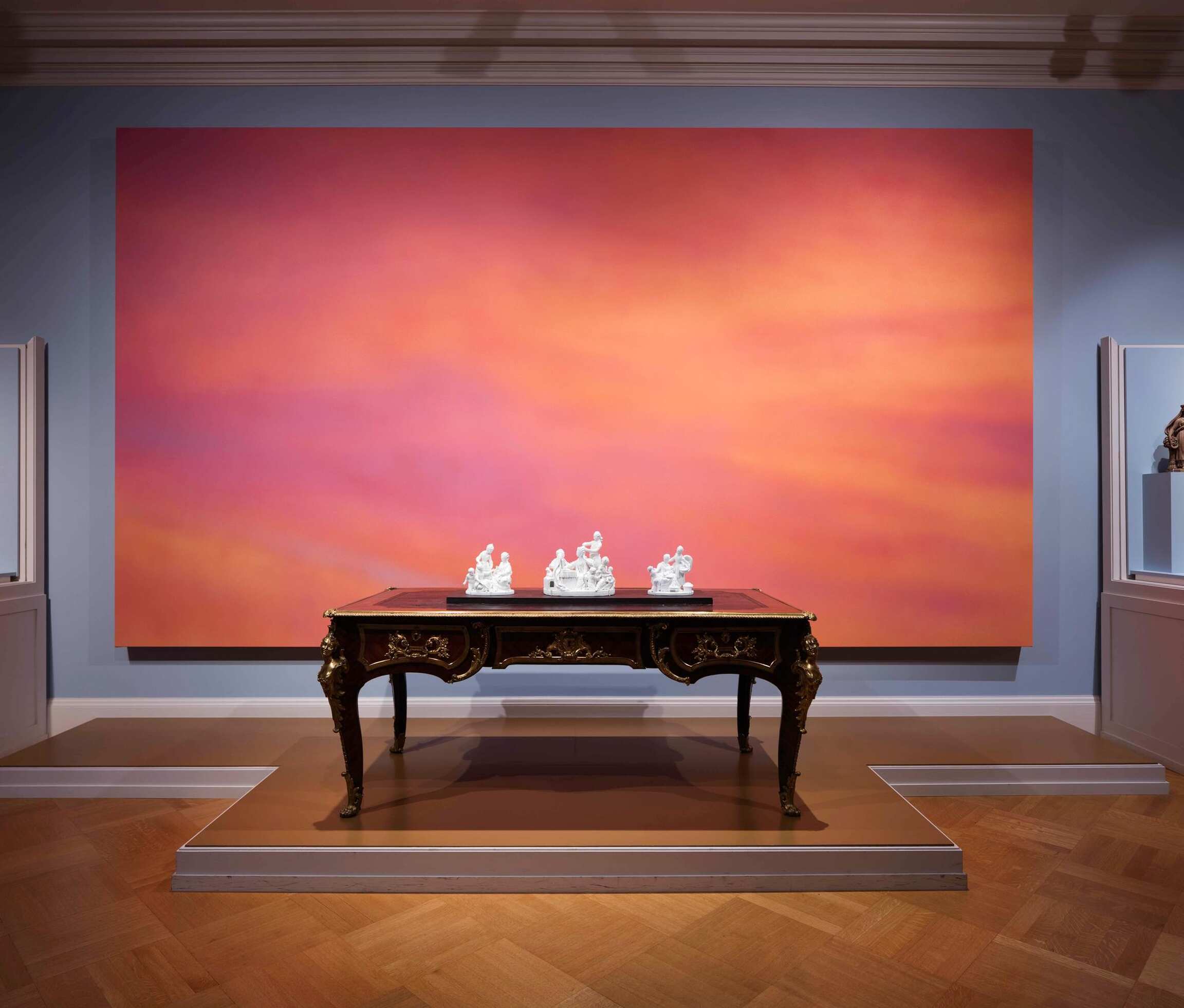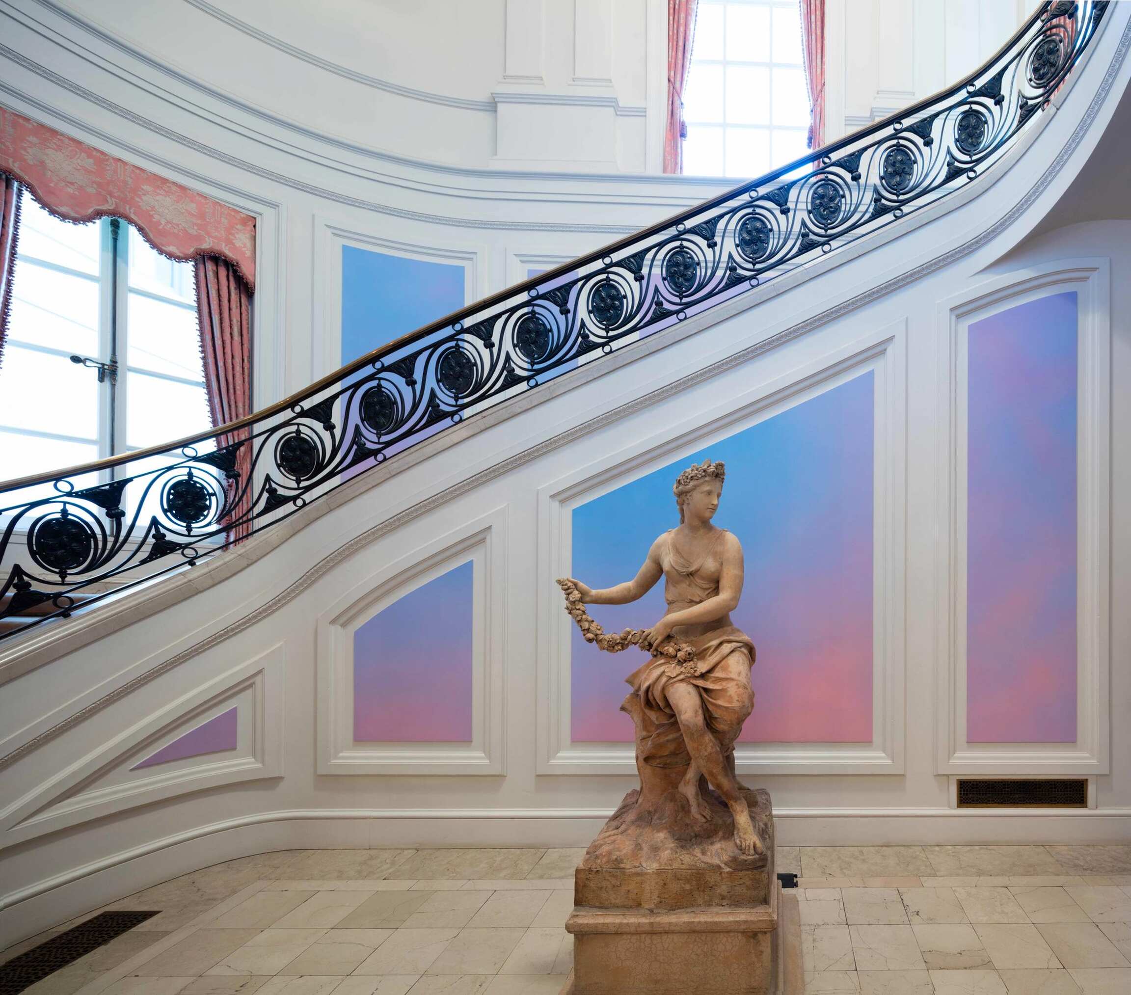 The exhibition Alex Israel at The Huntington, places 16 of Israel's paintings and sculptures, as well as two site-specific murals, among the works in the historic Huntington Art Gallery which once served as the residence of Gilded Age collectors Henry and Arabella Huntington and, since 1928, as the gallery for a celebrated European Art Collection. Intended to spark a dialogue between the new and the old, this intervention of Israel's work within the Gallery creates a discourse on place and identity, two things fundamental to understanding Henry Huntington's own love of Southern California, a region whose identity he helped to forge.