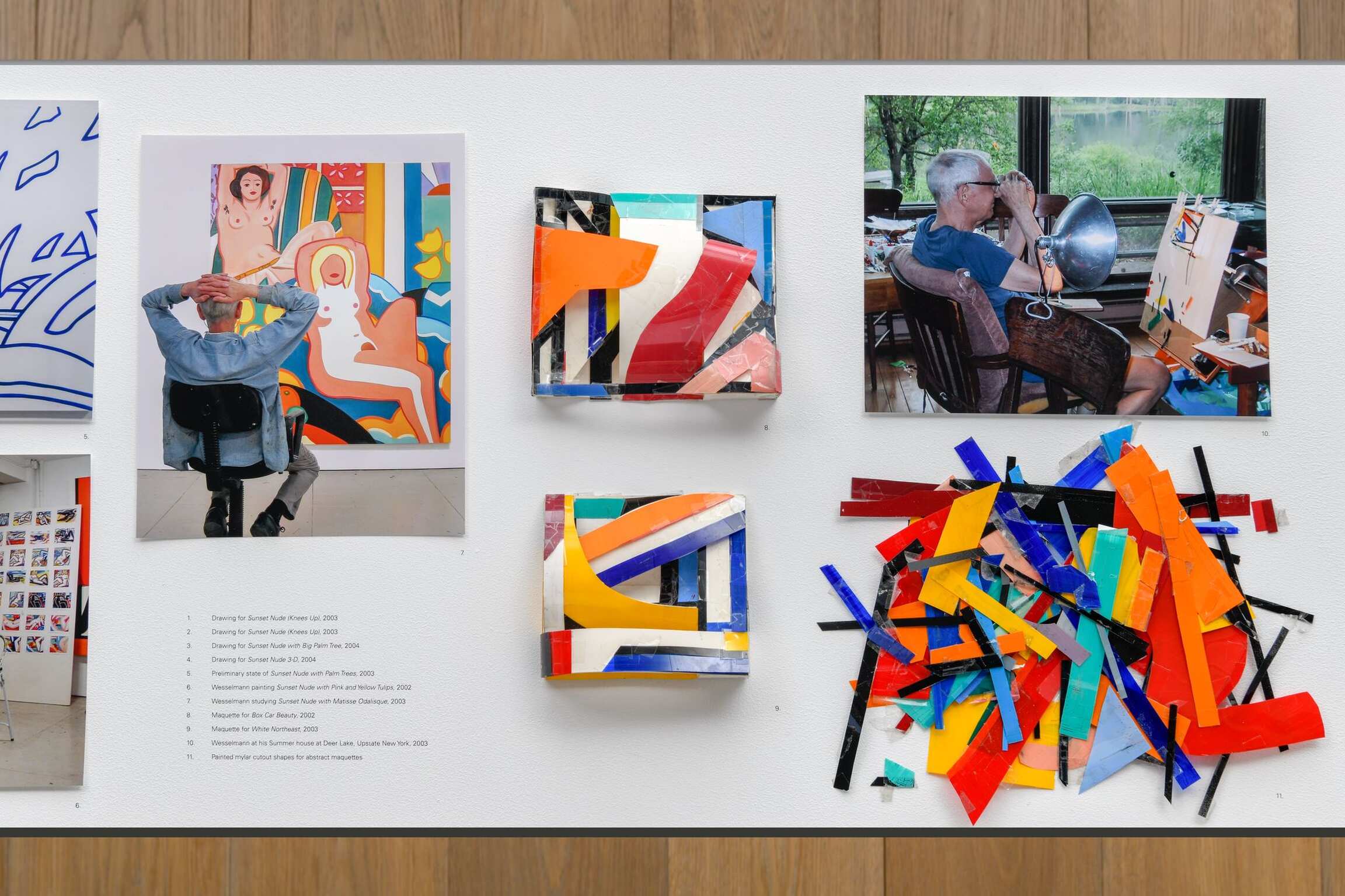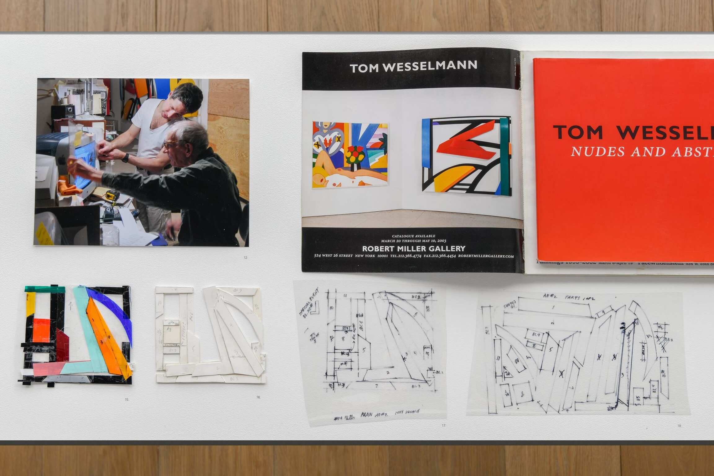 Wesselmann was a meticulous artist who followed a highly prescribed methodology in creating his art. Process was almost as important to him as the finished product. He planned every stage of a work as it proceeded from drawings to maquettes (both formats often in multiple versions) to full-scale paintings. This approach was very much in keeping with his commitment to describing his own intentions as realized in Exhibition Detail. More than any other, this final assemblage—publicly unveiled here—is a physical summation of the parallel course Wesselmann’s artistic vocabulary had traversed in his last years—the abstract paintings and Sunset Nudes.