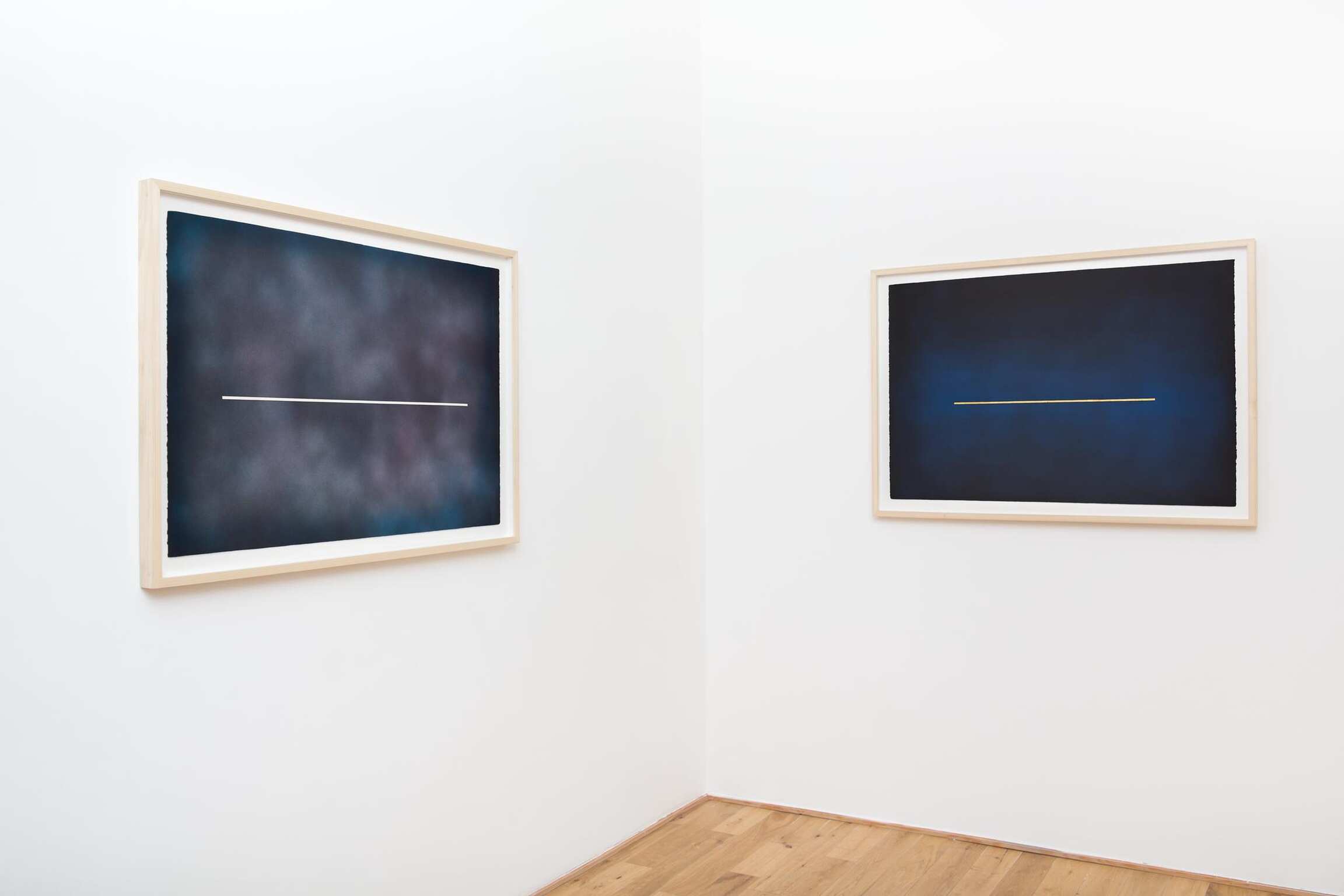 Also on view are examples of Valentine’s Skyline watercolor paintings on thick paper from the 1980s to the 1990s. Here, several works composed of painted backgrounds are reminiscent of clouds, and horizons. The background harks back to ideas of space, light and transparency essential to his work. These never shown watercolors echo the sculptures with their structured ethereality: the atmosphere created is contained within geometrical forms and lines.