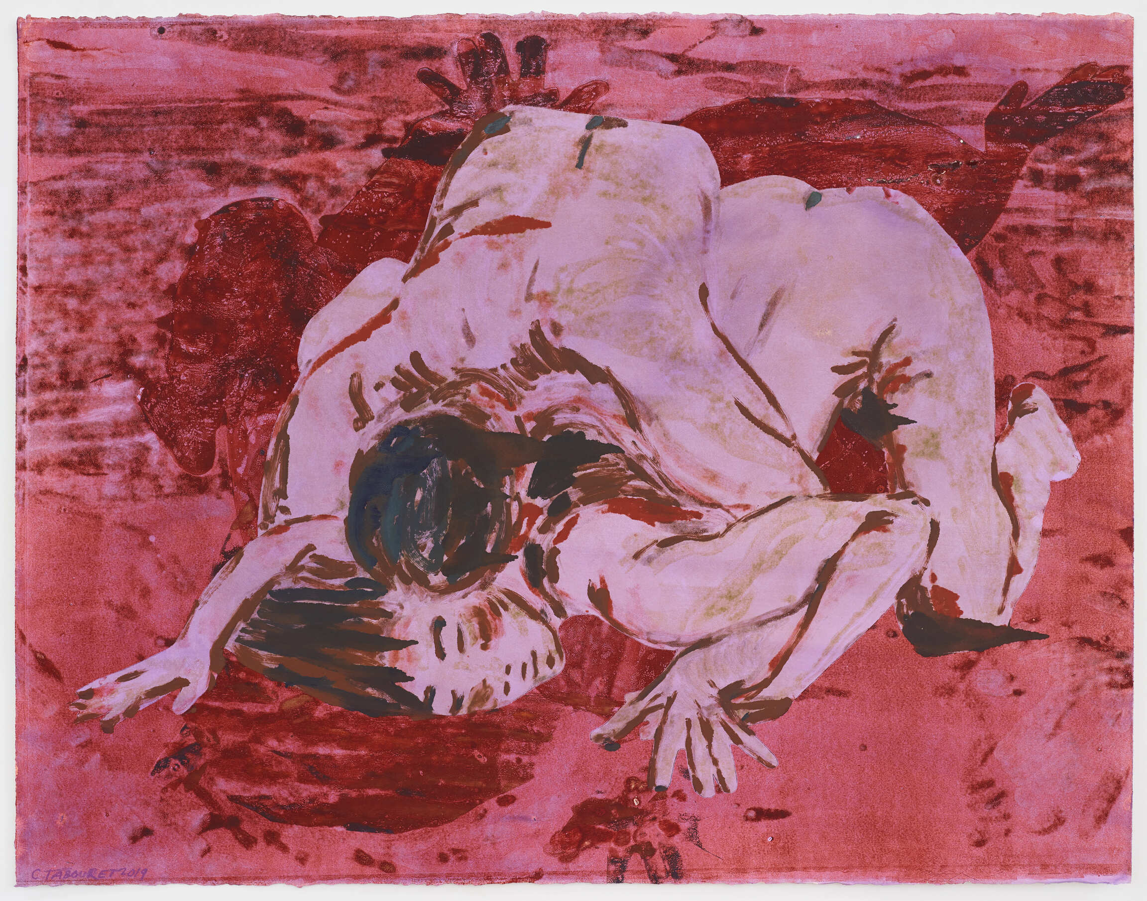 Based in Los Angeles for the past several years, Claire Tabouret has continued developing a figurative body of work since graduating from Les Beaux-Arts de Paris in 2006. In her paintings, drawings and sculptures, her main subject is the human body. Although she was first spotted for her series Maison inondée (“Flooded House”) where she was interested in aquatic and nocturnal worlds, then with Migrants, where solitary men drifted on makeshift rafts, Claire Tabouret eventually devoted her art to group and individual portraits.