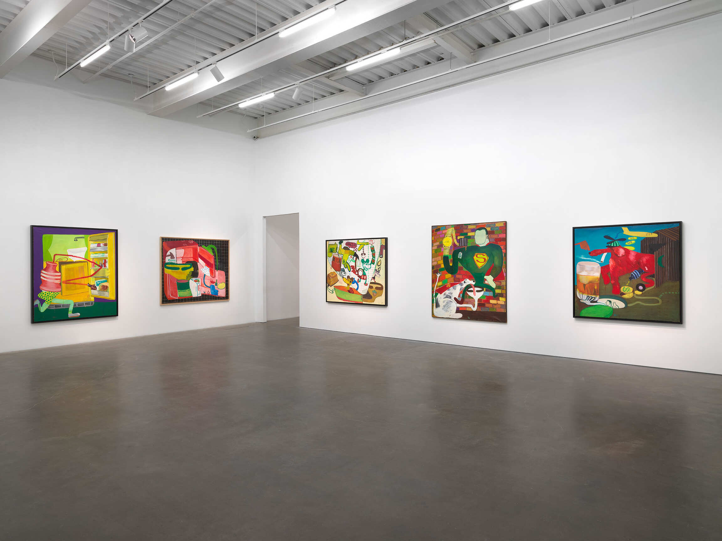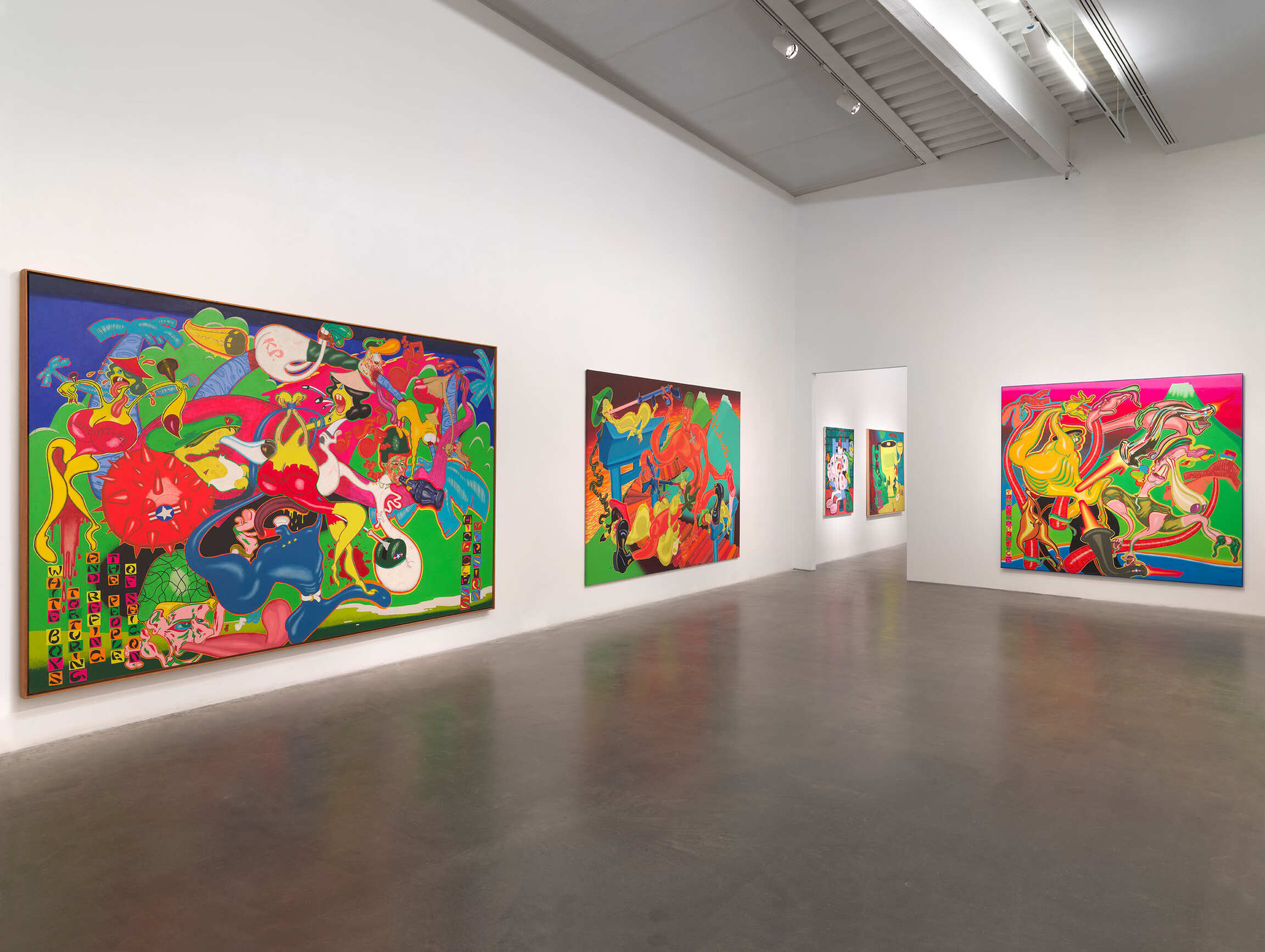 Beginning in the early 1960s, Peter Saul began to incorporate imagery borrowed from a range of popcultural sources into his exuberant, brightly colored paintings, adopting a style that has proven to be far ahead of its time. His work developed independently from concurrent art historical movements like Pop art, with which it shares some superficially similar concerns. Instead of the cool detachment of Andy Warhol and Roy Lichtenstein, however, Saul crafted his own unique blend of Surrealism, history painting, vernacular illustration, and the real-life shock and horror of current events. This madcap formula has allowed the artist to critique art historical pretensions while addressing the outsized characters and realities of his day. Long considered outside the narrative of twentieth-century art, Peter Saul’s work has gained greater appreciation as younger artists register his influence in work across mediums.