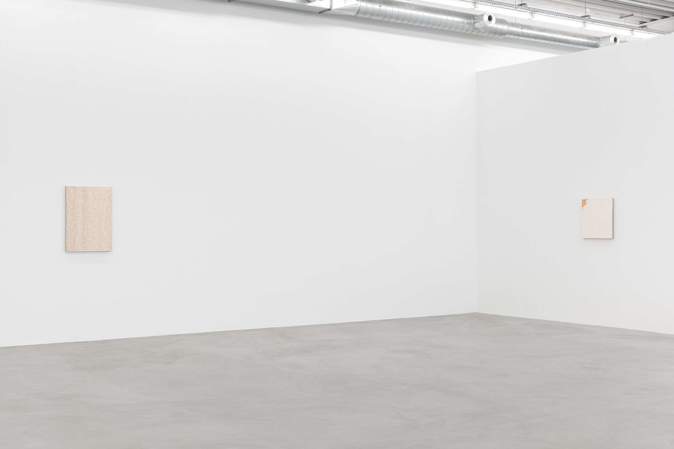 The show begins with a fake-ceiling installation (his first ever installation of this variety) made from multi-colored vinyl EPs by the Munich-based band Paar—specifically, the album 'Hone', which was the very first release from Grzegorzki Records, the record label that Hildebrandt launched with the artist Alicja Kwade in 2018. Moving into the central exhibition space, Hildebrandt has installed white ingrain wallpaper (a textured wallpaper found in many Berlin flats), as well as an old light switch from a past apartment. Titled after a song by Tocotronic, ‘Die Dinge um mich ergeben ein Muster’ (The Things around me create a Pattern, 2018) situates the viewer in a sort of archetypal dream home, like a Proustian reverie triggered by some sensory association.