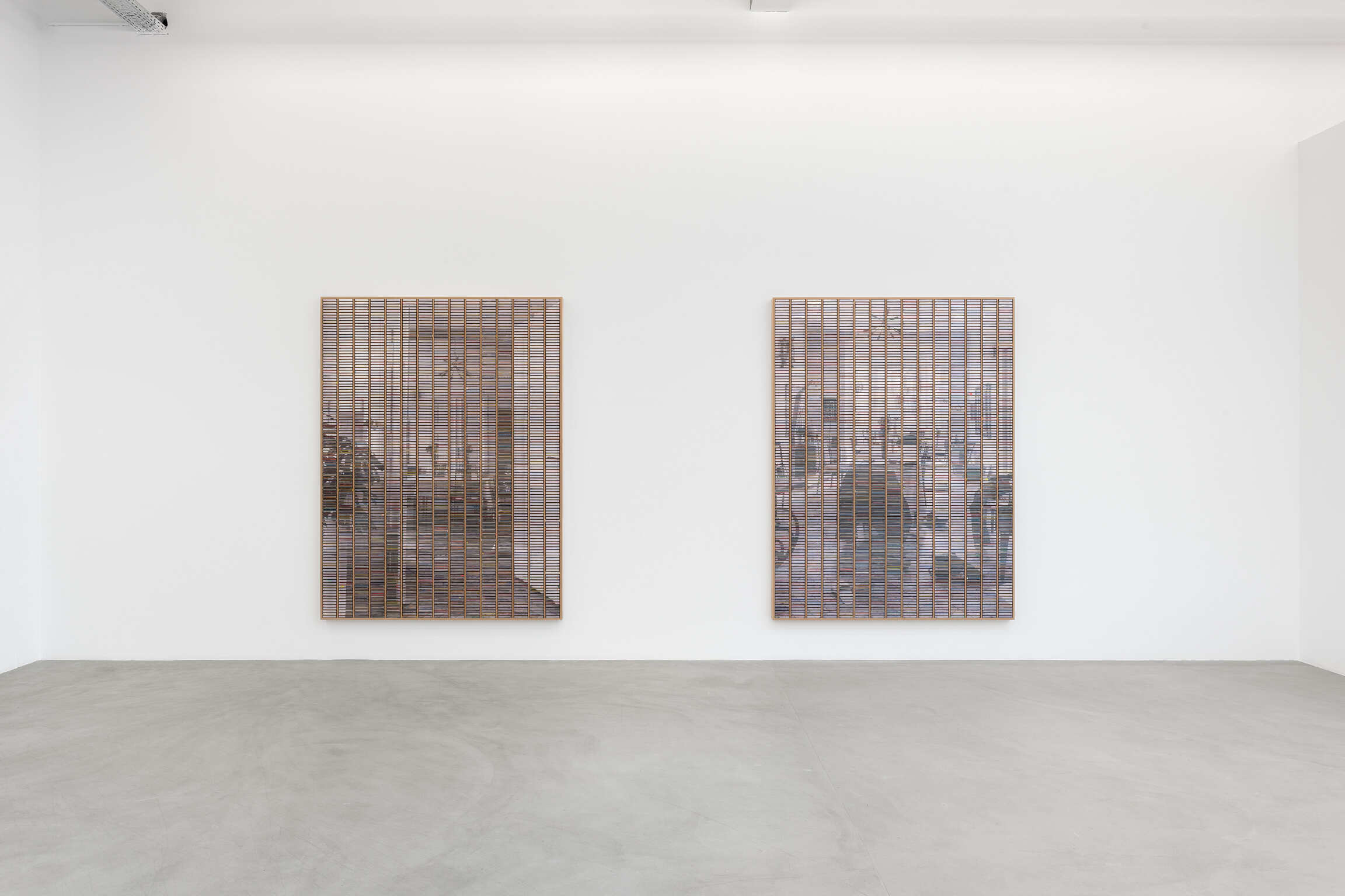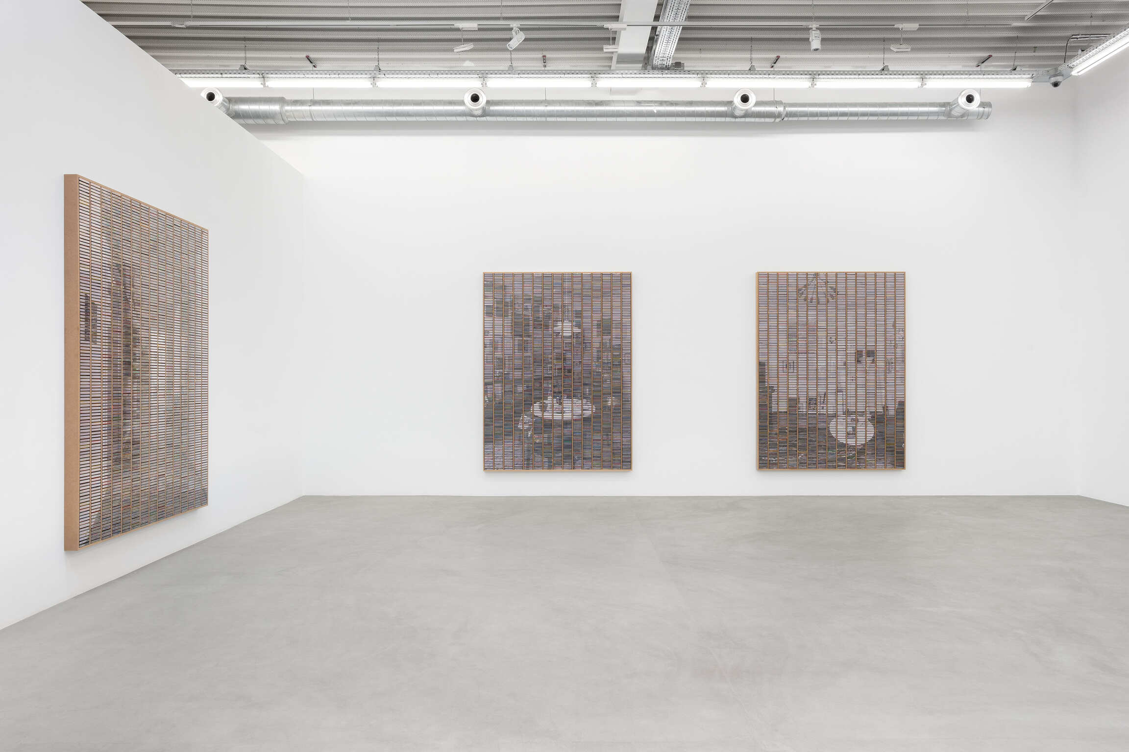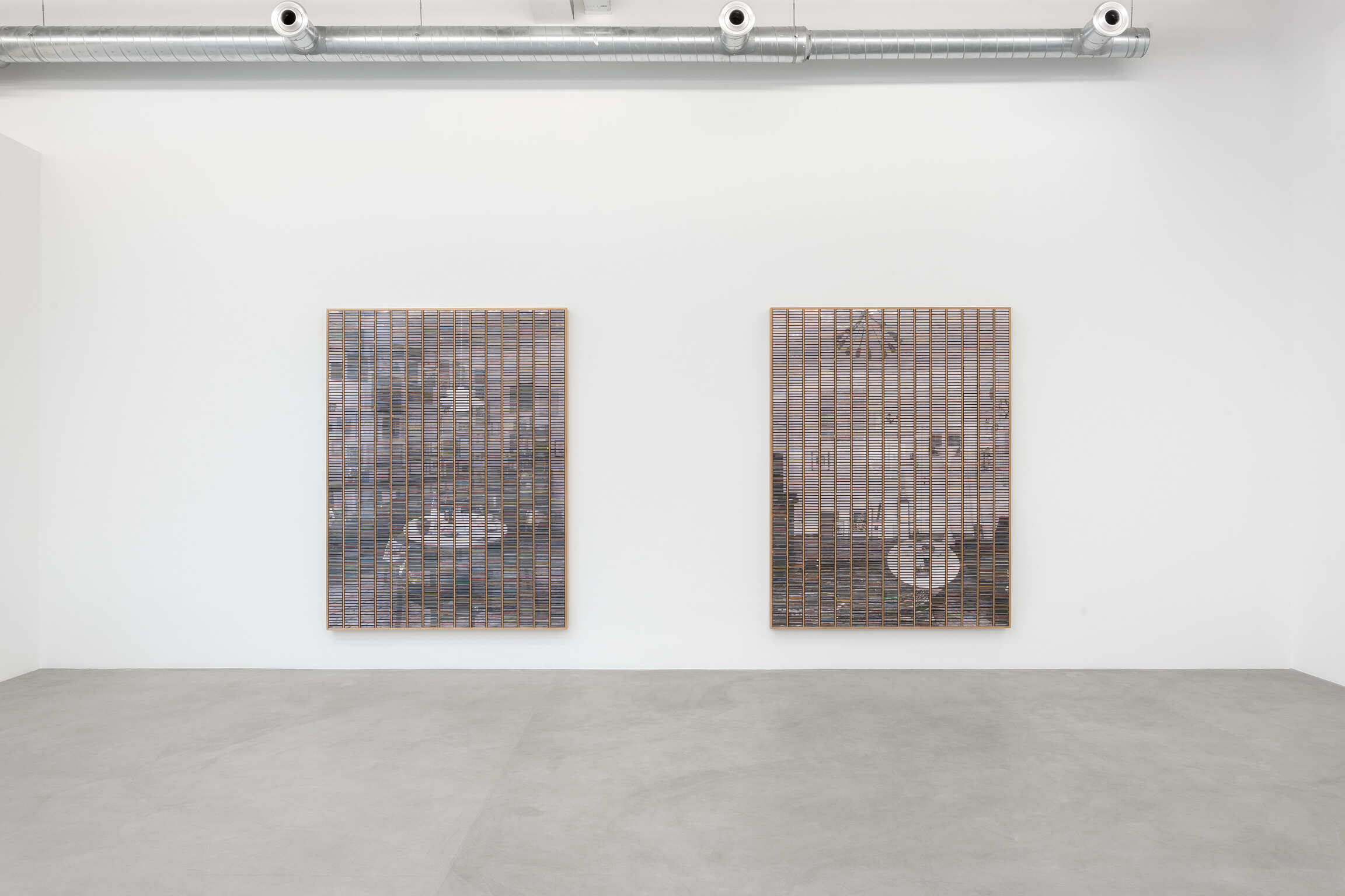 Almine Rech is pleased to present 'Der Raum ist die Miete' (The Room is the Rent), an exhibition of new work by Berlin artist Gregor Hildebrandt. This is his third solo show at Almine Rech Brussels—and his eighth with the gallery—featuring all new works in keeping with his oeuvre, which has consistently focused on the reinvention of analog audio and visual materials such as tape cassettes and vinyl records into mixed-media paintings, sculptures, and immersive installations.
