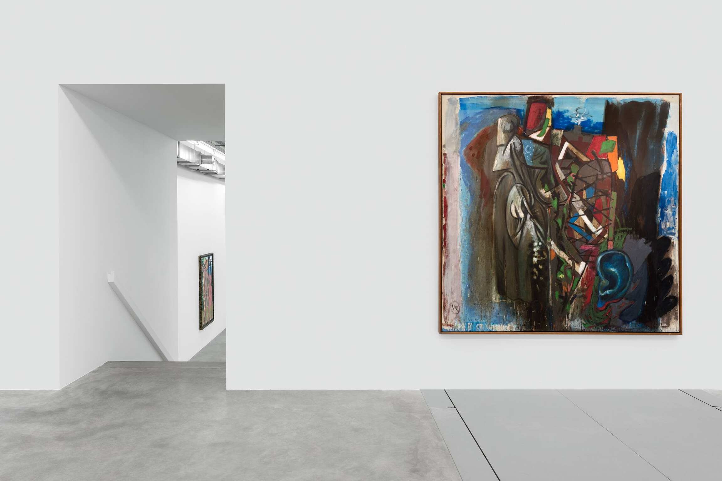 Also on view was a selection from his series of 'nude backs'. Lüpertz made a hundred or so of these paintings. Working serially and a cinematic approach to visual conceptualization are characteristic of the artist. The works are more than concepts; they emerge as it were out of nowhere. One work gives rise to another in one continuous movement. A veritable flow of painterly ingenuity. The works do not thematize the sensuality of the nude. It is even difficult to discern whether they depict male or female nudes. He does, however, conduct a study of the back—a motif that has, since Rubens, been regularly explored‑and the way in which it can be given painterly significance today. The back is seen as an abstract landscape. This 'remoteness' toward sensuality does by no means imply that Lüpertz is disconnected from his subjects. He always tries to find a balance between involvement and distance. Excessive emotional attachment becomes, according to Lüpertz, too narrative; as such, it distorts images with excessive 'side effects' which cause them to lose their universality.