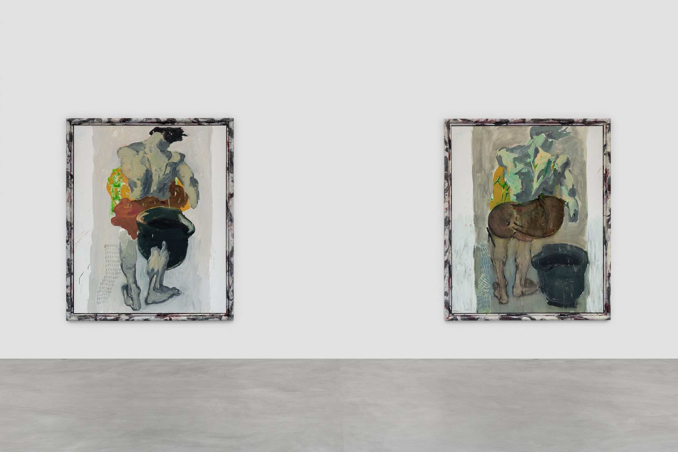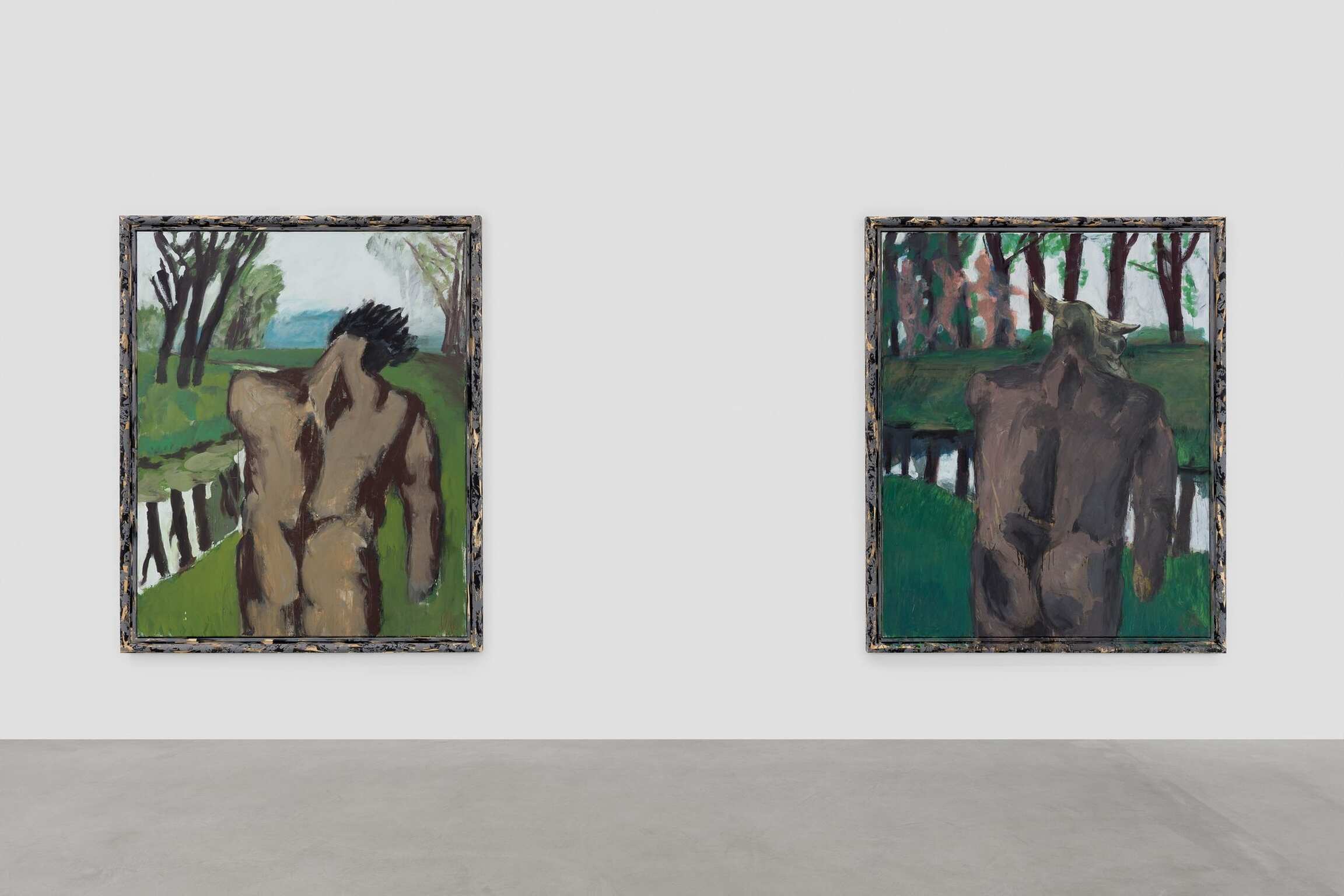 Verder werd er een selectie uit de reeks ‘naakte ruggen’ getoond. Markus Lüpertz maakte een honderdtal van deze schilderijen. Het werken in reeksen en het filmische denken in de beeldvorming is kenmerkend voor de kunstenaar. De werken zijn meer dan concepten, ze ontstaan als het ware uit het niets. Het ene werk geeft aanleiding tot het andere werk in één onophoudelijke beweging. Een panta rei van het schilderkunstig vernuft. De werken handelen niet over de sensualiteit van het naakt. Het is zelfs moeilijk na te gaan of het nu al dan niet over een mannelijk of een vrouwelijk naakt gaat. Wel voert hij hier een onderzoek naar de rug - een motief dat sinds Rubens regelmatig gebruikt wordt - en hoe je dit schilderkundig vandaag een betekenis kunt geven. De rug wordt bekeken als een abstract landschap. Deze ‘afstandelijkheid’ ten opzichte van de sensualiteit wil geenszins zeggen dat Lüpertz zich niet bij zijn onderwerpen betrokken voelt. Hij poogt steeds een evenwicht te vinden tussen betrokkenheid en afstand. Teveel aan emotionele verbondenheid wordt volgens Lüpertz te snel narratief en genereert daarom teveel ‘randeffect’ aan de beelden waardoor ze hun universaliteit verliezen.