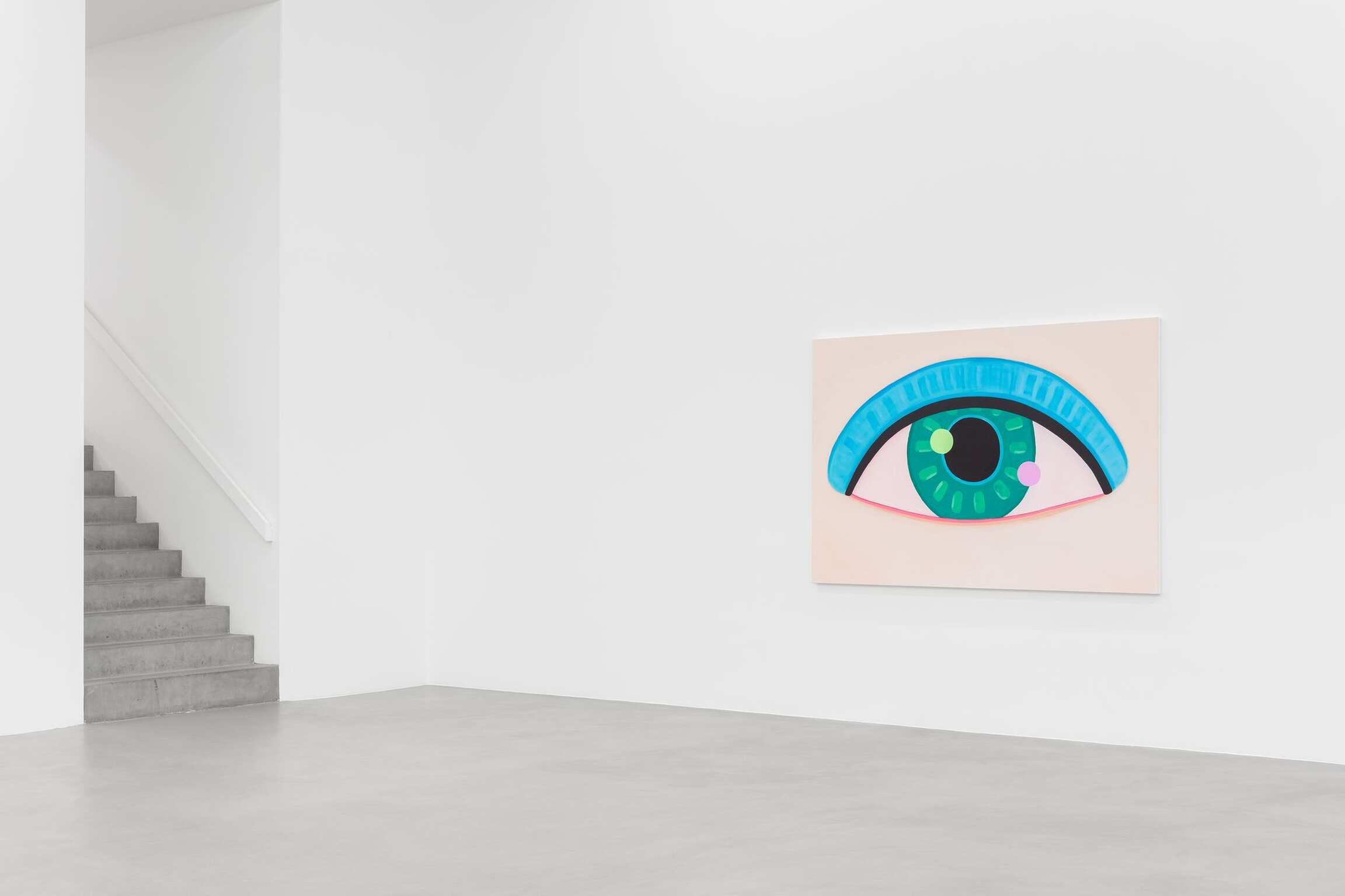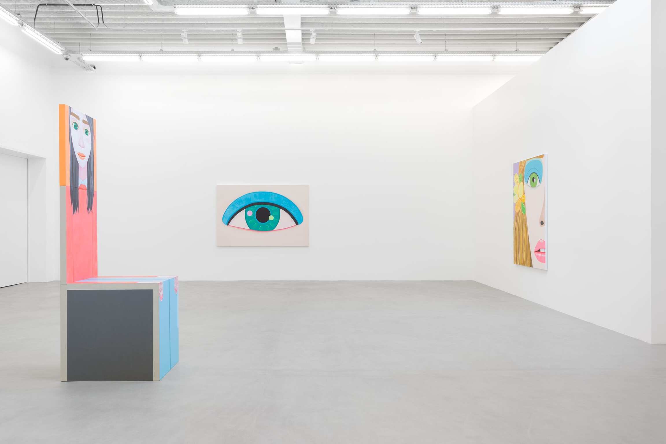 Voilà donc ce que l’on ne voit pas au premier abord dans le travail de Brian Calvin : l’abstraction et la disparition du sujet. Mais ce que l’on peut ressentir, une fois que l’on s’est arrêté devant l’œuvre, est la rythmique et la dynamique à laquelle il invite par les contrastes entre les aplats de couleur et la description des détails. Brian Calvin fait le parallèle entre ce qui différencie le son et le silence en musique. A travers la répétition, il ralentit le temps, sans apporter de réponse, mais là n’est pas la question, à l’interrogation sans limite que dégage l’ensemble de ces visages nous regardant.