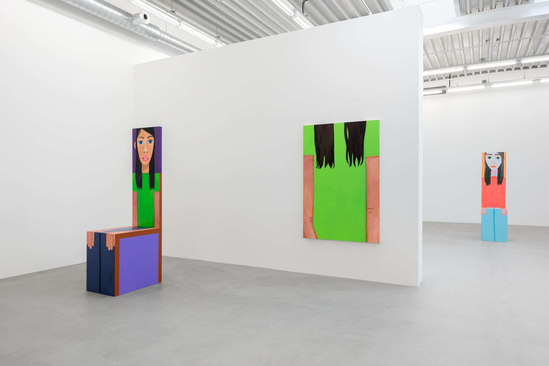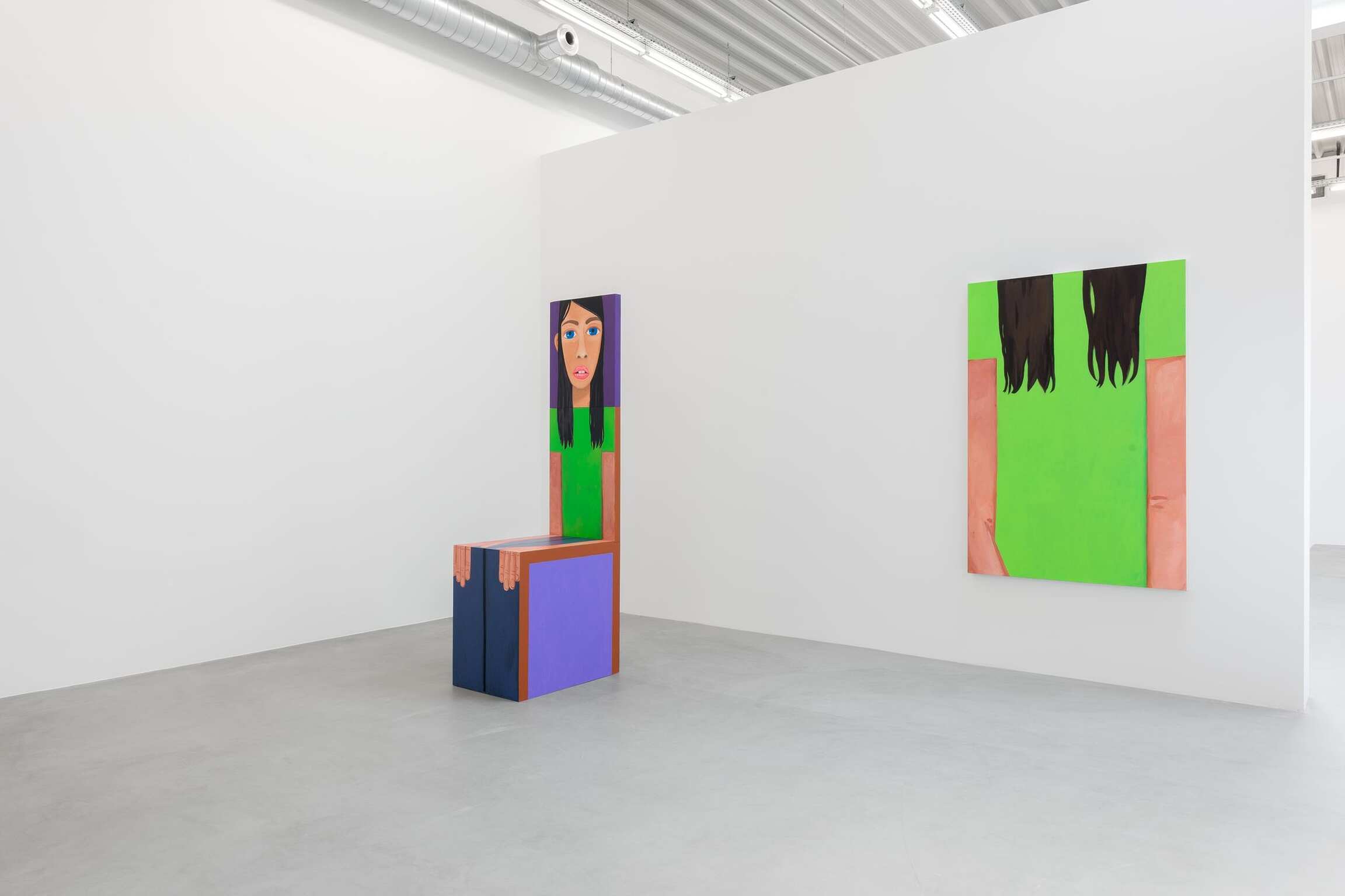 Figuratifs, et pourtant non narratifs, ses peintures, dessins et sculptures se développent dans une pratique d’atelier assidue et quotidienne, autour des questions de formes et de couleurs. Là- encore, choisir un nombre limité de sujet pour pouvoir se focaliser sur la picturalité en a séduit plus d’uns dans l’histoire de l’art. Quand on interroge Brian Calvin sur ce point, il répond que les noms de Philip Guston et Giorgio Morandi lui viennent immédiatement à l’esprit. Le sujet résolu offre également la possibilité de s’effacer, en tant que peintre, devant la toile. On le voit très bien ici, où l’artiste ne se lance pas dans un geste expressif, mais opte pour une concentration retenue. Il précise encore son propos : « Le sujet représente un point d’entrée, or peut-être serait-il plus juste de l’analyser comme une complication, car je réalise mes peintures autour de ces notions de doutes et de difficultés. » Le long temps passé à l’atelier le rassure alors dans la résolution de ces problématiques. Brian Calvin travaille sans modèle, à partir de souvenirs et d’imagination, scrutant la nature humaine et la manière dont chacun tente de se construire. Le quotidien fait donc écho dans son œuvre même si, au fil des ans, il relate toujours moins pour se concentrer d’autant plus sur les compositions formelles et picturales. « Je m’applique à étirer mon propre vocabulaire et à explorer le potentiel abstrait de l’image en train de se concevoir. C’est d’ailleurs pourquoi on peut observer autant de répétitions dans mon corpus, où j’emploie des visuels extrêmement simplifiés qui génèrent, le plus souvent, de fortes résonances. »