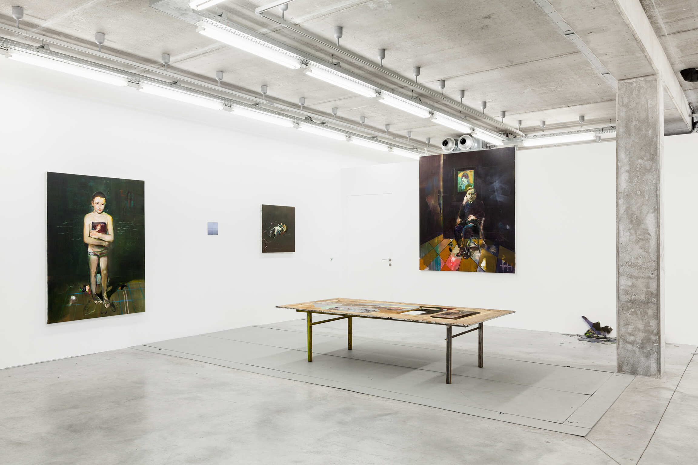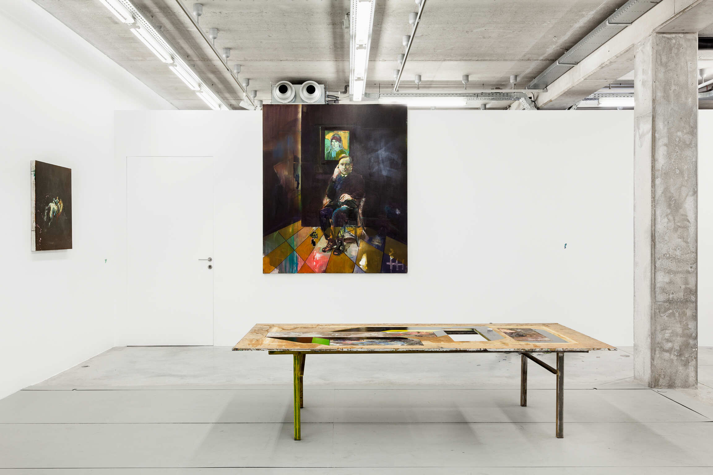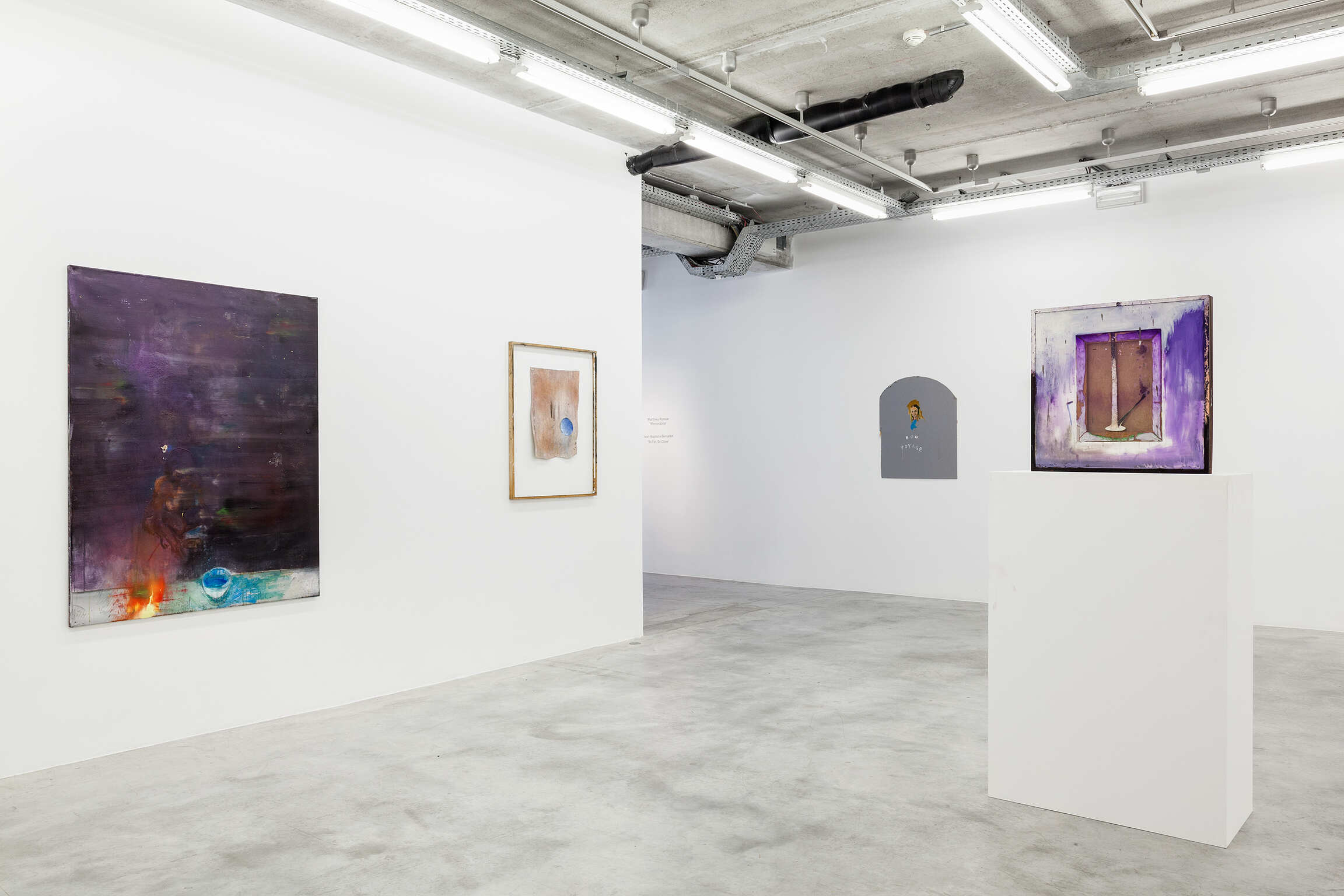 The paintings and installations of Matthieu Ronsse are fragments of a painterly discourse where experiment and the joy of creating are central. As long as the artwork is in Ronsse's hands, it remains subject to an ongoing creative process and is thus never perceived as ‘finished’. Even during his exhibitions, transformations are continuously possible. For Ronsse, it is not the final image that is the focal point, but rather the essence of his work lies in the creative process along the way. The painting is simultaneously his palette: it self-reflexively contains the traces of its own production while showing the chance occurrences Ronsse encourages to evince a vigorous energy with his creative process. Fragments of work by old masters, depictions of the private sphere of the artist, and architecture and photography books are recurring subjects. Together they form the fundamental ideas of his painterly imagination in which an accumulation of images and materials create these surprising possibilities and new avenues of exploration. Experiencing Ronsse's work is beyond looking at an image: it is about the complete immersion in the creative process of the artist.