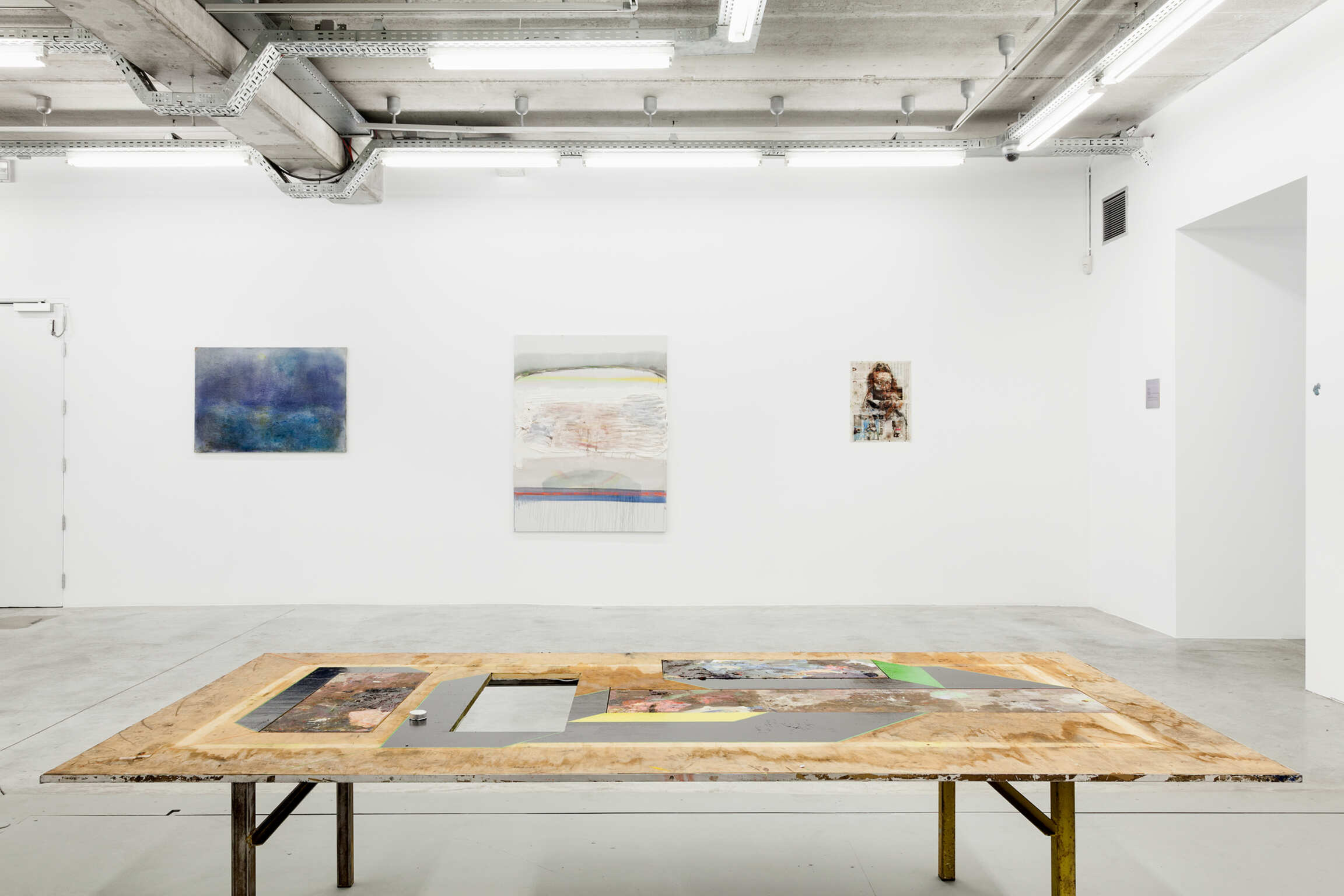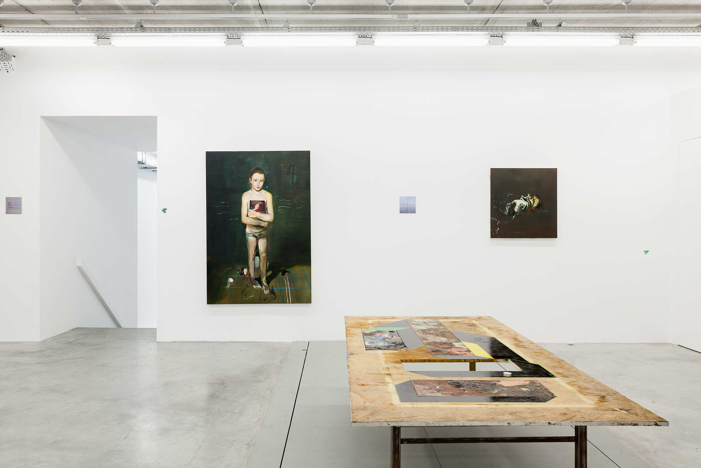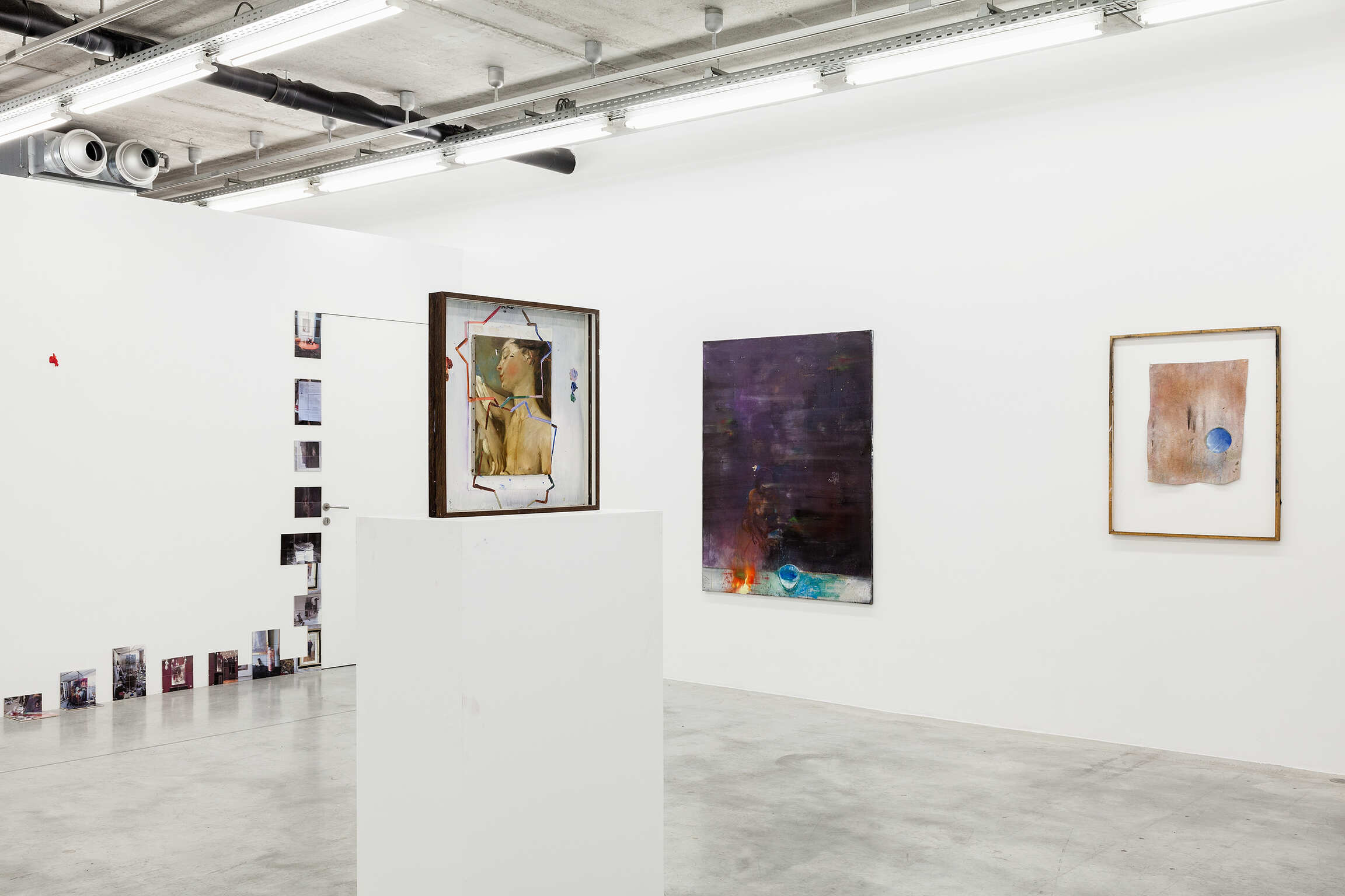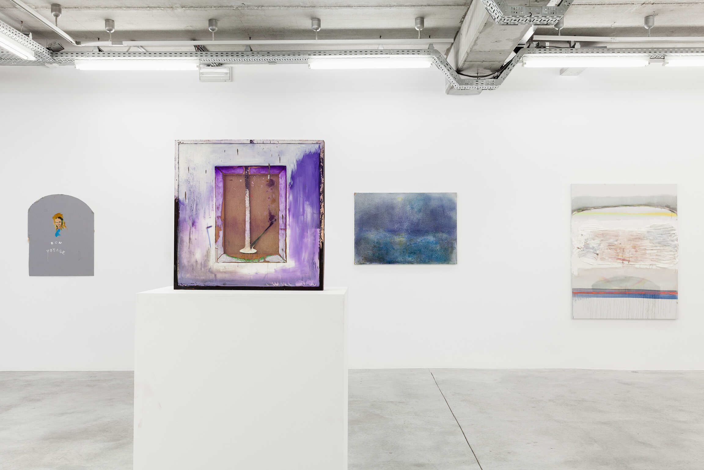 The paintings and installations of Matthieu Ronsse are fragments of a painterly discourse where experiment and the joy of creating are central. As long as the artwork is in Ronsse's hands, it remains subject to an ongoing creative process and is thus never perceived as ‘finished’. Even during his exhibitions, transformations are continuously possible. For Ronsse, it is not the final image that is the focal point, but rather the essence of his work lies in the creative process along the way. The painting is simultaneously his palette: it self-reflexively contains the traces of its own production while showing the chance occurrences Ronsse encourages to evince a vigorous energy with his creative process. Fragments of work by old masters, depictions of the private sphere of the artist, and architecture and photography books are recurring subjects. Together they form the fundamental ideas of his painterly imagination in which an accumulation of images and materials create these surprising possibilities and new avenues of exploration. Experiencing Ronsse's work is beyond looking at an image: it is about the complete immersion in the creative process of the artist.
