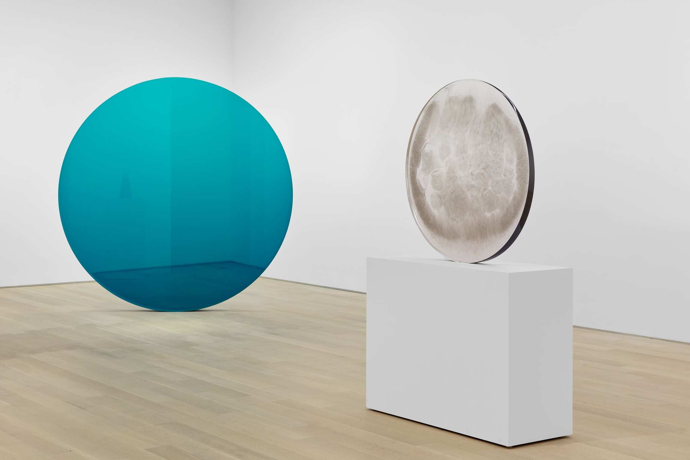 His invention of a new resin formula—a rare scientific feat for any artist at the time— immediately enabled Valentine to endow his resin sculptures with the colossal scales (up to 12 feet and more) that he had dreamt of. These monumental sculptures count, among them, the sublime Gray Column, 1975, or earlier on, Red Concave Circle, 1970 (now in the Los Angeles County Museum of Art collection). The historical disk sculpture, Circle Smoke Gray, presented today at the Almine Rech, is also dated 1970—a year of historic importance for Valentine who referred to the LACMA sculpture as “his first big circle.” Indeed, Valentine was already familiar with the treatment of disks or circles within his sculptural practice. In a recent telephone conversation, Douglas Chrismas (founder of ACE) shared information on the early history of Valentine’s disk sculptures, initially exhibited at his first gallery, the Douglas Gallery, in Vancouver, as early as in 1967.