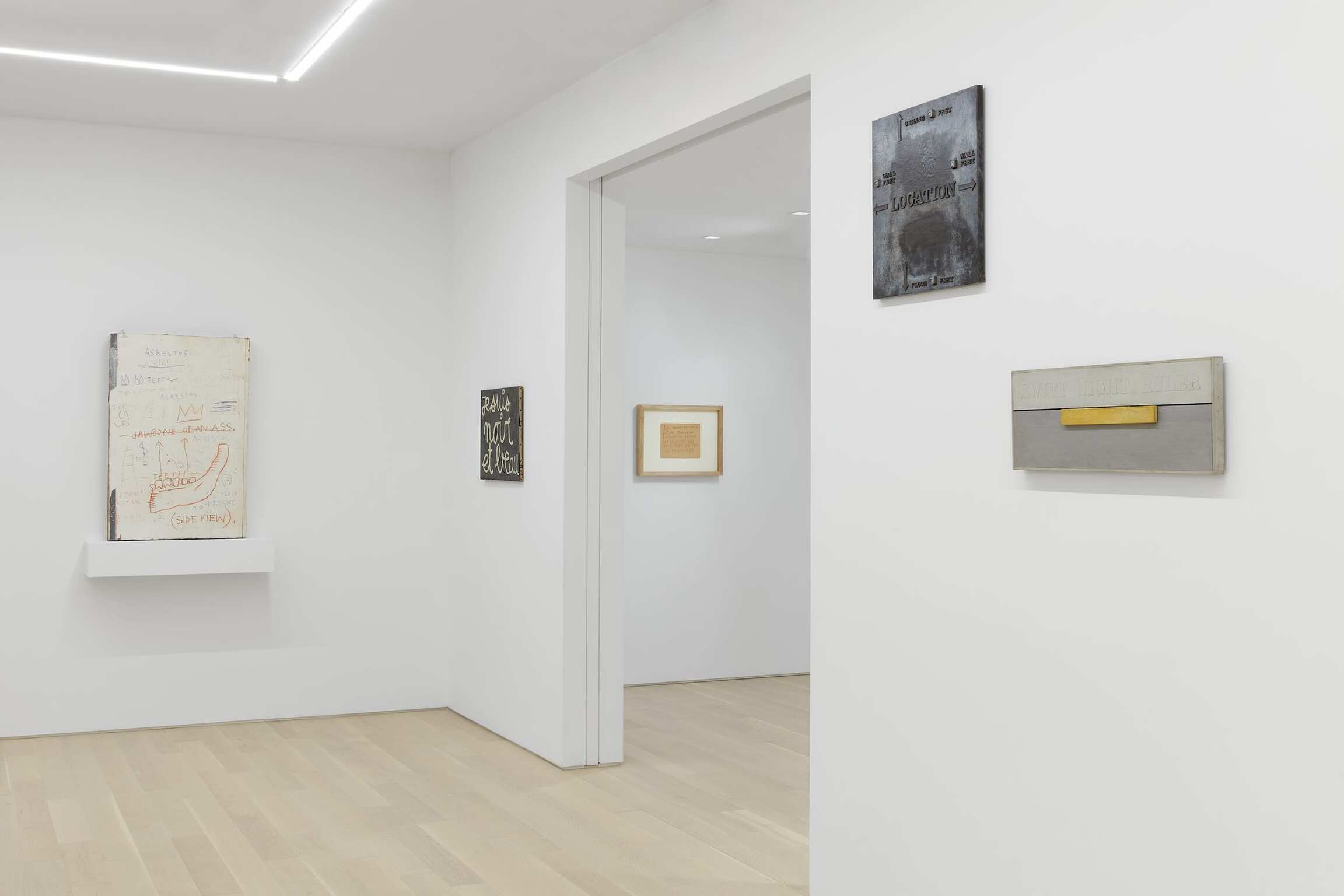 In Pop Art, artists engaged with the artistic value of trivial, everyday objects like advertising, common place objects, and consumer goods. Andy Warhol's handmade imitations of the Brillo packaging lead up to the works of Jean-Michel Basquiat and Martin Kippenberger from the 1980s, that offer an outlook to the very broad use of words and language in contemporary art today. With a great self-evidence Basquiat took recourse to letters, words, numbers, lists, and phrases as artistic material in his works. They were an integral part of his work, with the artist using “words like brushstrokes.”11